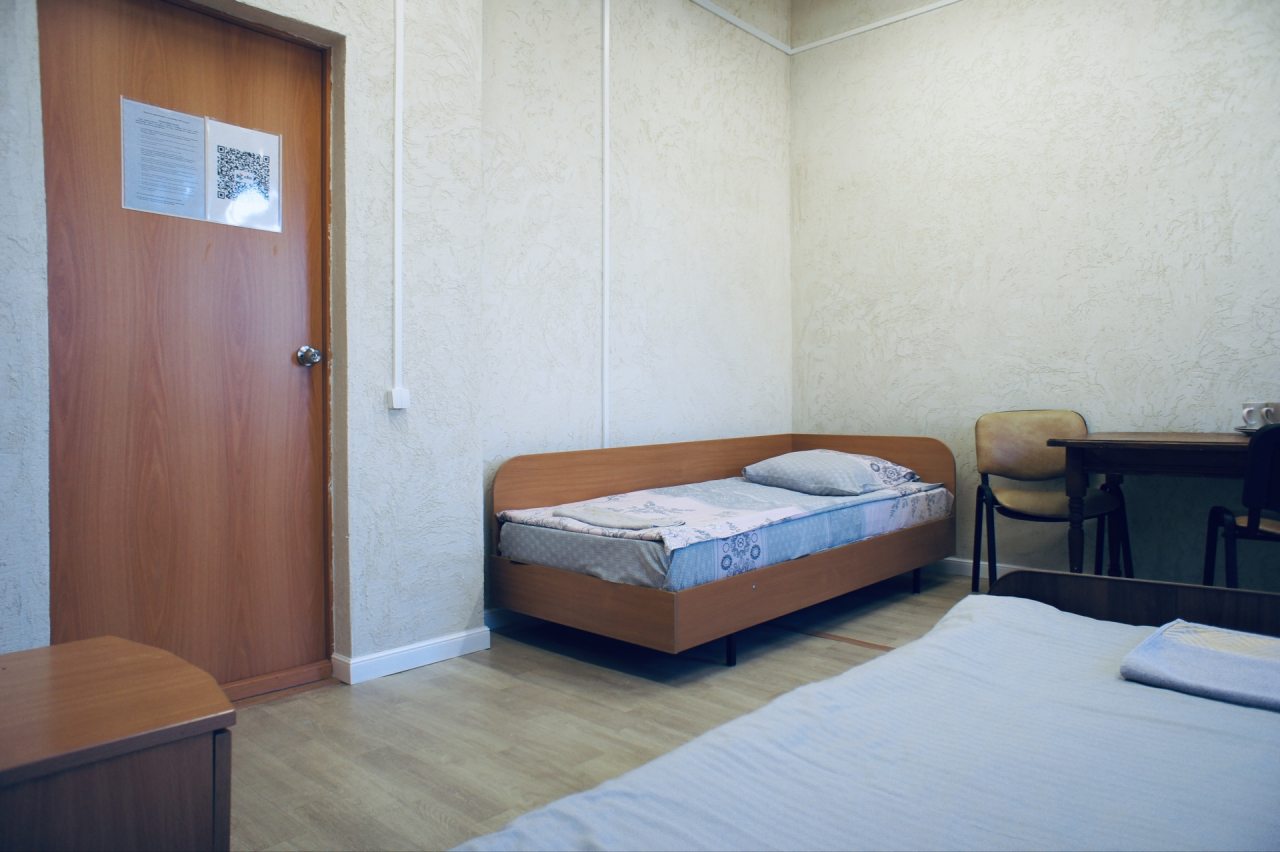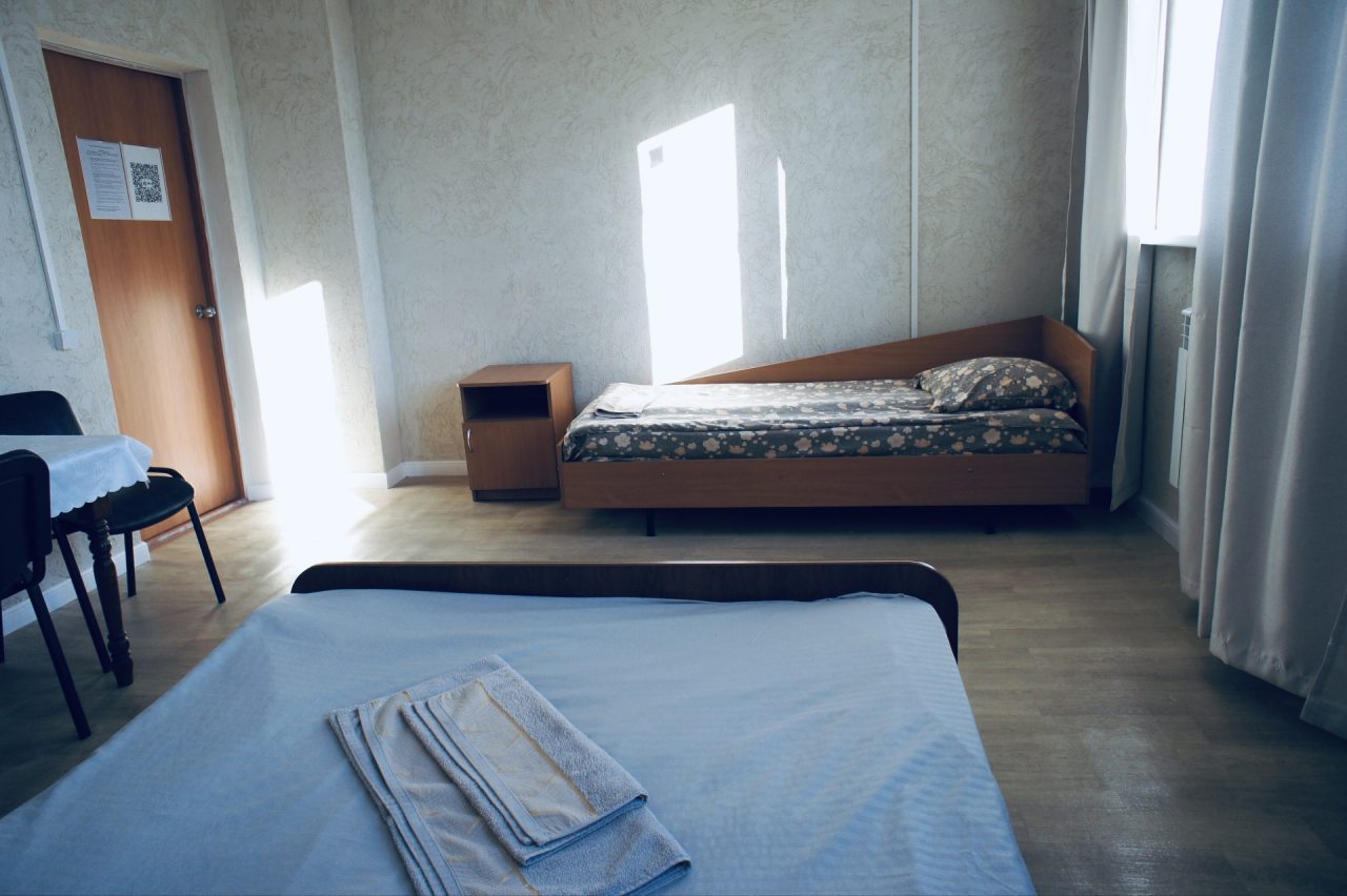 Мне сделали скидку при оплате за проживание. В отеле совсем было немноголюдно. Я ожидал, что буду жить в общей комнате о с 4-8 другими людьми, но на самом деле я получил комнату на двоих и даже без соседа. Это было круче, чем я ожидал. Все как в советское время, но душевые совершенно новые.