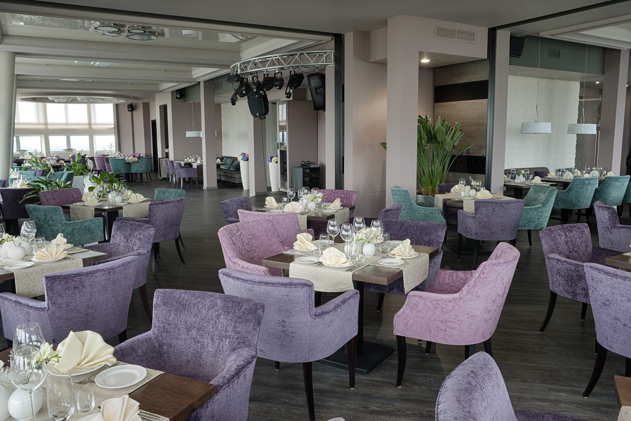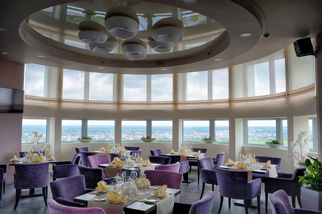 Ресторан «Панорама», находящийся на 22 этаже здания, с панорамным видом на весь город, позволит насладиться прекрасным видом, за вкусным ужином. В меню представлены блюда интернациональной кухни, которые понравятся даже самым взыскательным гостям.