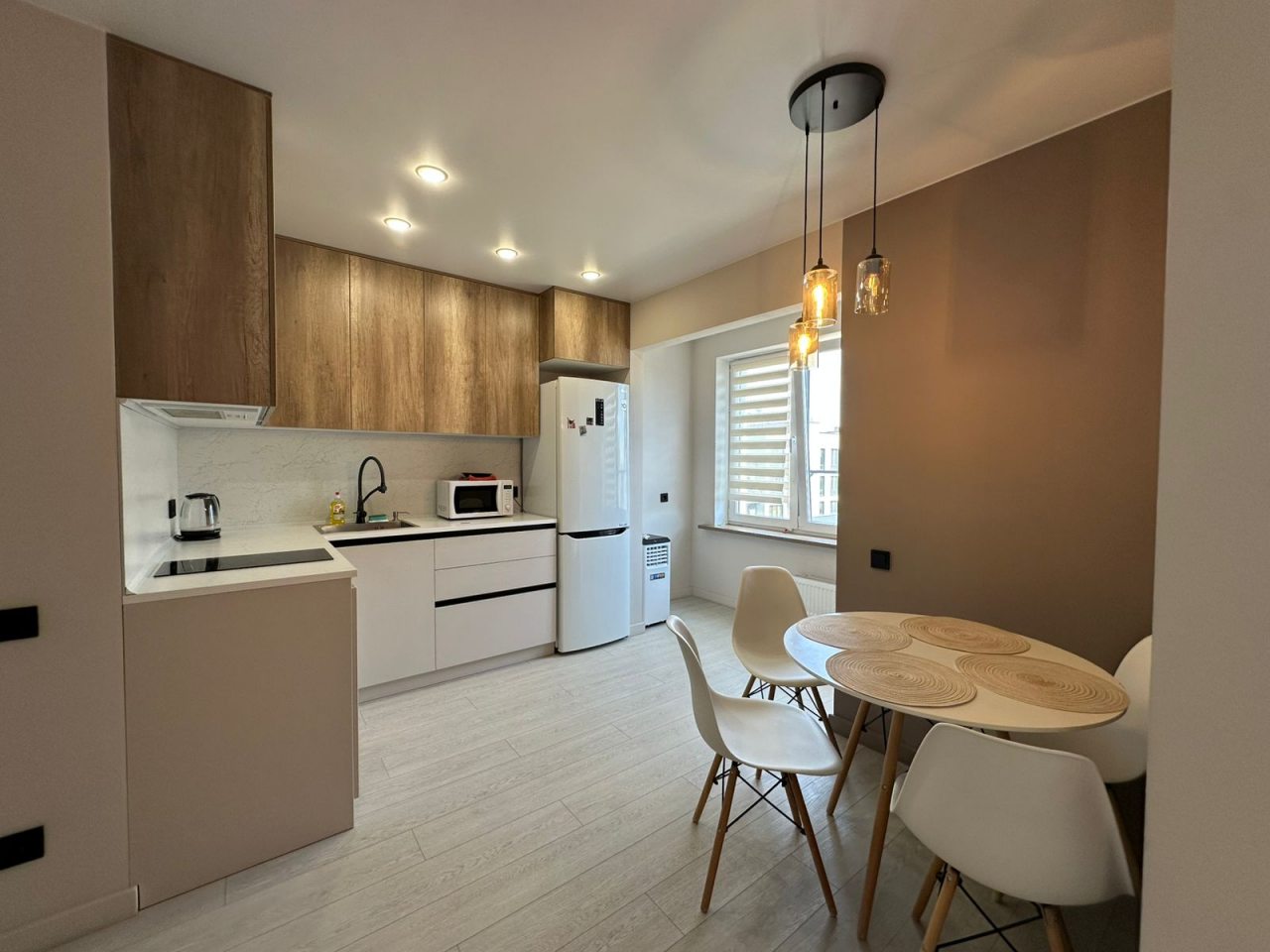 Кухня оснащена кухонным гарнитуром для комфортной готовки любимых блюд. Имеется плита, холодильник, микроволновая печь, чайник, а также фильтр для воды и необходимая посуда. В шаговой доступности расположены продовольственные магазины и кафе.