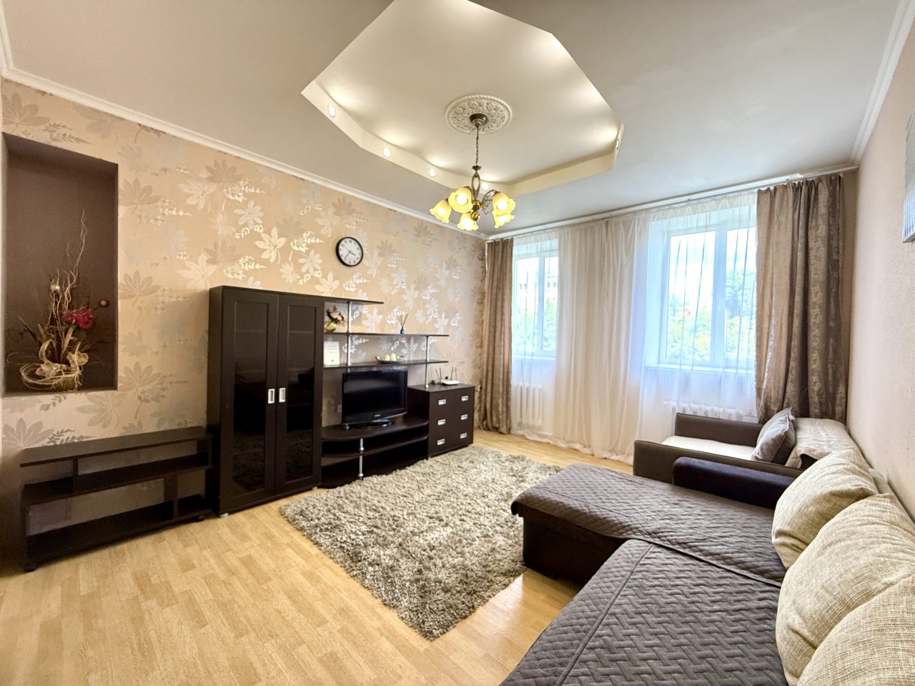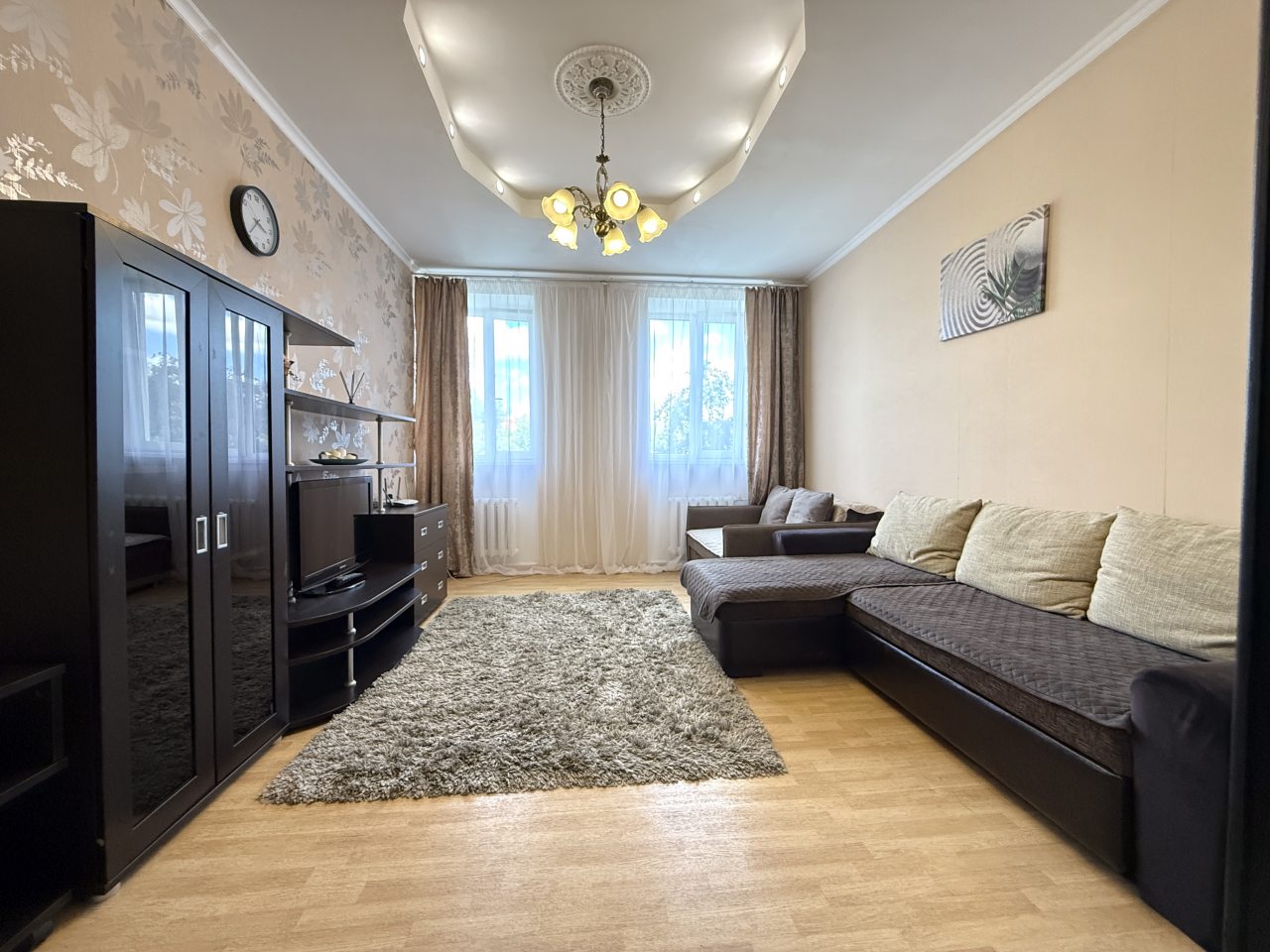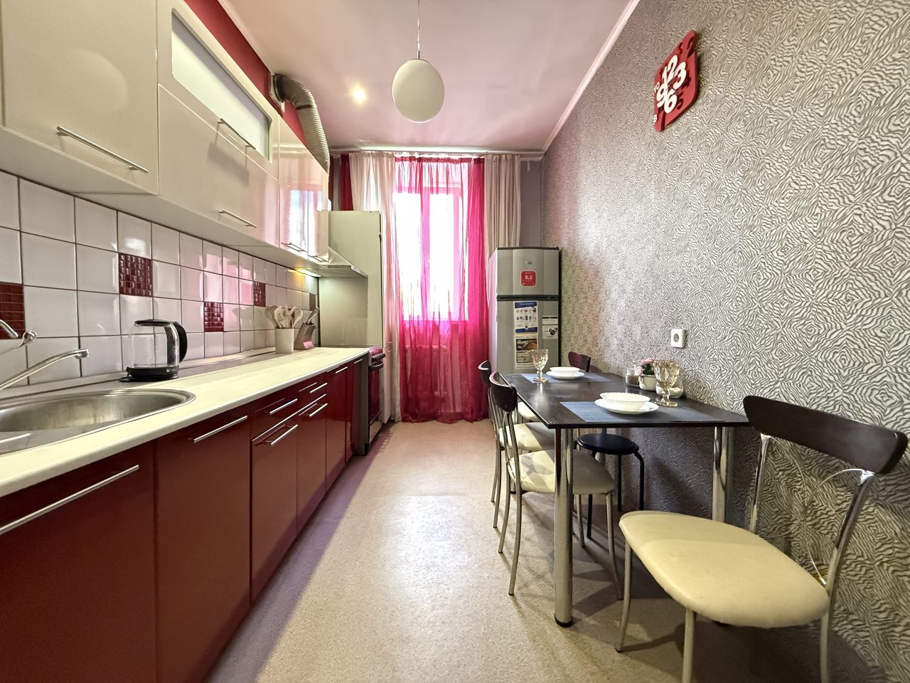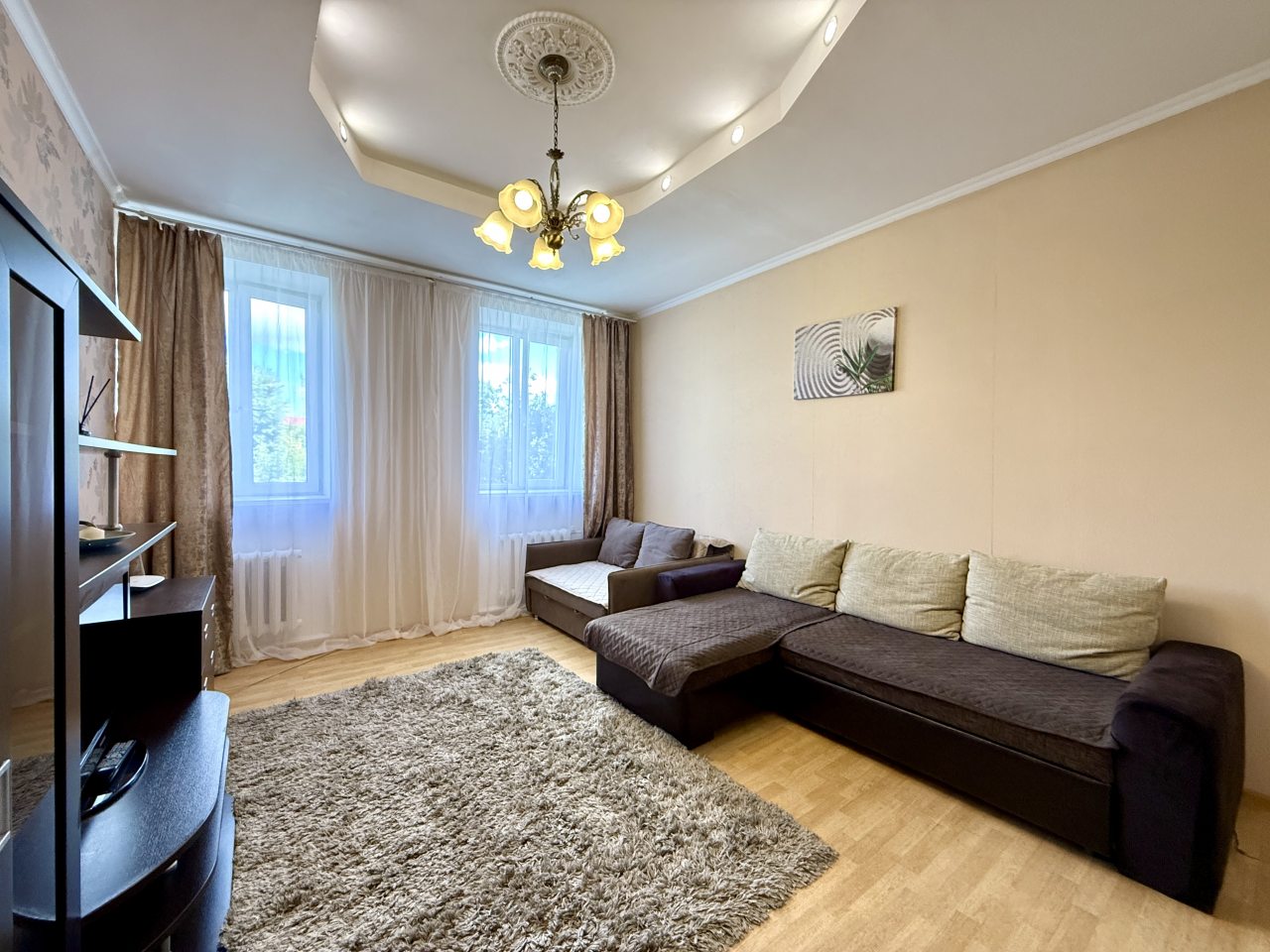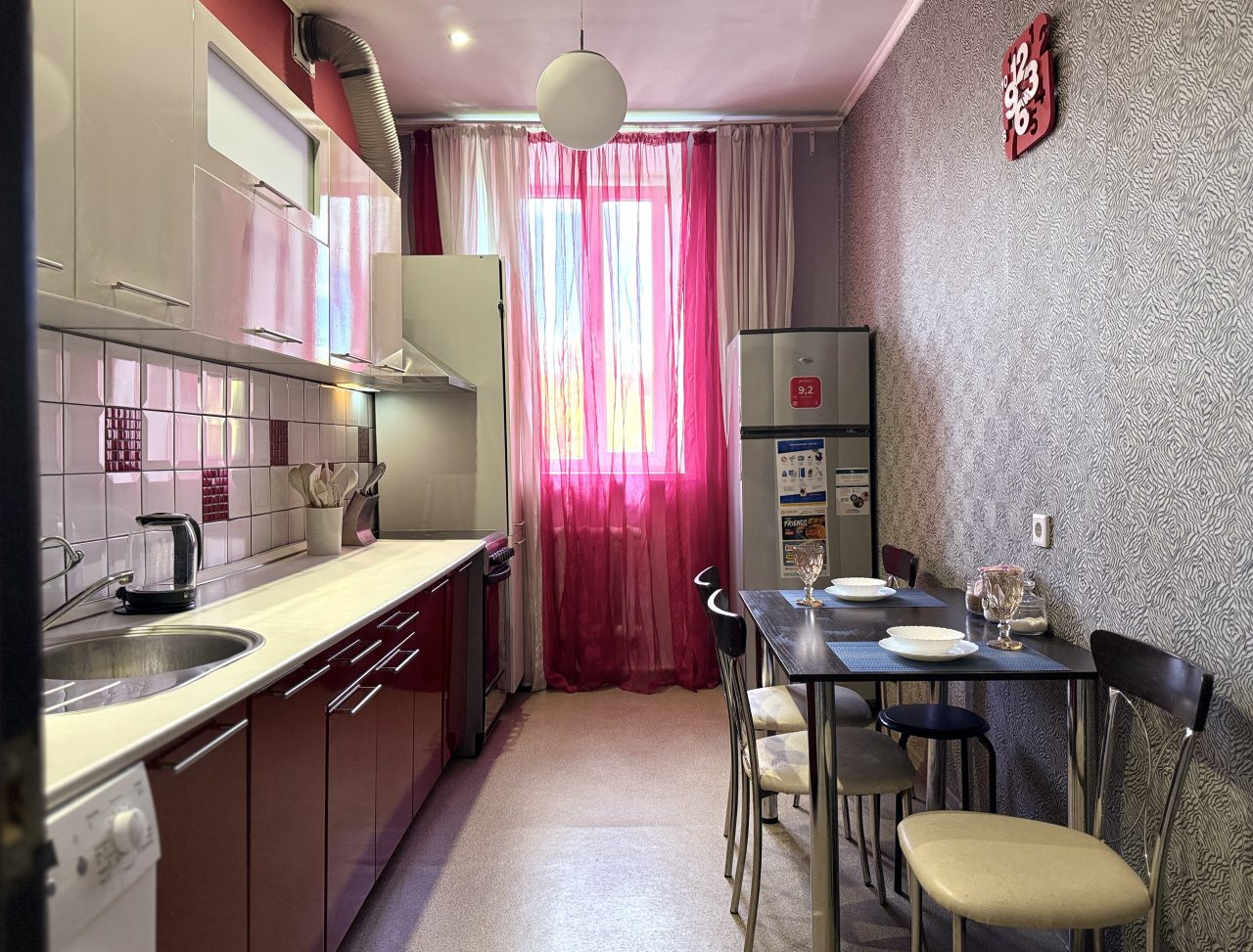 К проживанию предлагается хорошая квартира с мебелью и всей необходимой техникой. Имеется двуспальная кровать, два дивана-кровати, свежее постельное бельё, гладильные принадлежности, гостиный уголок, телевизор, шкаф для хранения личных вещей и различной мелочи, затемнённые шторы для комфортного сна, Wi-Fi. Декоративные вещи и создадут уютную атмосферу. Санузел оснащён сантехникой, зеркалом, средствами гигиены, набором полотенец, феном.