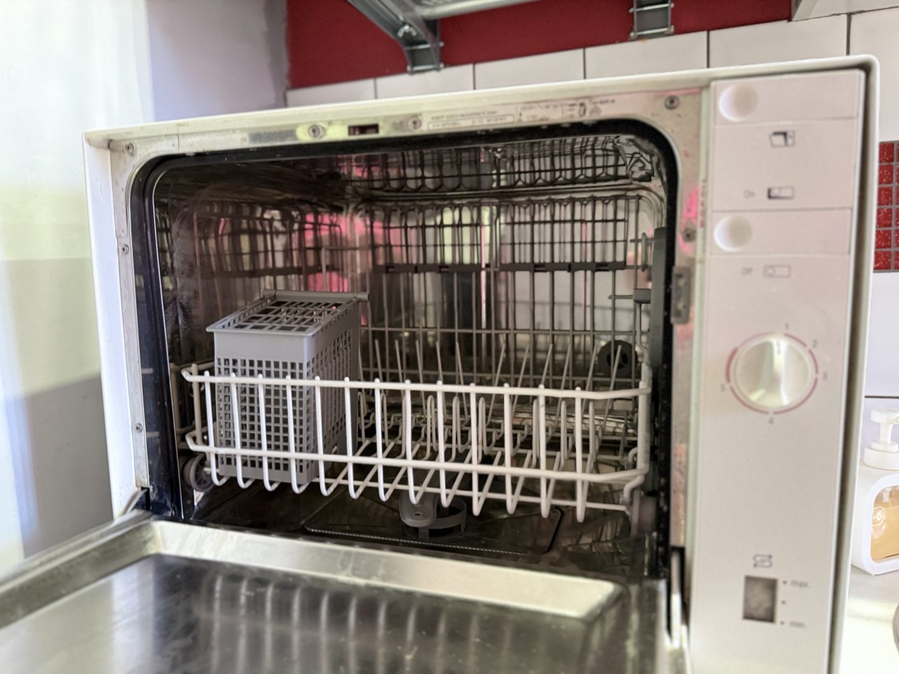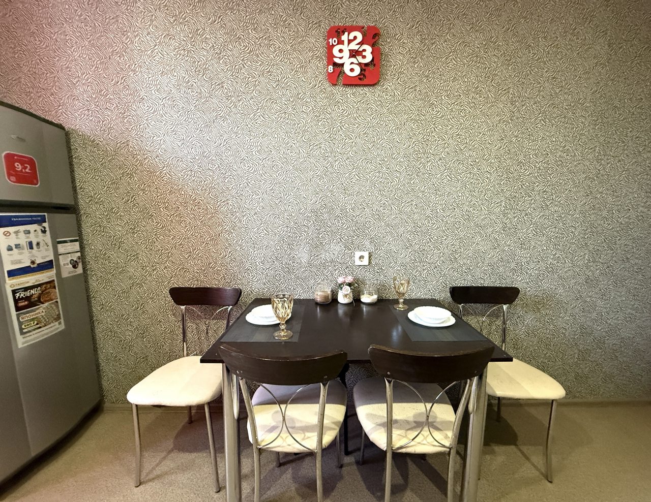 На кухне есть гарнитур, на котором установлена электроплита, чайник, вместительный холодильный шкаф, духовка, посудомоечная машина, есть обеденная зона со столом и приборами. Гостям предоставляют чай и кофе. Перекусить можно в кафе «Малина» или сети быстрого питания «Вкусно и точка».