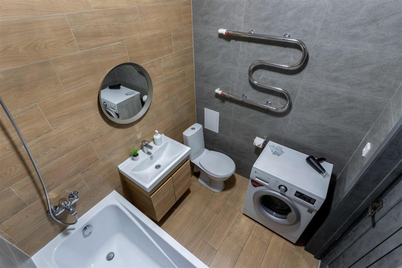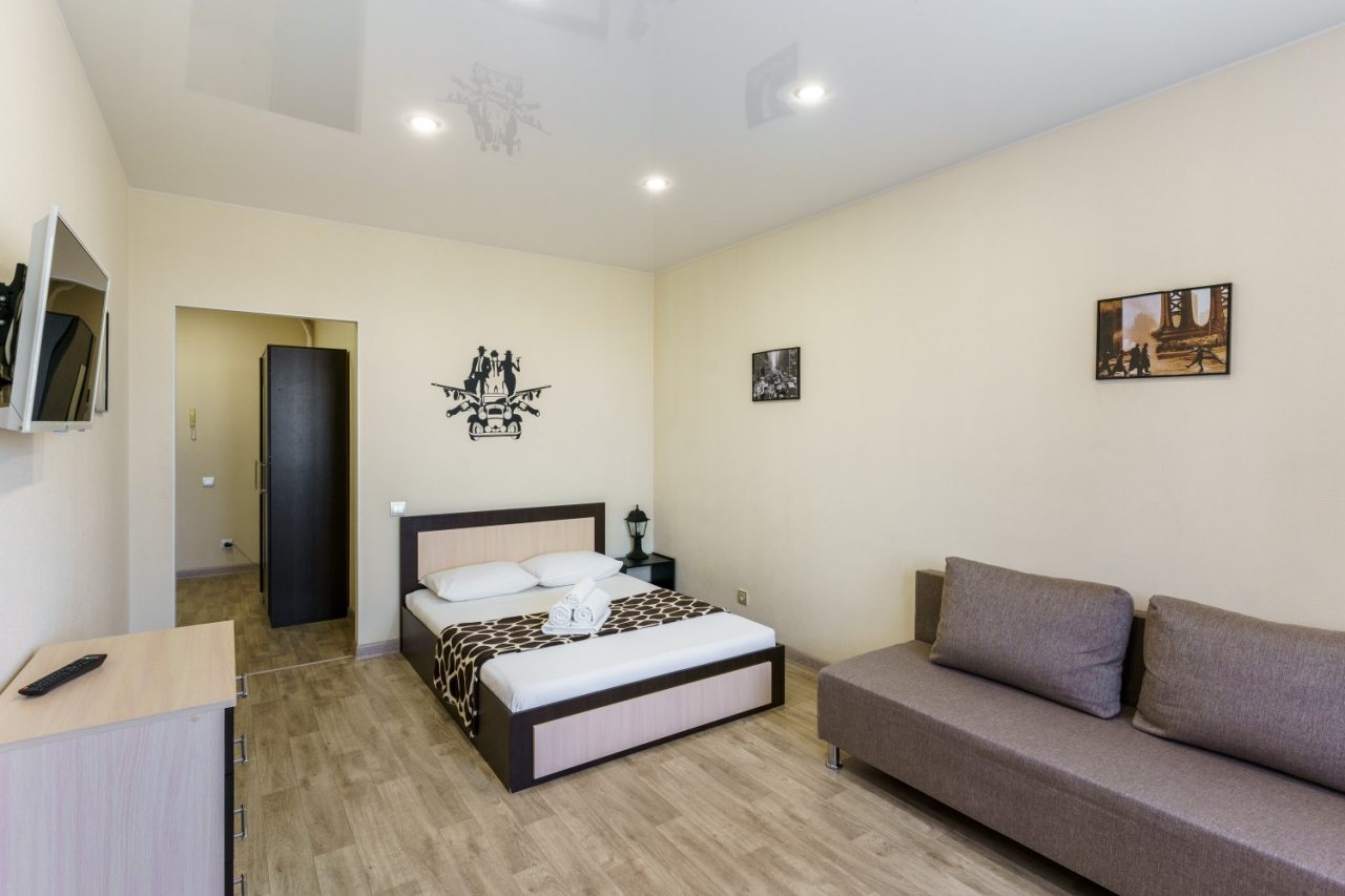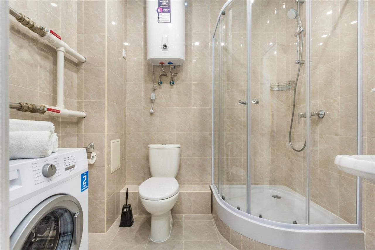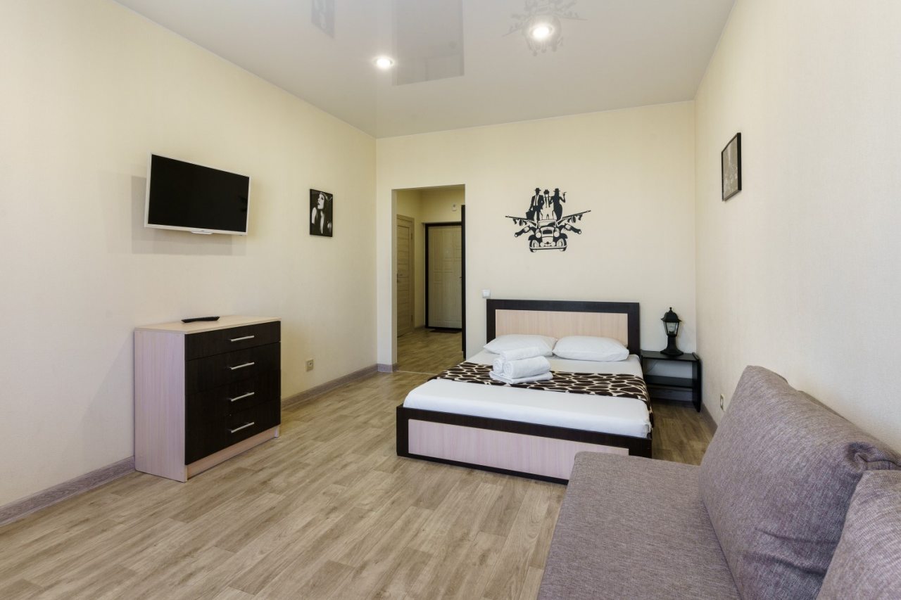 В апартаментах выполнен современный ремонт в светлых классических тонах, установлена комфортабельная мягкая и корпусная мебель. Среди удобств гости смогут воспользоваться Wi-fi и телевизором. Собственная ванная комната оснащена стиральной машиной. Предоставляется набор полотенец.