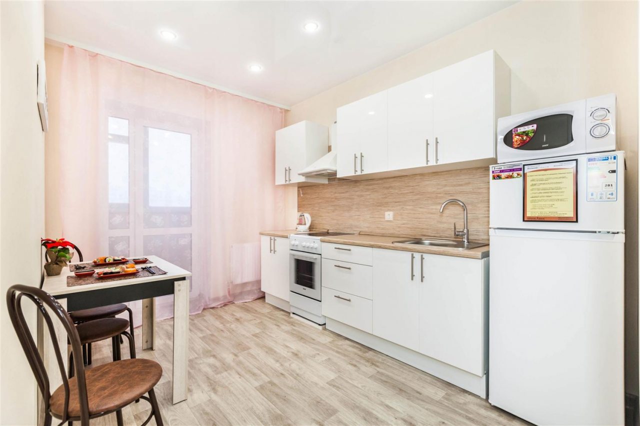 Кухня оборудована необходимой бытовой техникой для приготовления домашних блюд. В шаговой доступности продуктовые магазины и кондитерская.