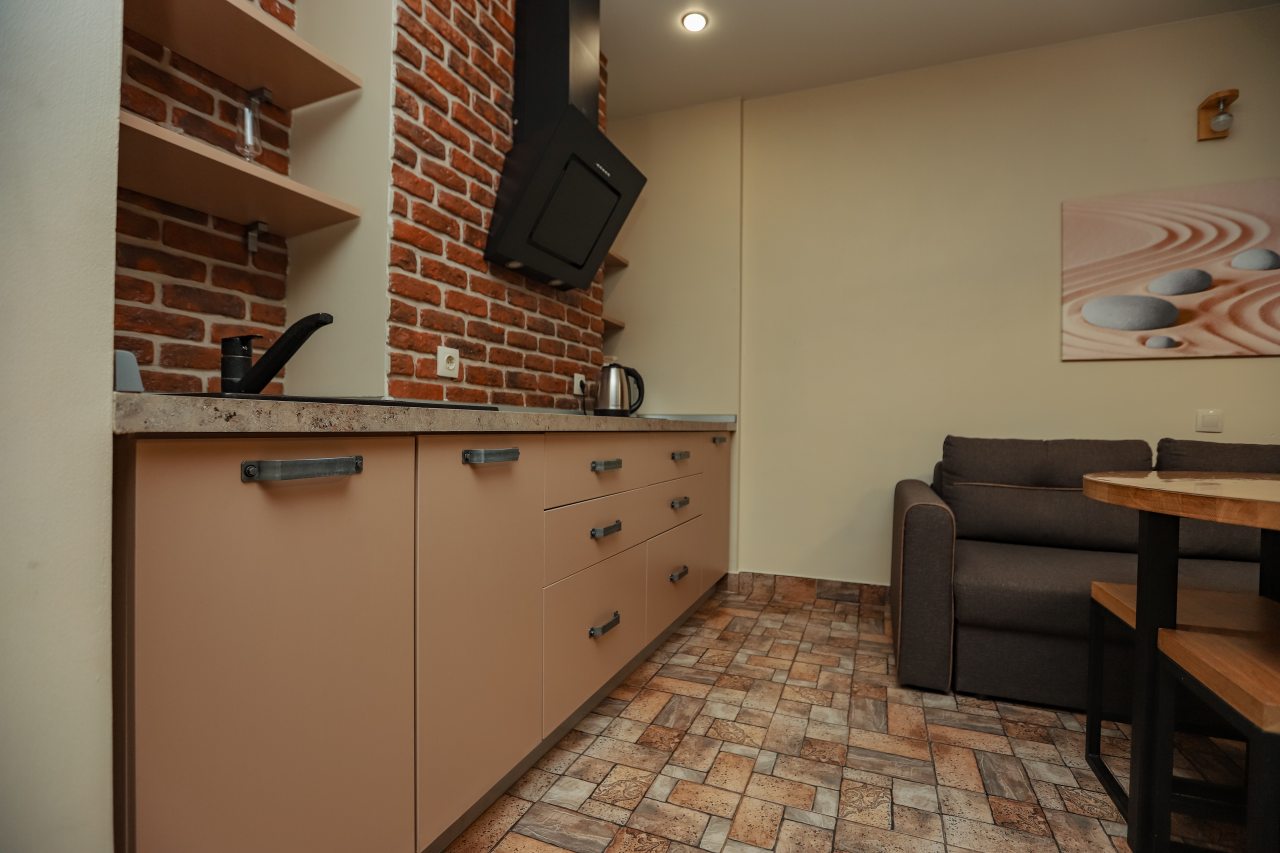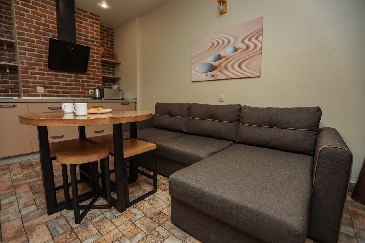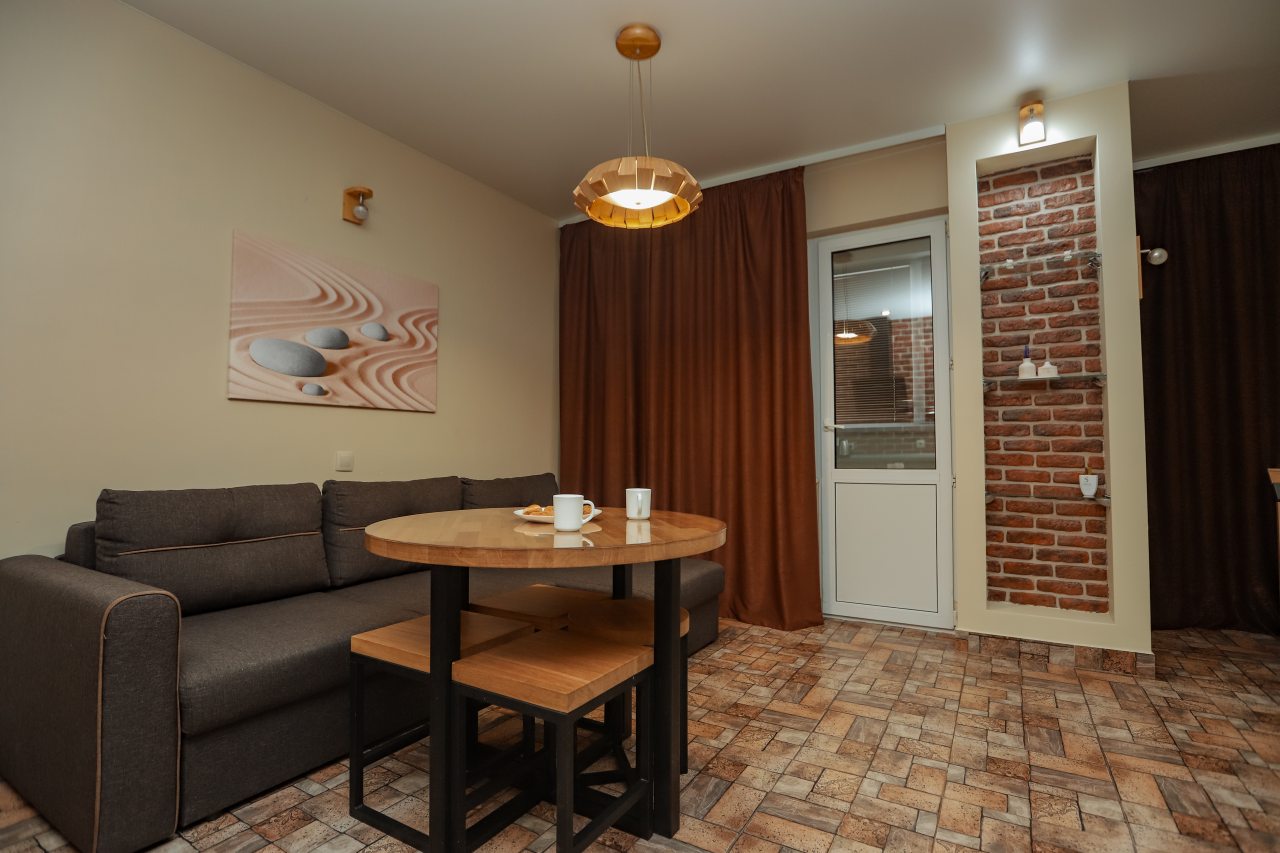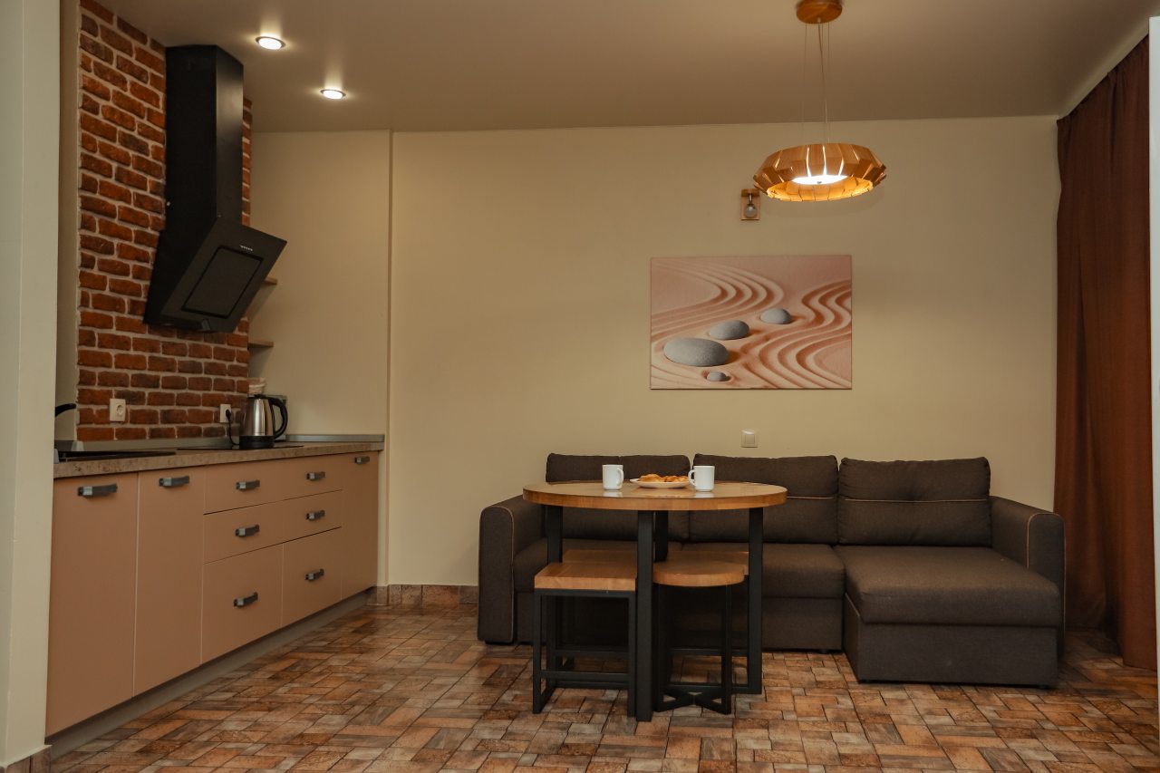 К пребыванию отдыхающих подготовлены несколько уютных апартаментов в современном стиле. Они укомплектованы мебелью и техникой. В ванной комнате имеются индивидуальные средства гигиены.