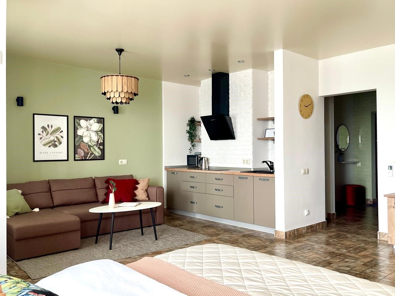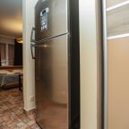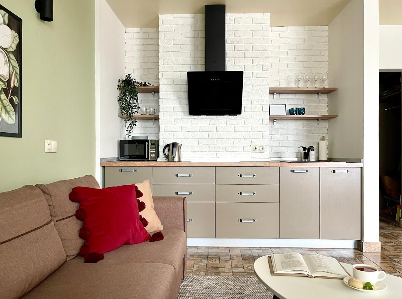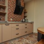 Кухня включает в себя обеденную зону, а также посуду и технику для организации питания: варочная панель, микроволновая печь, чайник. Поблизости есть семейное кафе и кондитерская.
