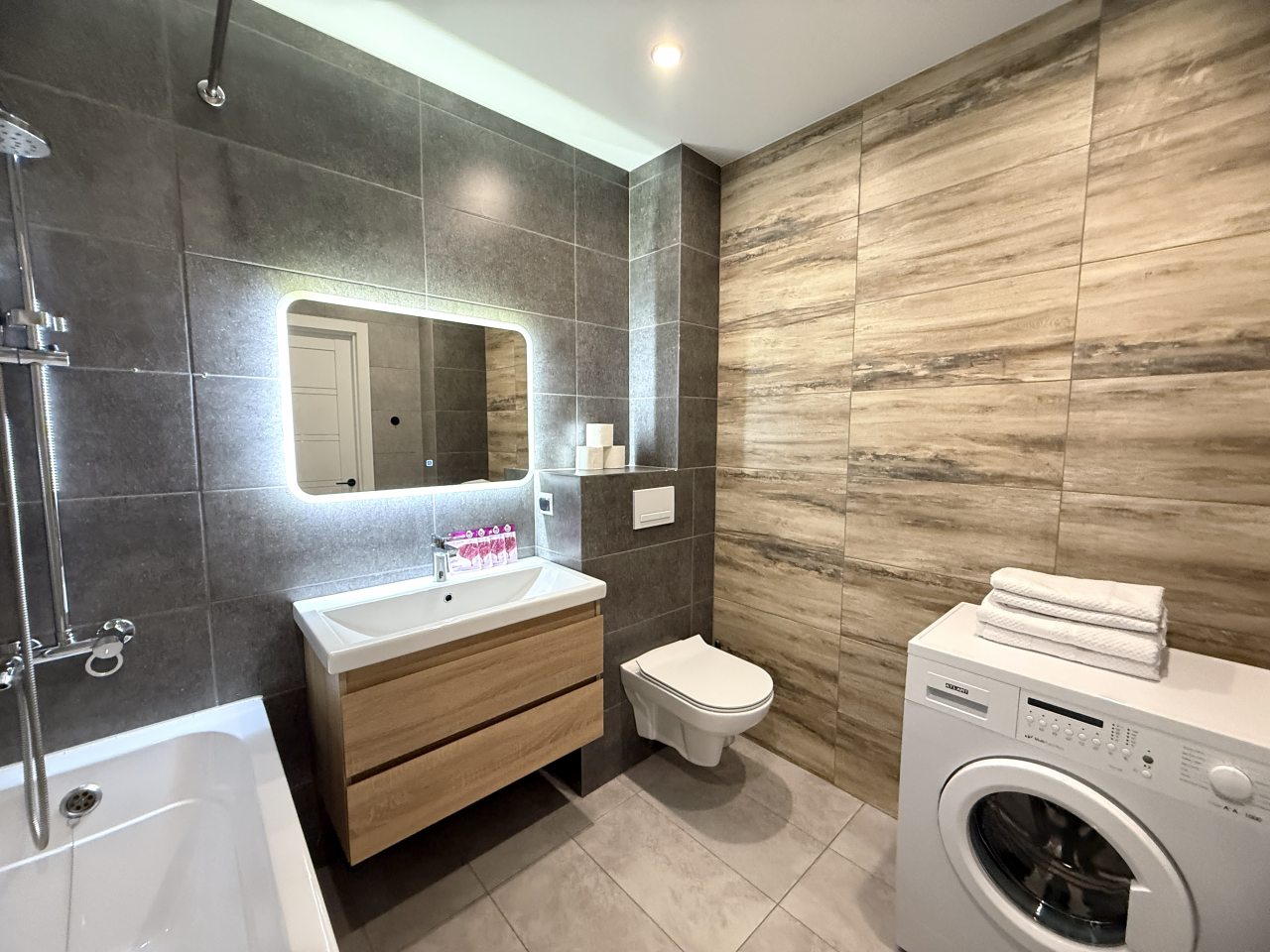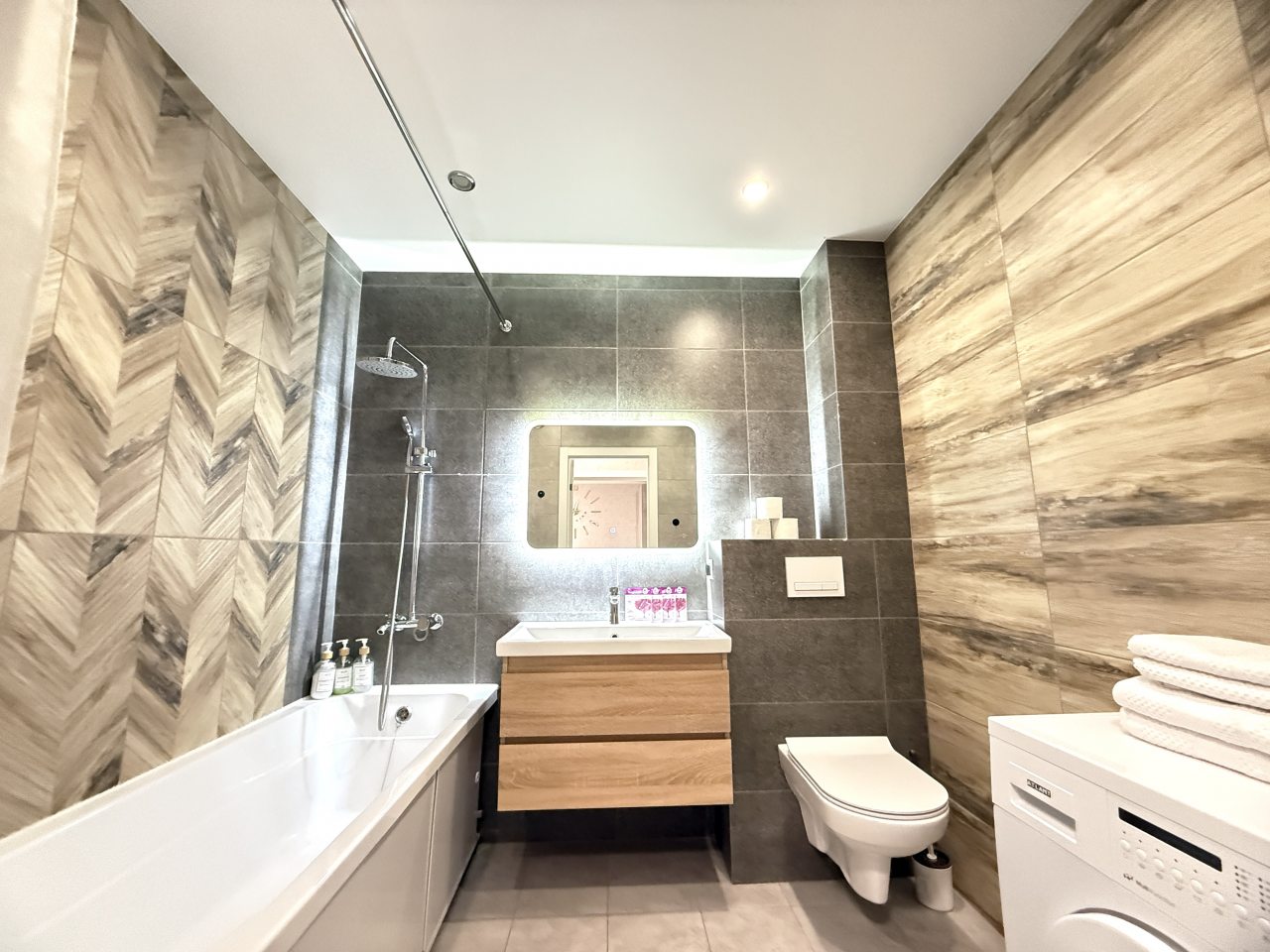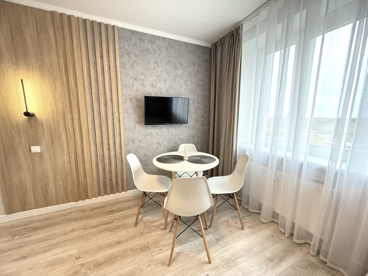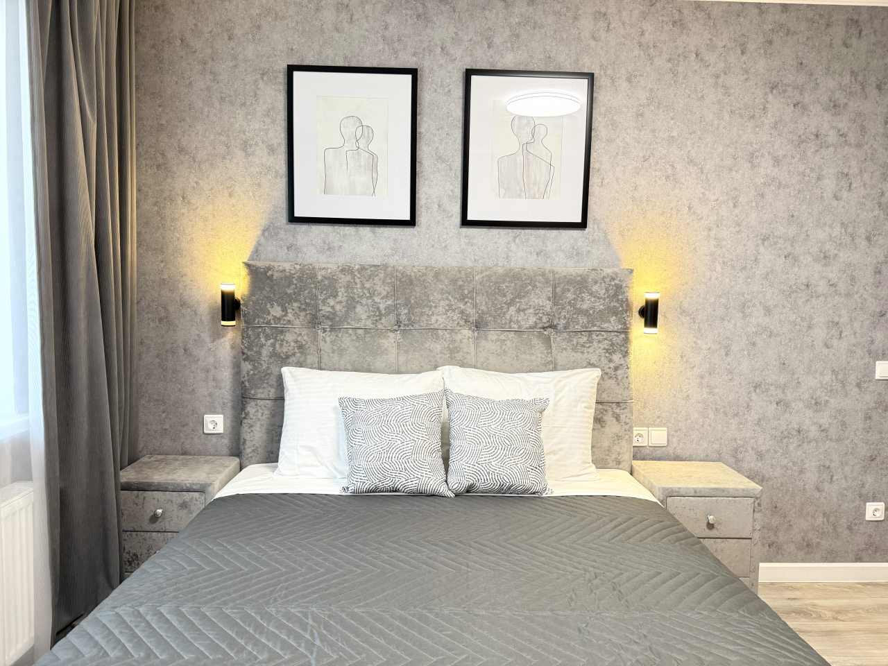 Внутри гостей ожидает кровать с качественным и удобным матрасом, плотные шторы, балкон, настенные бра для уютного вечернего света, телевизор, комод, вместительный шкаф, ванна и стиральная машина.