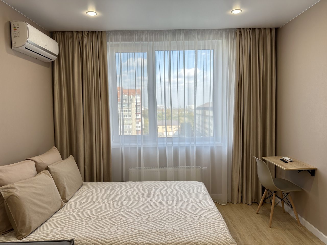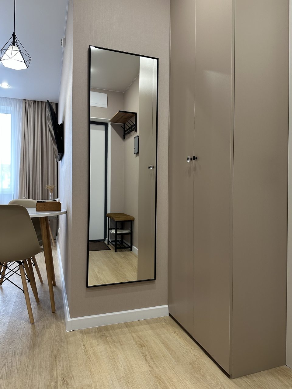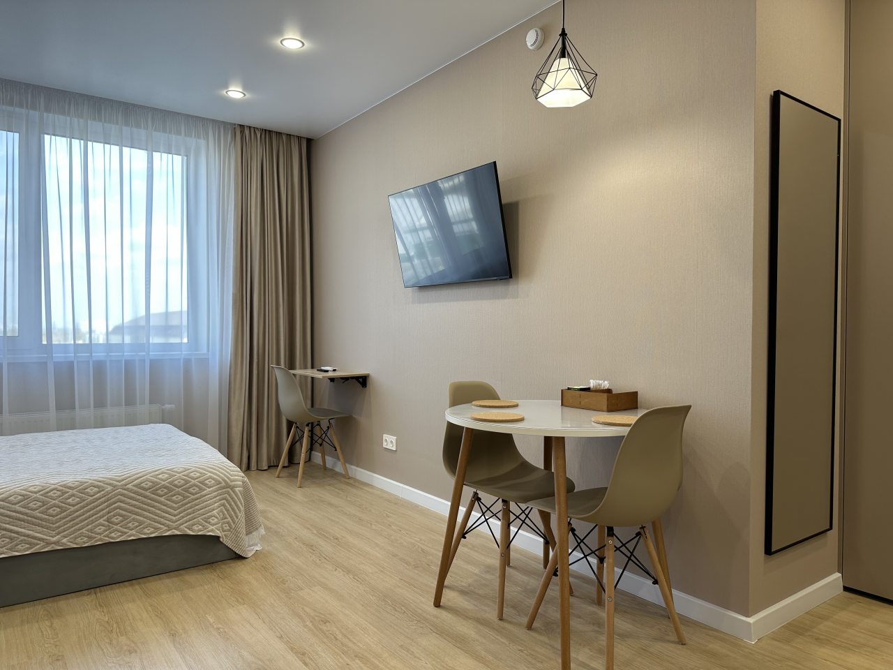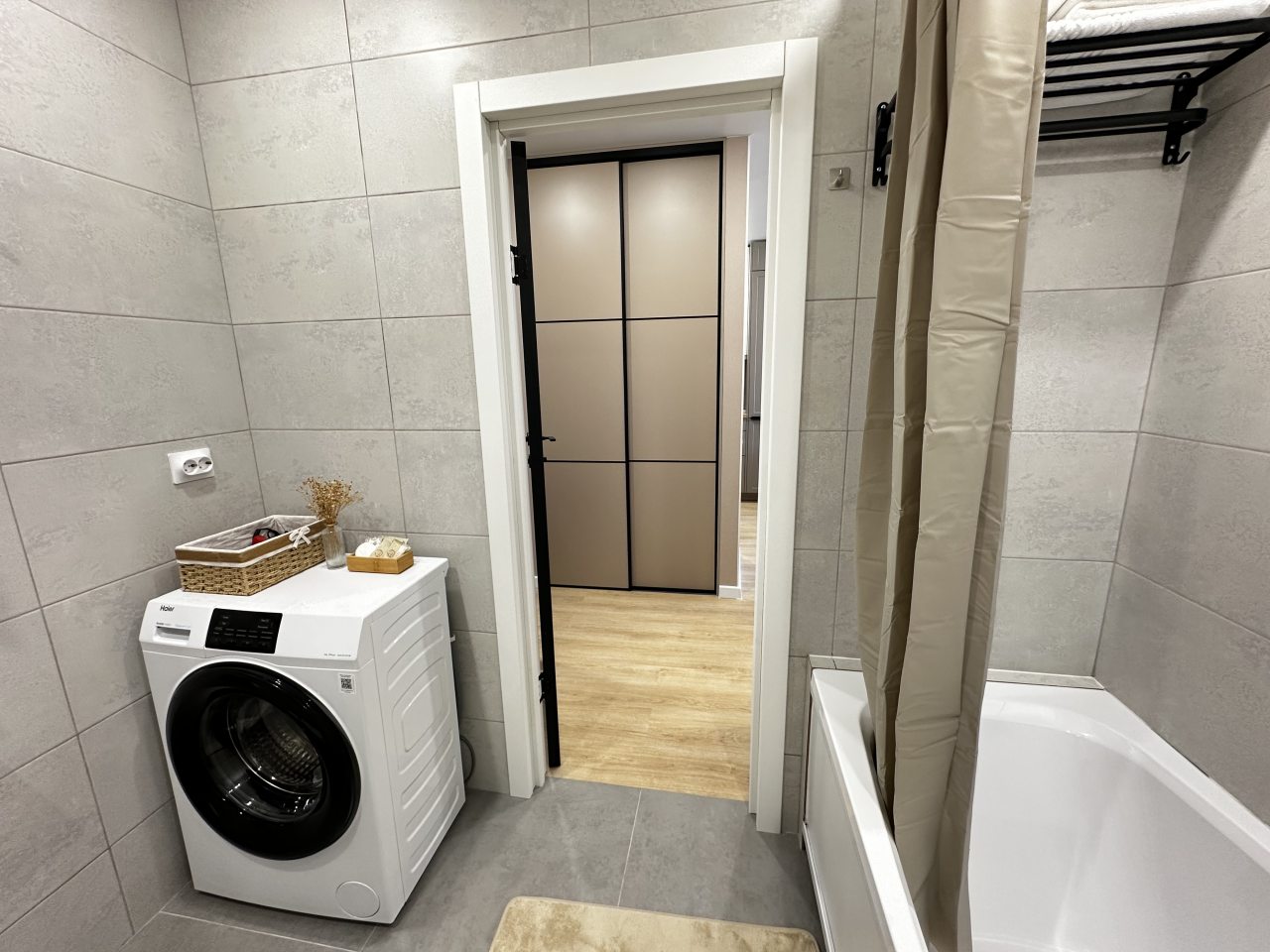 Внутри вас ожидает удобная двуспальная кровать, кондиционер, мягкое кресло, вместительный шкаф, плотные шторы, телевизор, полноценная ванна, стиральная машина, набор полотенец и гигиенических средств.
