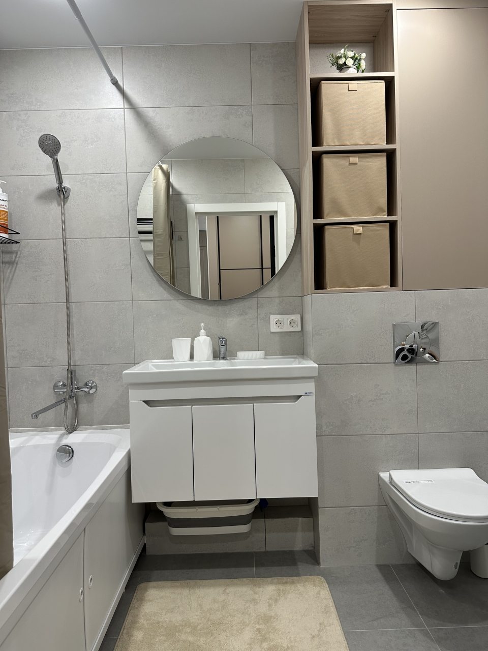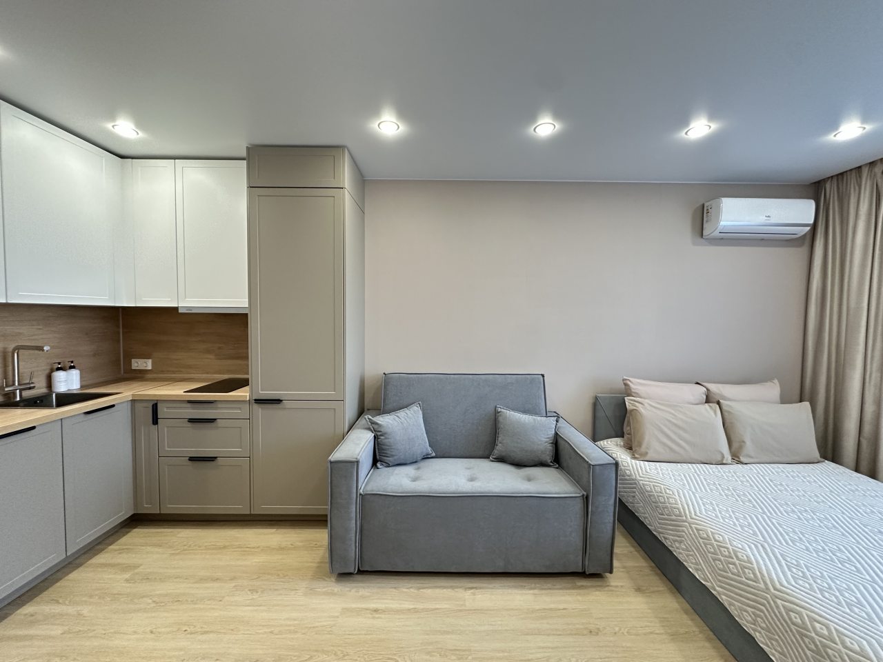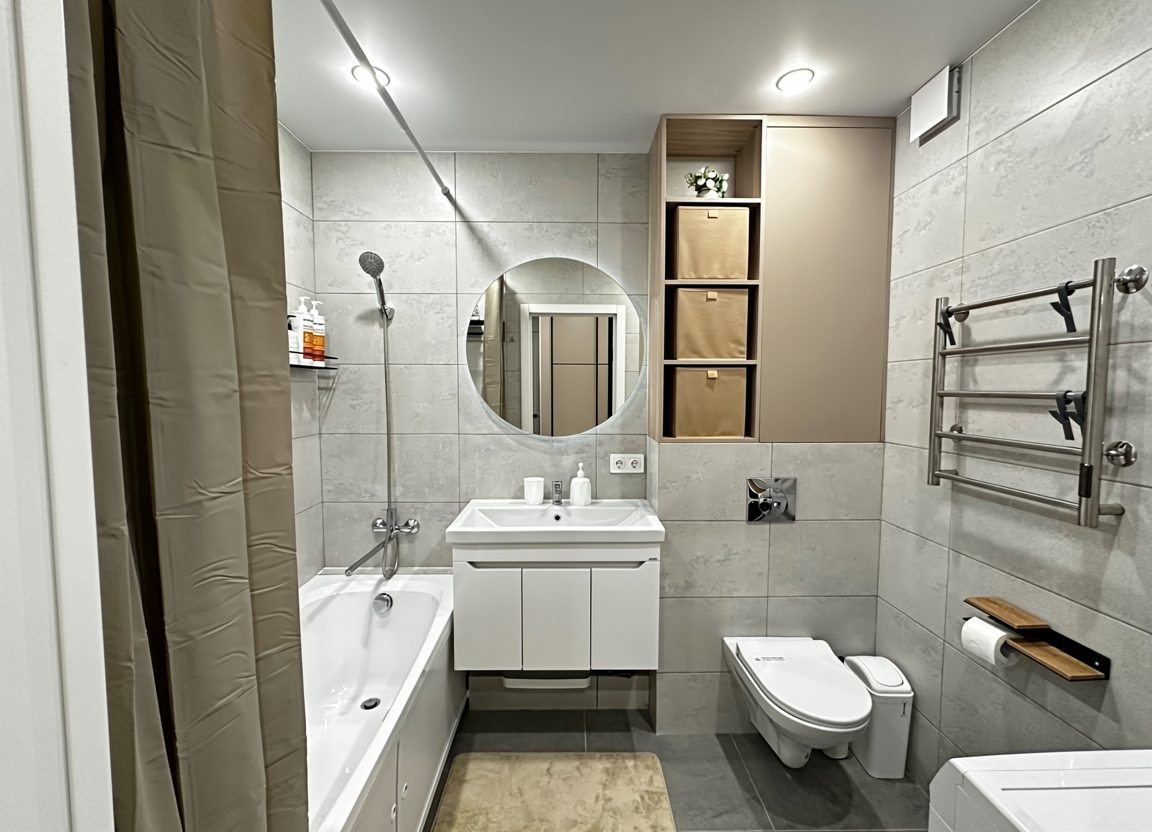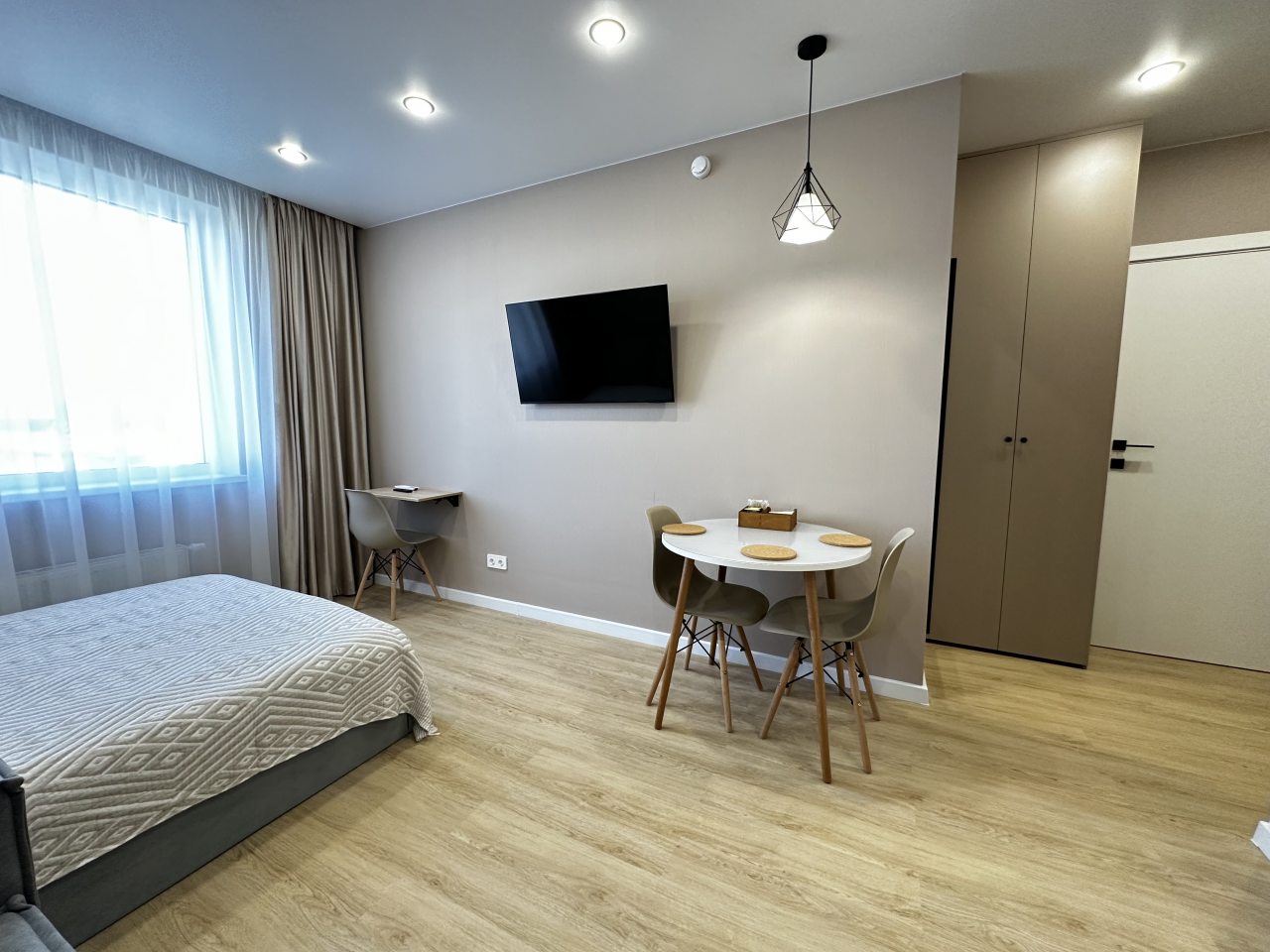 Внутри вас ожидает удобная двуспальная кровать, кондиционер, мягкое кресло, вместительный шкаф, плотные шторы, телевизор, полноценная ванна, стиральная машина, набор полотенец и гигиенических средств.