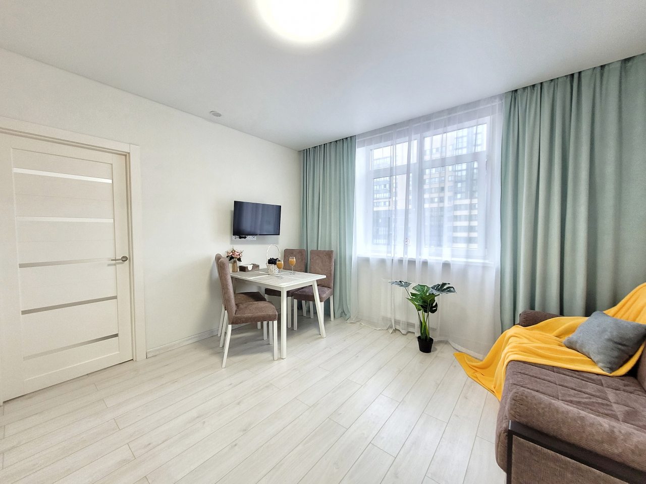Брали апартаменты на 5 дней. Бронь оформляли в онлайн формате на сайте. С нами быстро связались и подтвердили внесенную сумму аванса. Заселились бесконтактно, понравилось нам, что квартира была хорошо подготовлена к приезду новых гостей. И убрана отлично, и запах свежий. Расположены апартаменты в центре Тюмени.