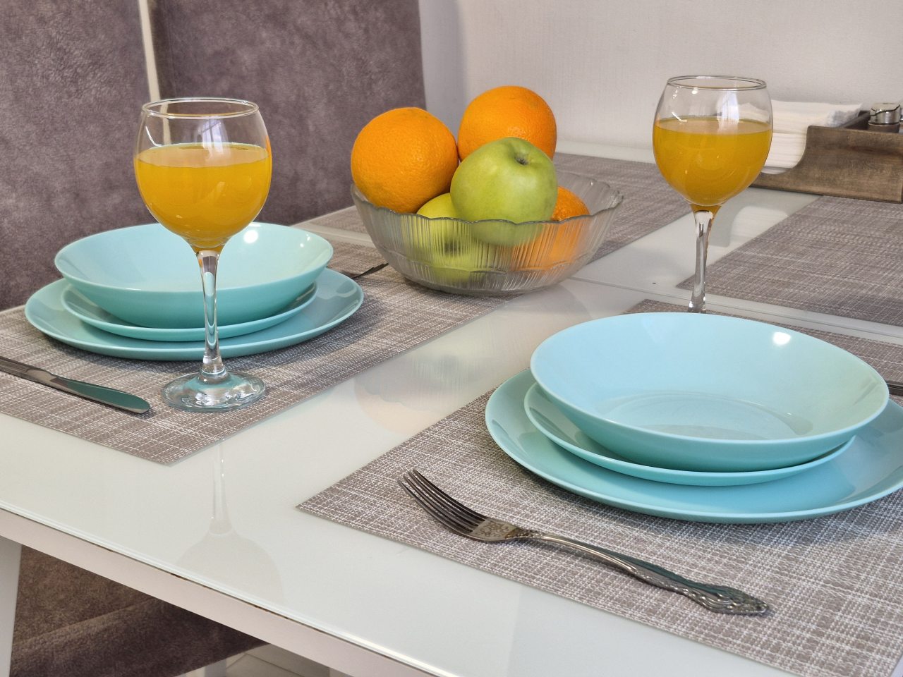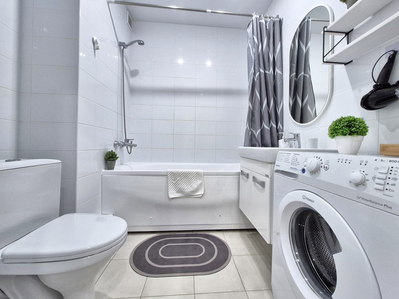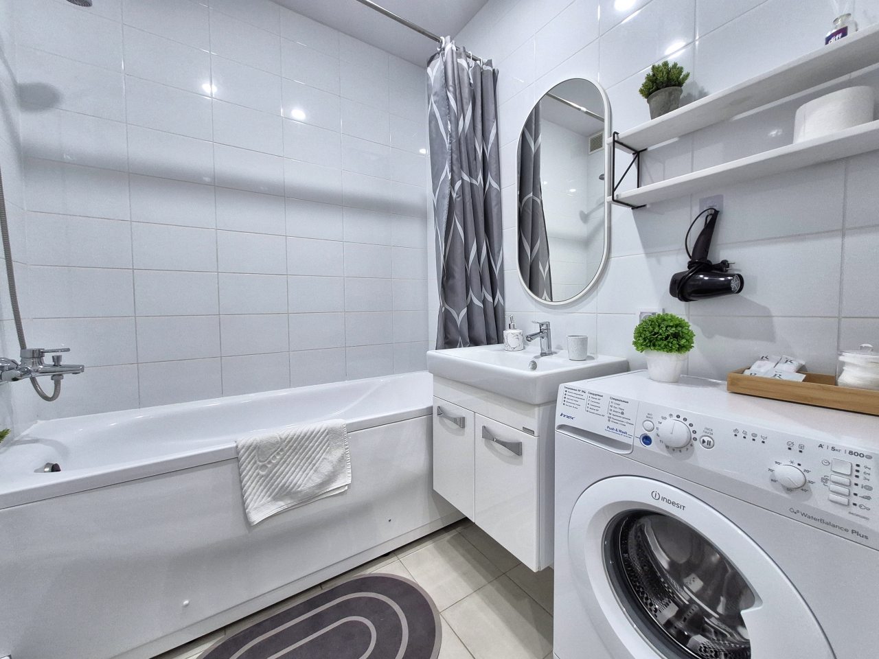 Для комфортного размещения есть удобная мебель и кровать, кондиционер, скоростной интернет и телевизор. В ванной подготовлены фен, стиральная машина и средства личной гигиены с набором полотенец.
