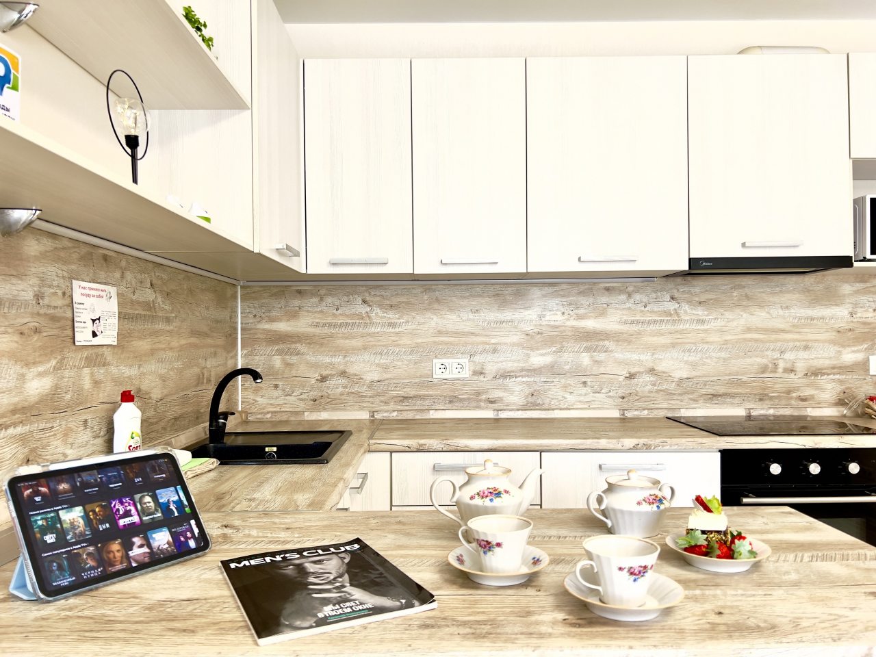 На просторной кухне имеется выход на балкон. С помощью бытовых приборов и посуды гости смогут приготовить любимые блюда. В пешей доступности различные кафе, рестораны, супермаркеты.