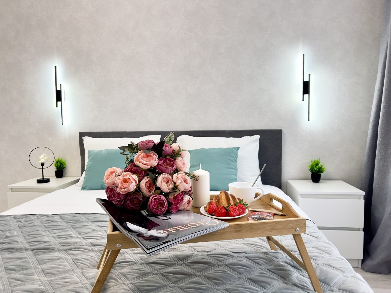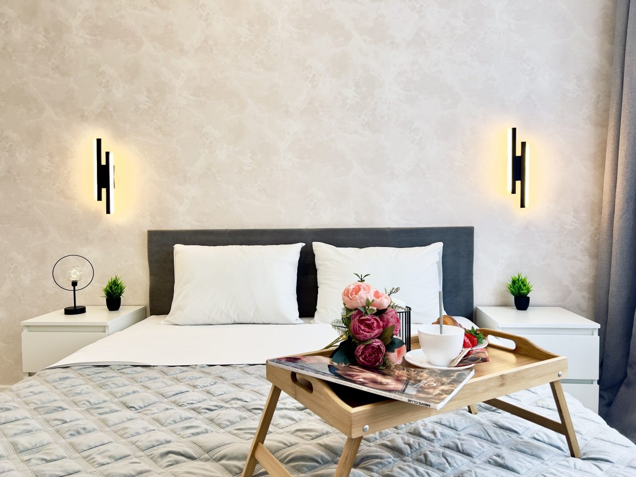 В квартирах выполнен стильный и качественный ремонт, а также установлена современная сантехника. Гости могут расположиться на кровати king-size с ортопедическим матрасом или на диване. Также имеется телевизор с онлайн-кинотеатрами и бесплатный Wi-Fi. У гостей в доступе полотенца, халаты и постельное белье.