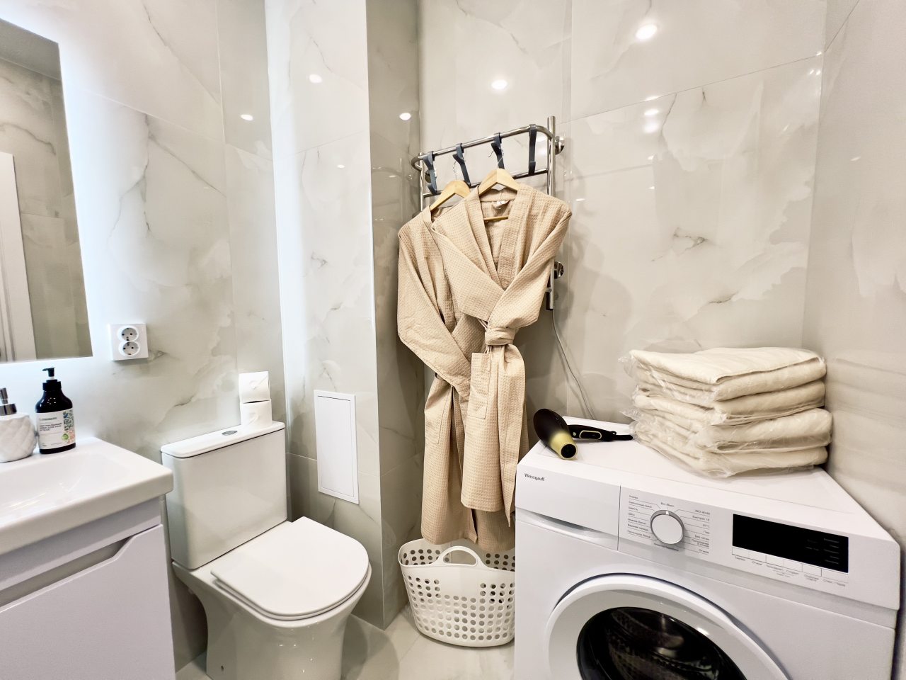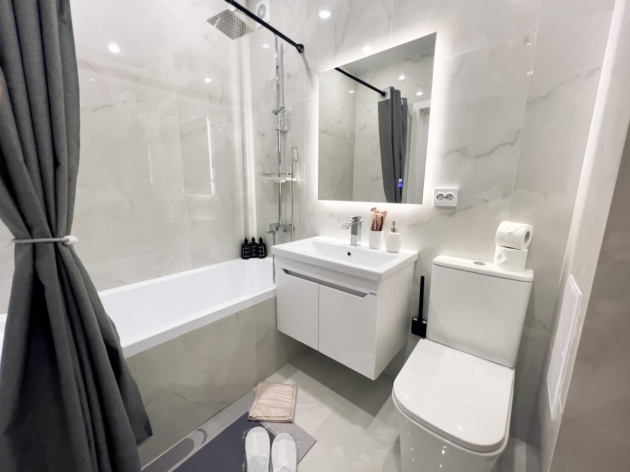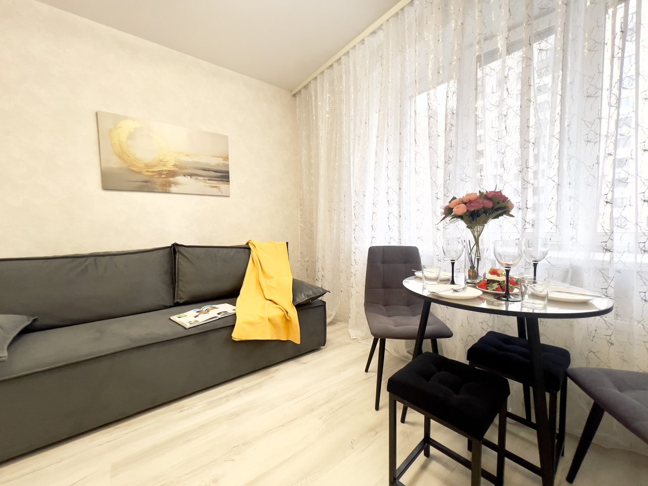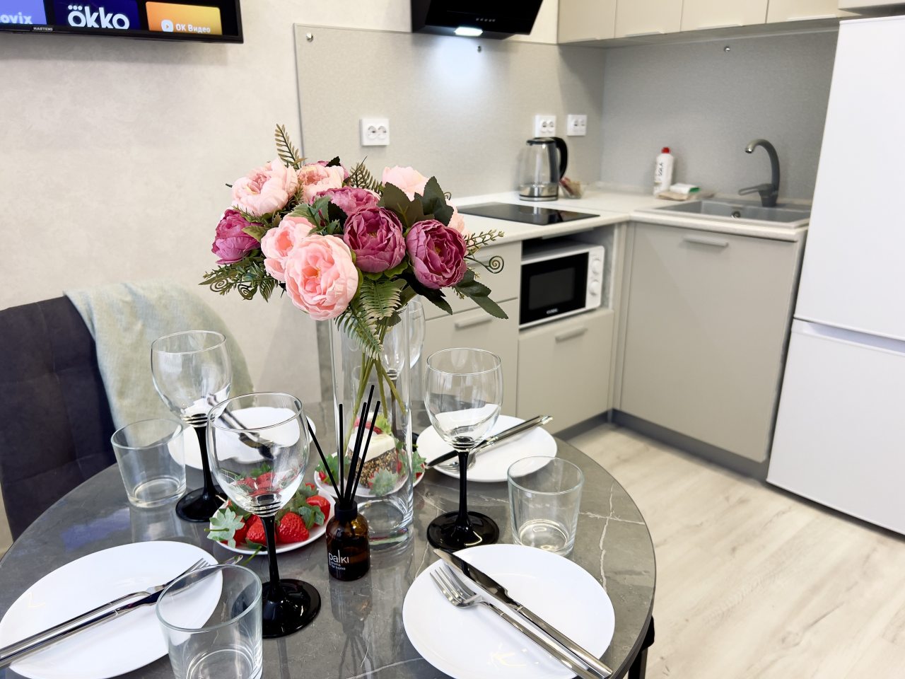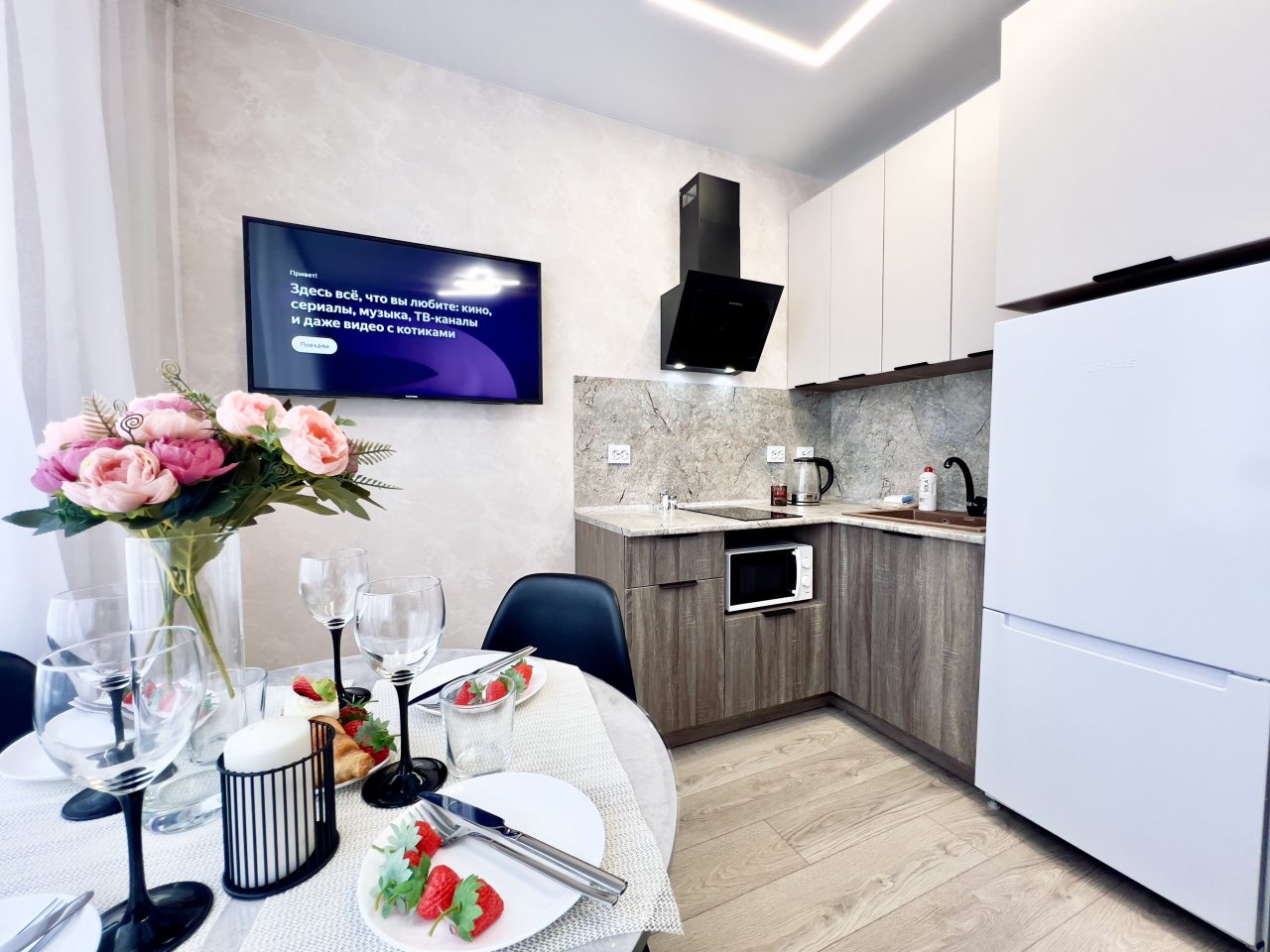 Снимал апартаменты на 5 дней, все прошло отлично. Красивая и стильная квартира в новом ЖК. Свежий ремонт, все новое, приятно было провести здесь время. Цена вполне соответствует качеству. Приятно удивило наличие халатов и полотенец, прямо как в гостинице. Хорошее расположение недалеко от центра.