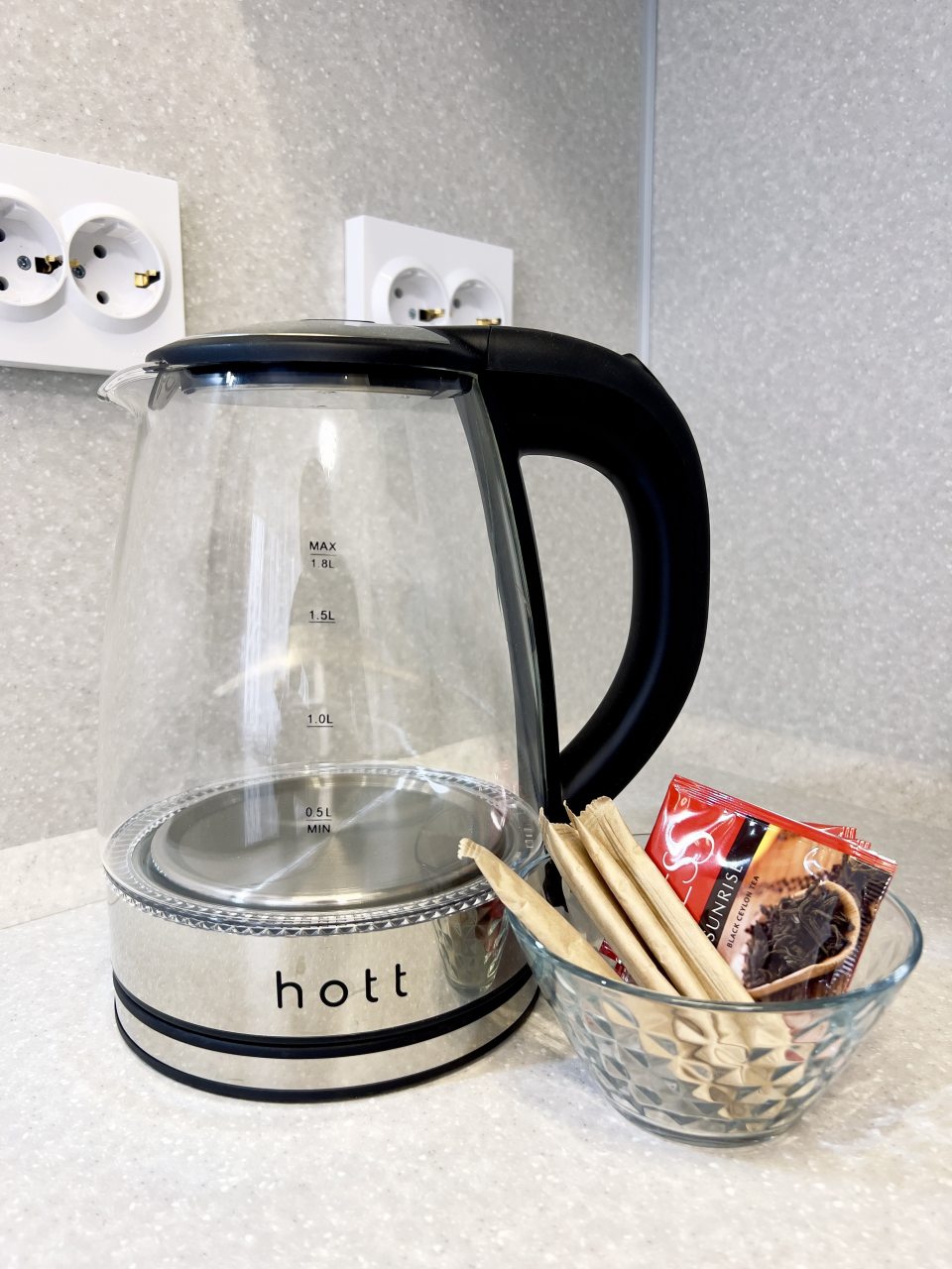На кухне для самостоятельного приготовления пищи есть вся необходимая бытовая техника и посуда.