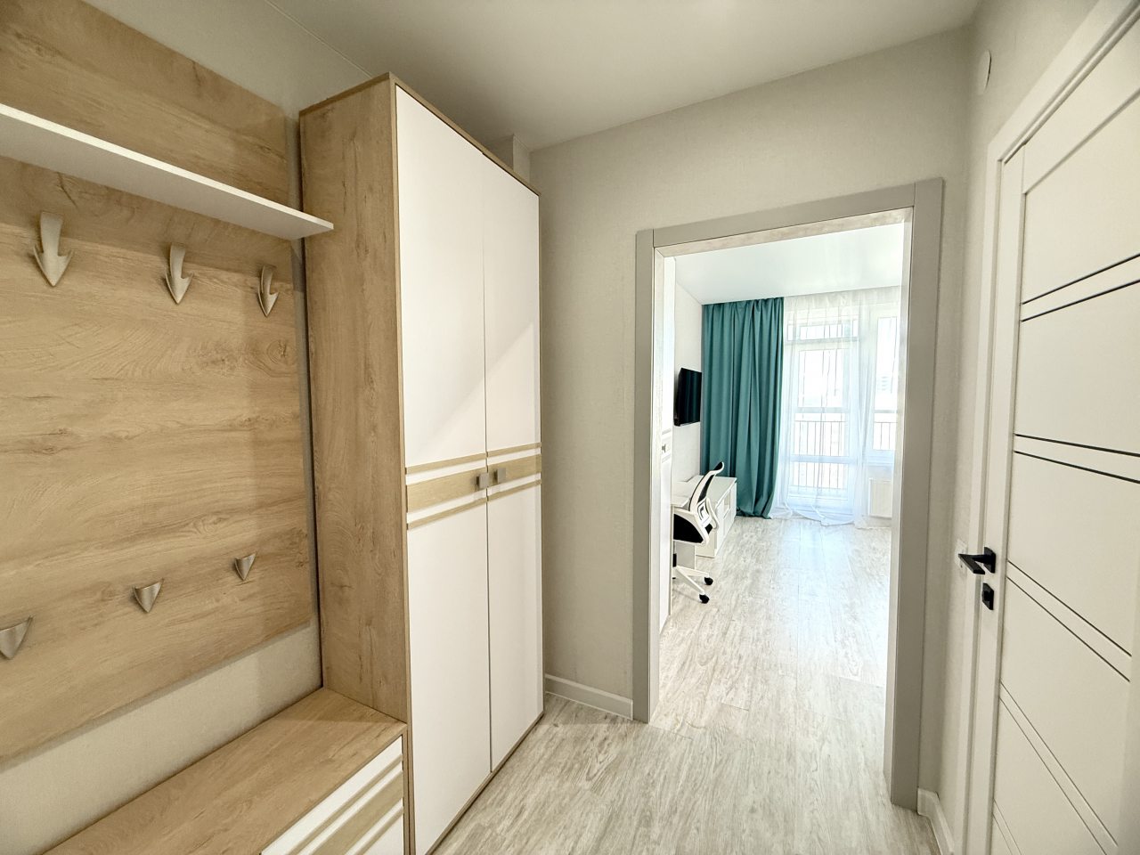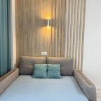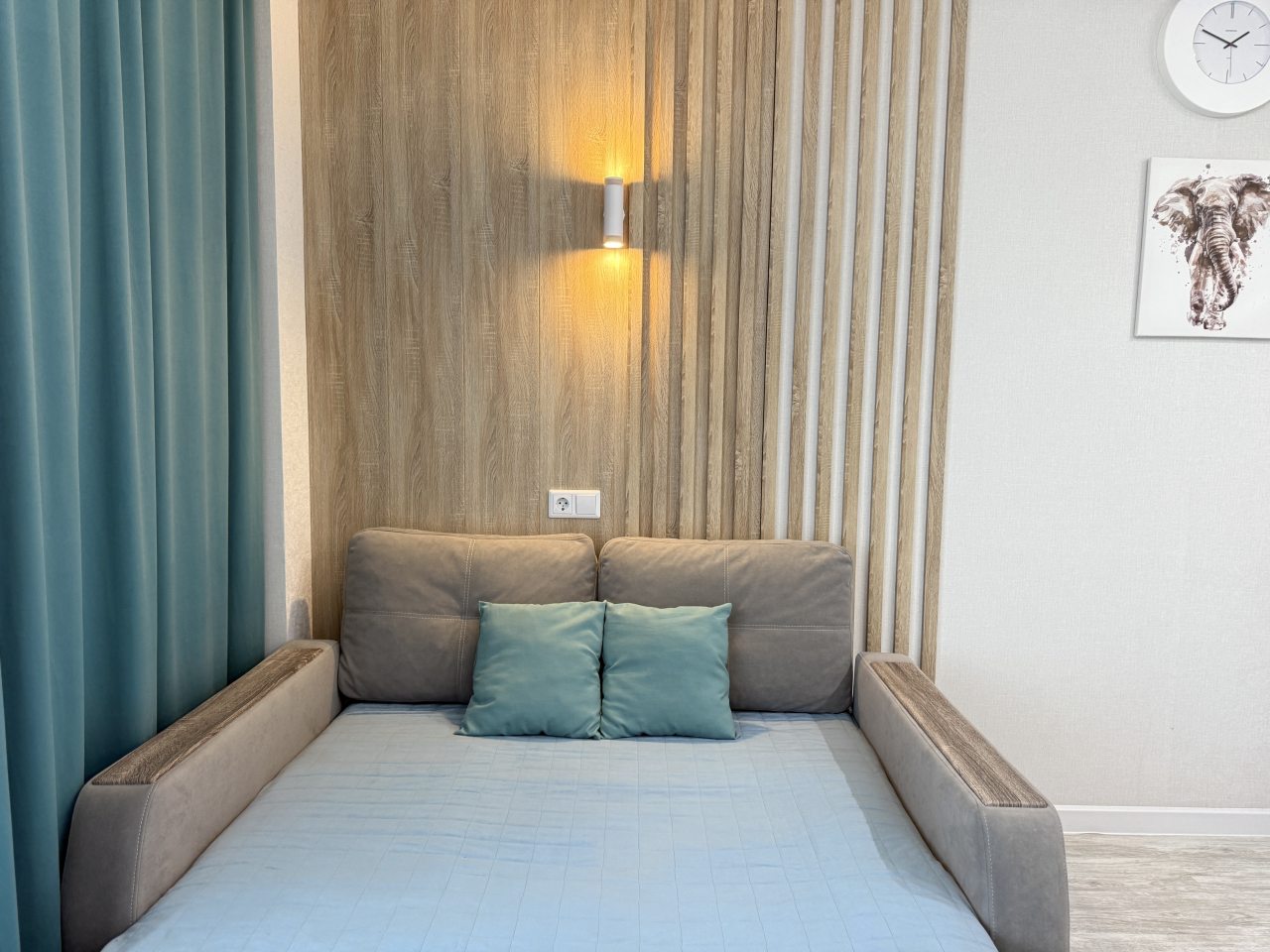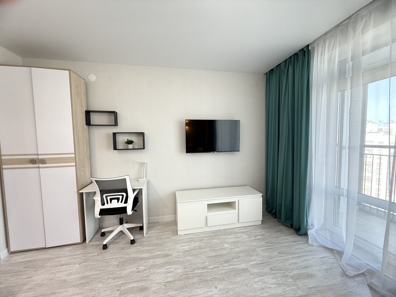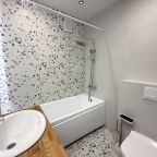 Для полноценного отдыха и проживания предусмотрена качественная мебель и техника, включая удобное спальное место, различные зоны для хранения вещей, телевизор, а также ванную комнату со стиральной машиной.
