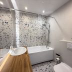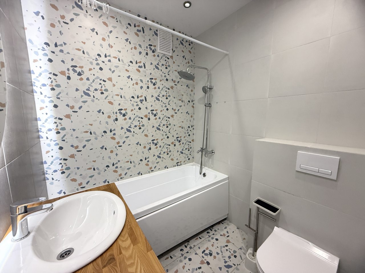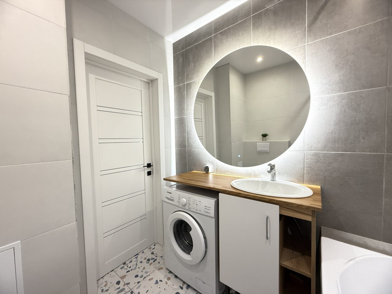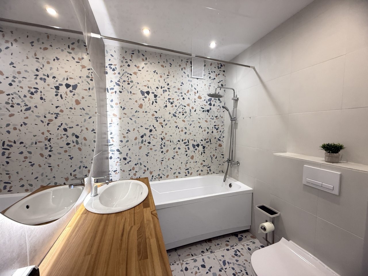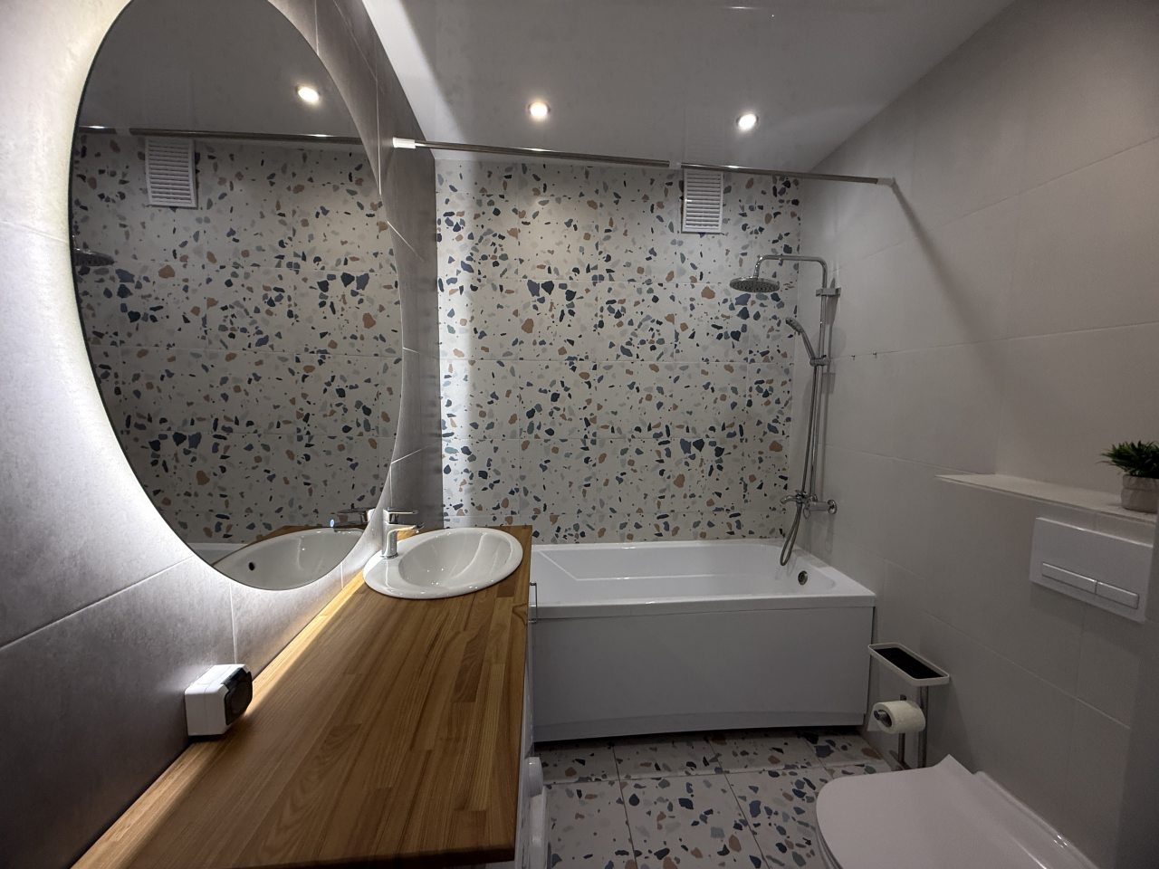 Для полноценного отдыха и проживания предусмотрена качественная мебель и техника, включая удобное спальное место, различные зоны для хранения вещей, телевизор, а также ванную комнату со стиральной машиной.