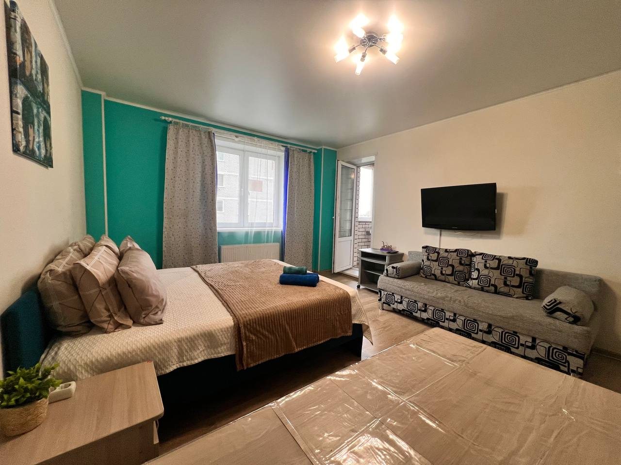 Вы можете разместиться в современных апартаментах, которые оборудованы двуспальной кроватью, диваном, шкафом и телевизором. Уютную атмосферу создают элементы декора, такие как затемненные шторы, настенные картины и освещение. В ванной комнате имеются водонагреватель, стиральная машина. Также предоставляются набор полотенец, средства личной гигиены и фен.