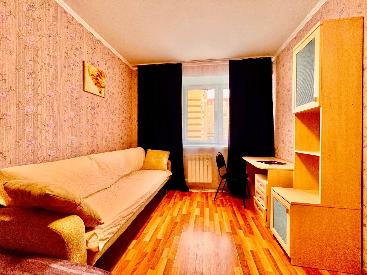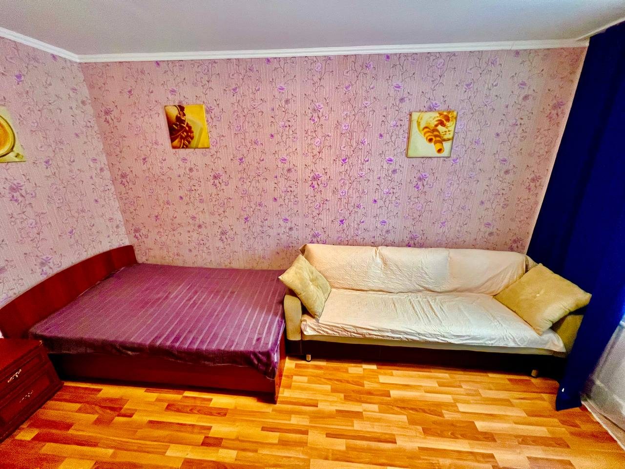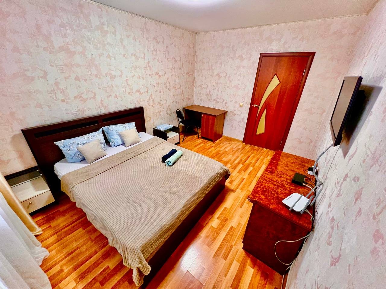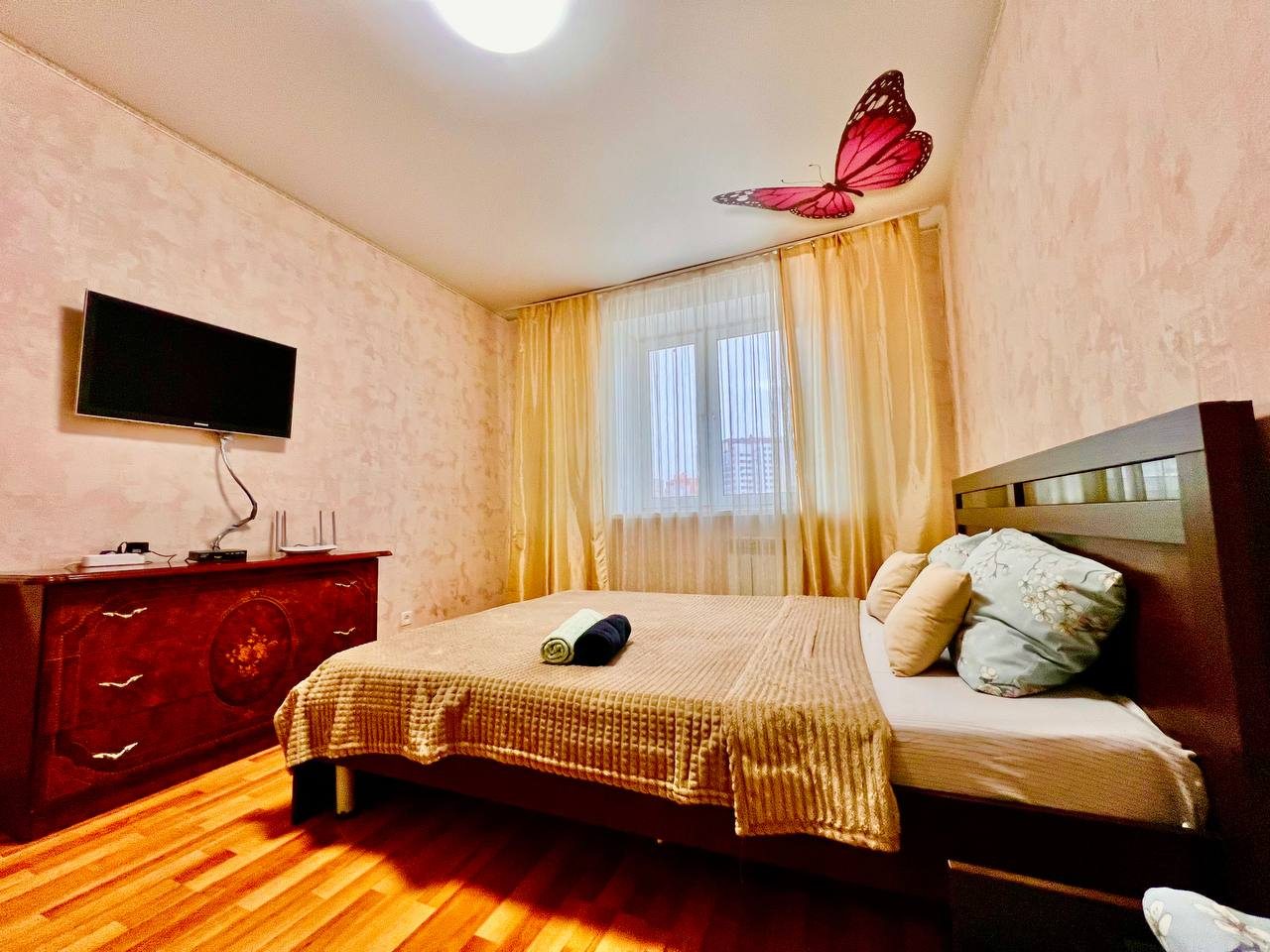 Долго искали вариант для размещения с дочкой. Хотелось отдельное пространство и не тесные однокомнатные варианты. Выбрали в итоге этот вариант размещения, который нам идеально подошел. По заезду нас ждали убранные апартаменты. Мебель качественная, хоть и немного из разных времен. На кухне вся техника рабочая, пару раз готовили). Телевизор не включали, мы не любители, но думаю, что и с ним все в порядке. Локация прекрасная, рядом магазины и кафе.