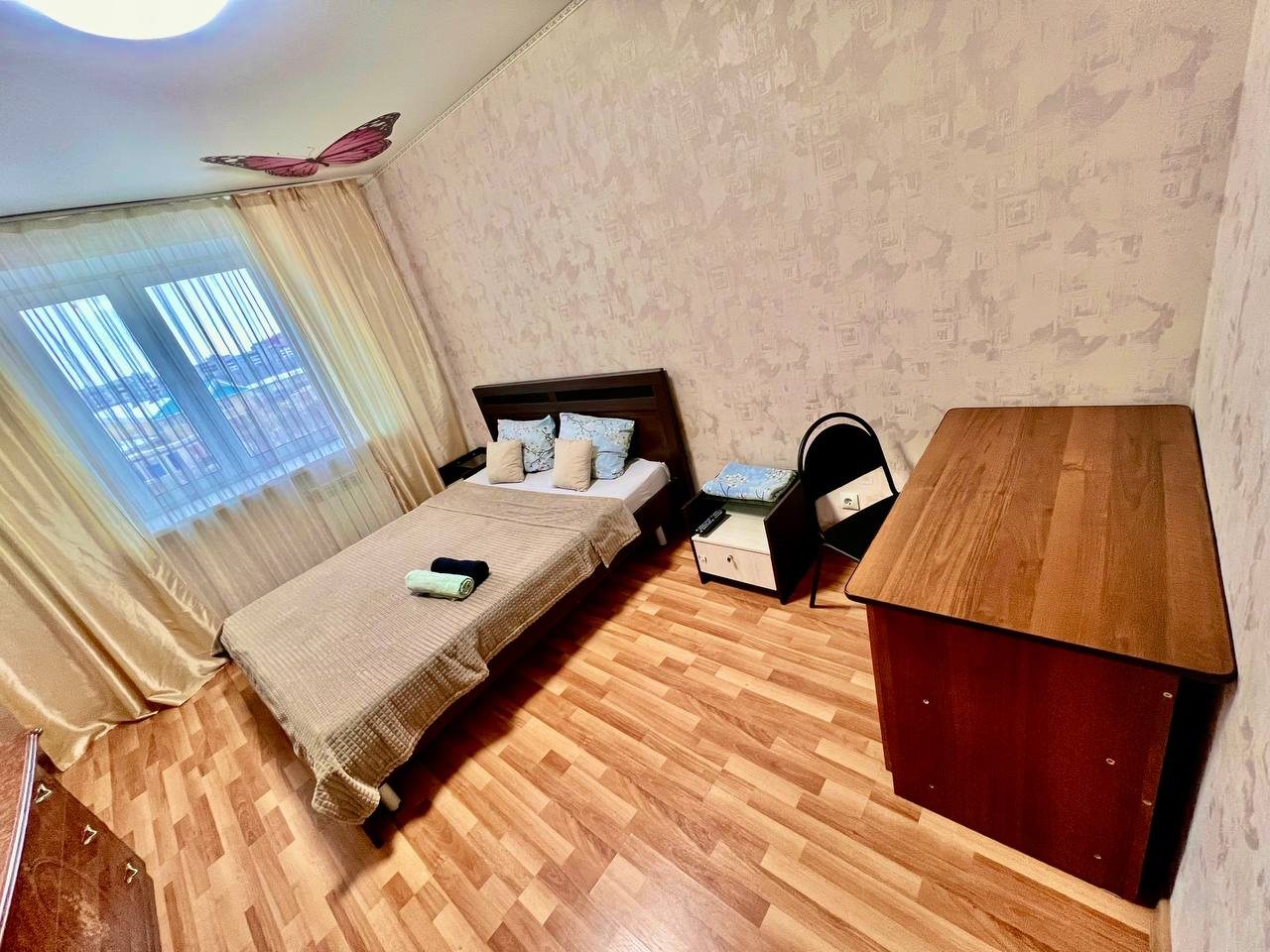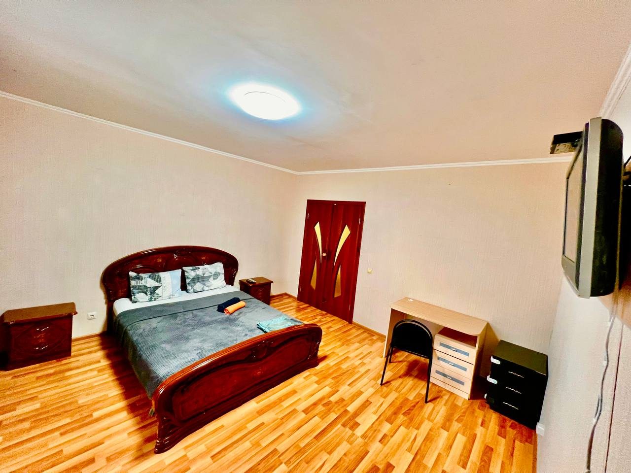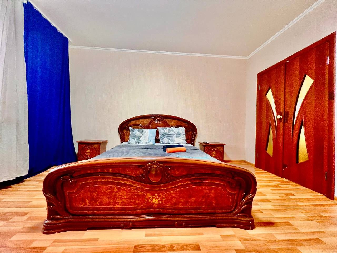 Долго искали вариант для размещения с дочкой. Хотелось отдельное пространство и не тесные однокомнатные варианты. Выбрали в итоге этот вариант размещения, который нам идеально подошел. По заезду нас ждали убранные апартаменты. Мебель качественная, хоть и немного из разных времен. На кухне вся техника рабочая, пару раз готовили). Телевизор не включали, мы не любители, но думаю, что и с ним все в порядке. Локация прекрасная, рядом магазины и кафе.