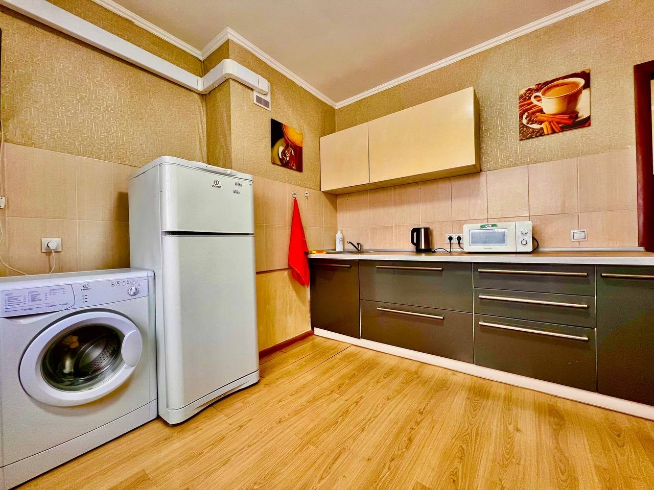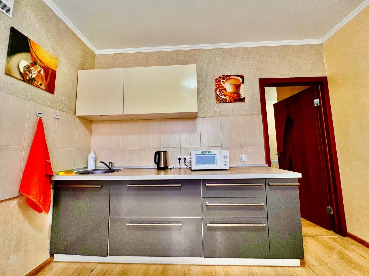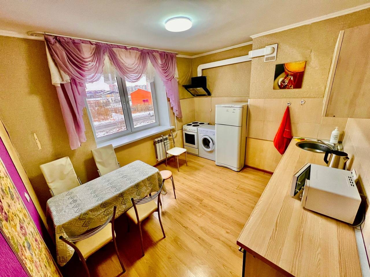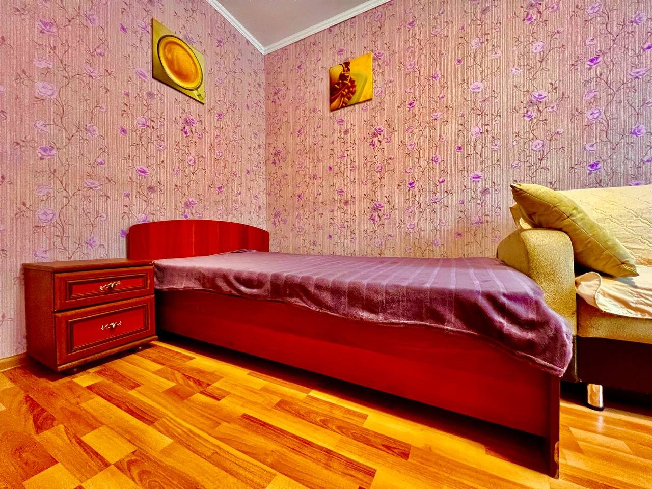 Долго искали вариант для размещения с дочкой. Хотелось отдельное пространство и не тесные однокомнатные варианты. Выбрали в итоге этот вариант размещения, который нам идеально подошел. По заезду нас ждали убранные апартаменты. Мебель качественная, хоть и немного из разных времен. На кухне вся техника рабочая, пару раз готовили). Телевизор не включали, мы не любители, но думаю, что и с ним все в порядке. Локация прекрасная, рядом магазины и кафе.
