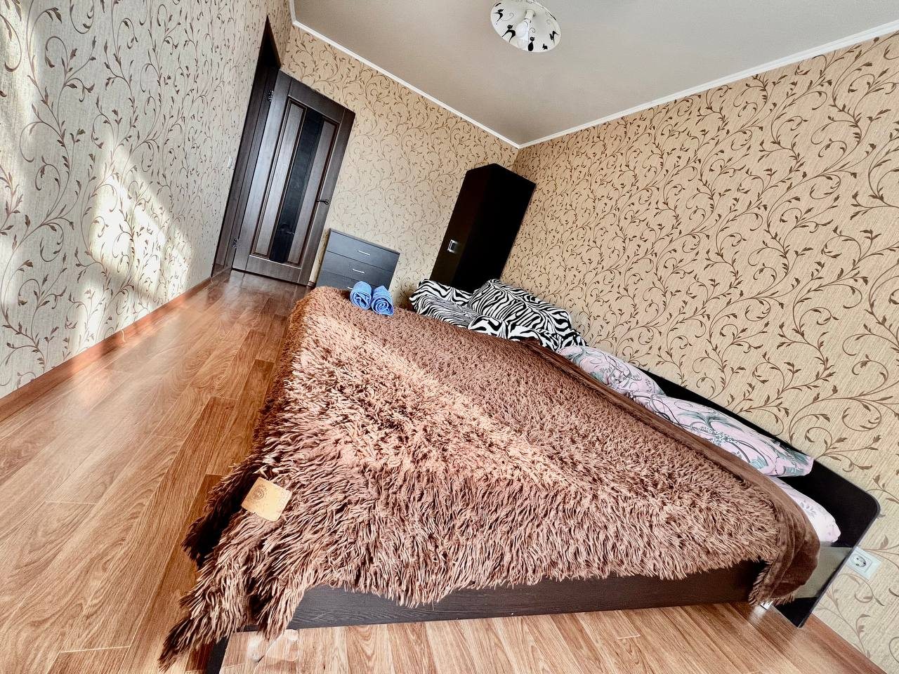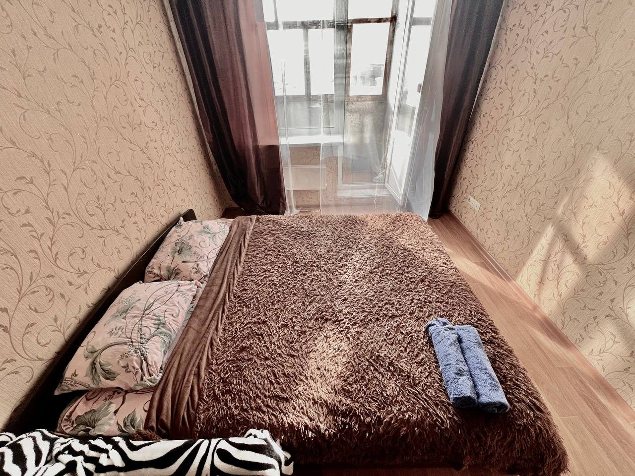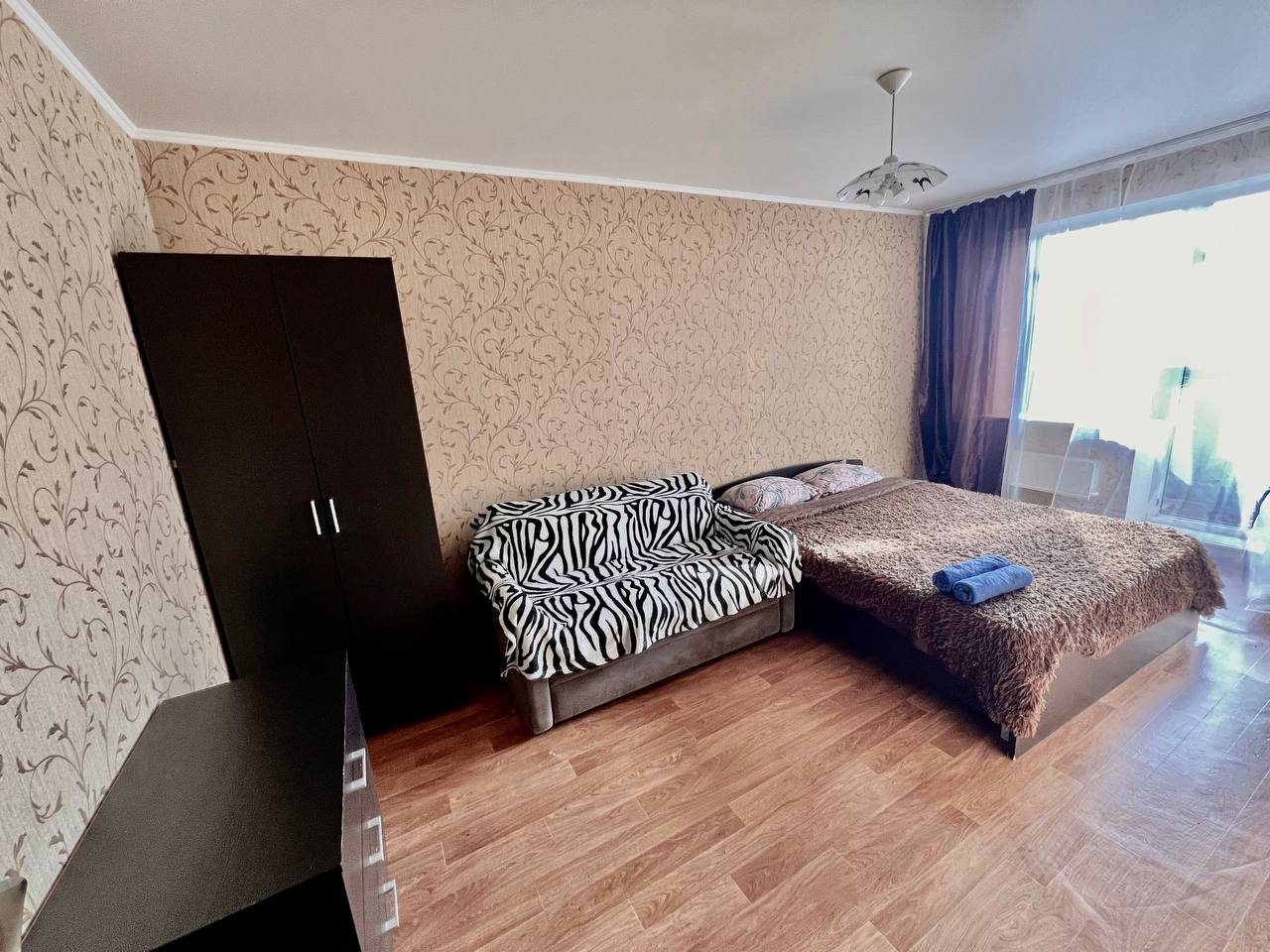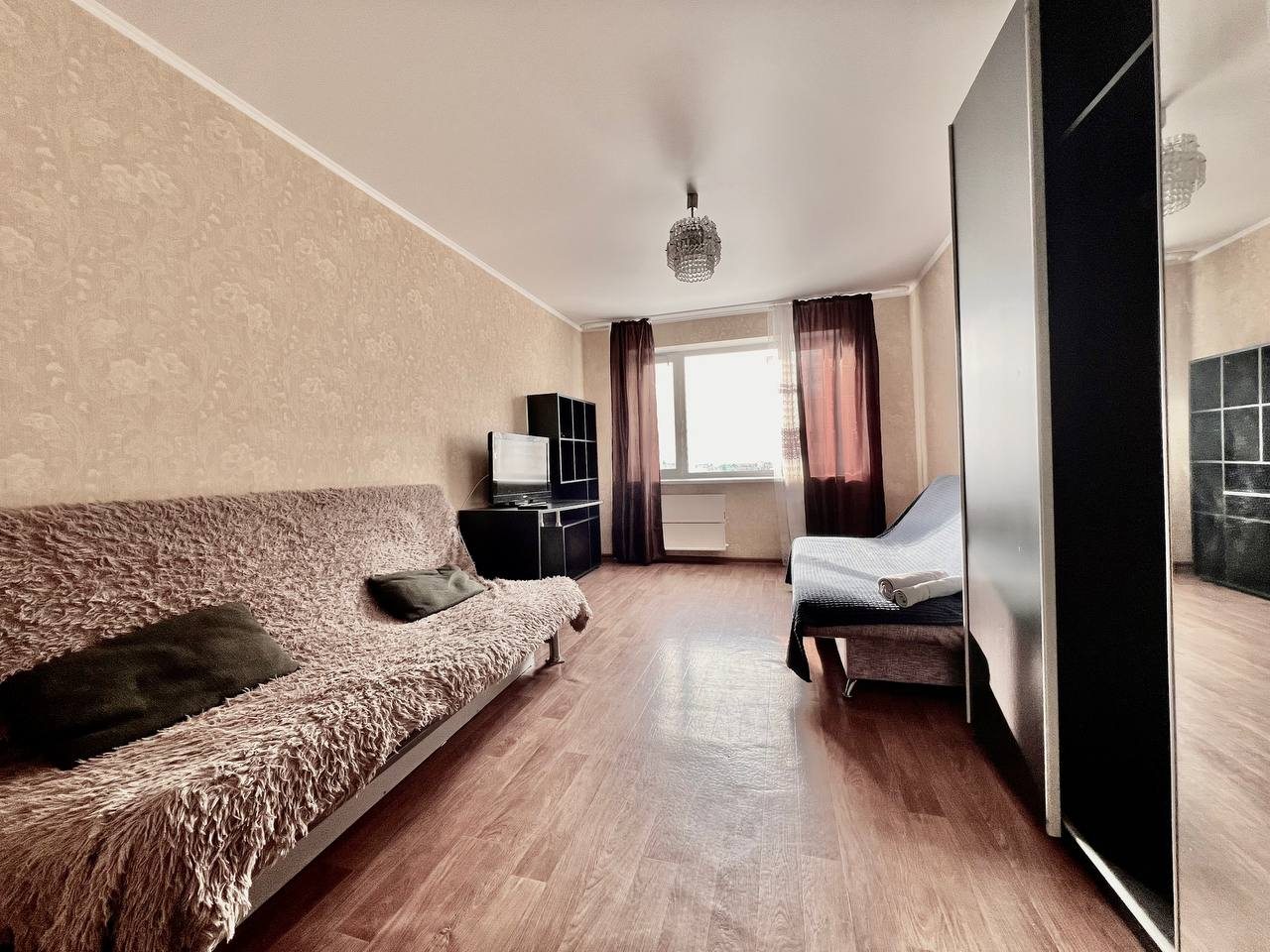 Квартира с домашней обстановкой обустроена стиральной машиной, телевизором, Wi-Fi, балконом, двуспальной кроватью и тремя раскладными диванами.