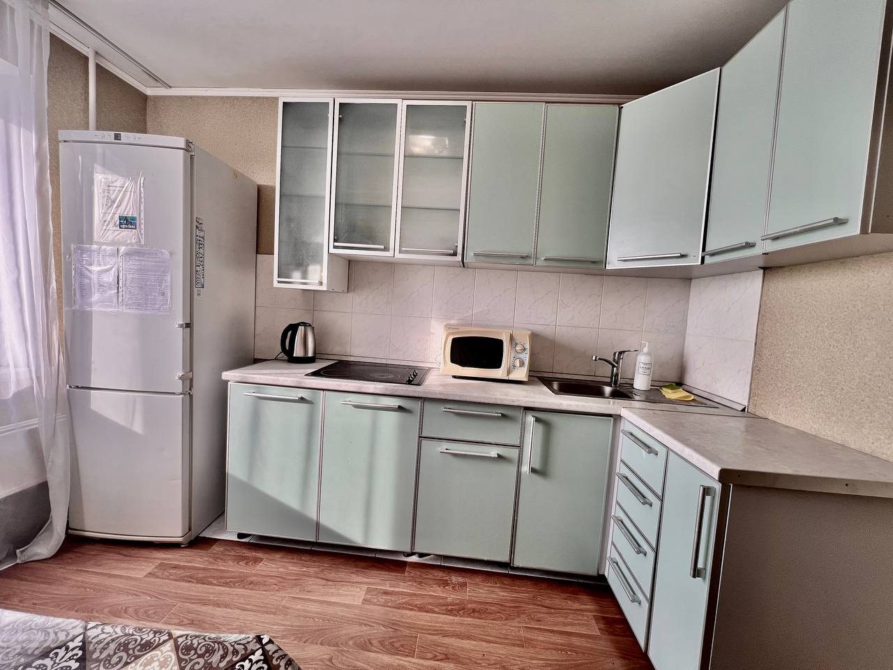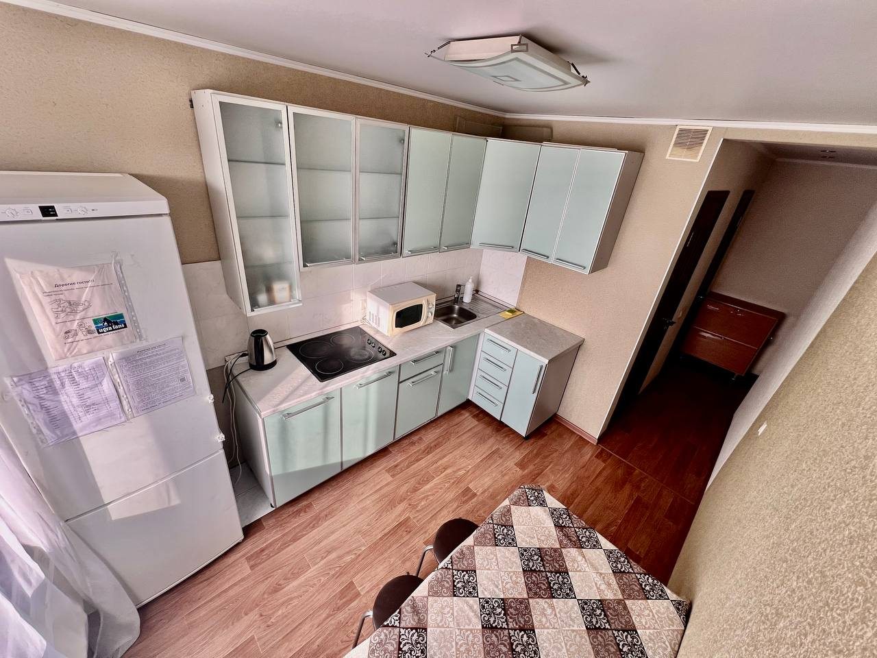 Квартира большая, как раз такая, как мы и хотели, чтобы все чувствовали себя комфортно. Проживали с дочкой, она была рада, что ей выделили целую комнату. Есть и телевизор, вайфай, что очень удобно. Вся техника на кухне работает, поэтому готовить было комфортно. Поблизости много продуктовых магазинов. Рекомендуем эти апартаменты!