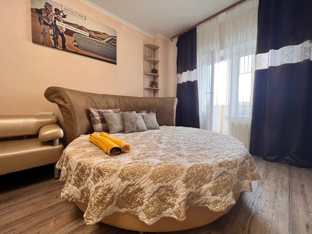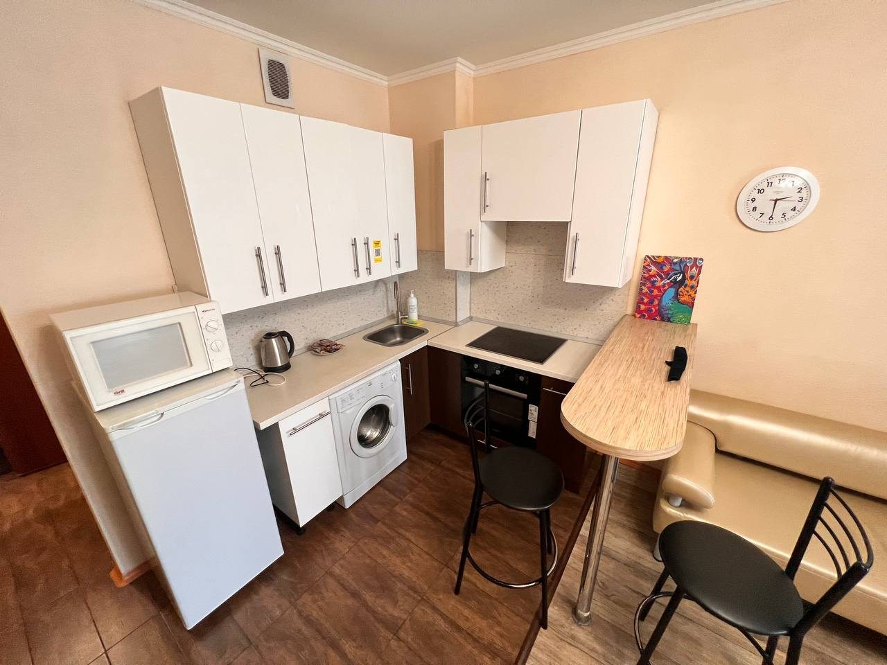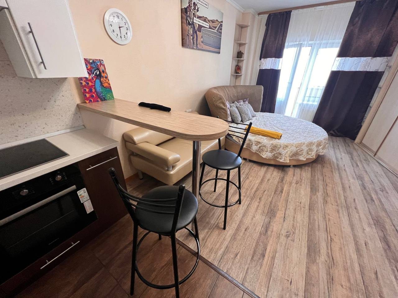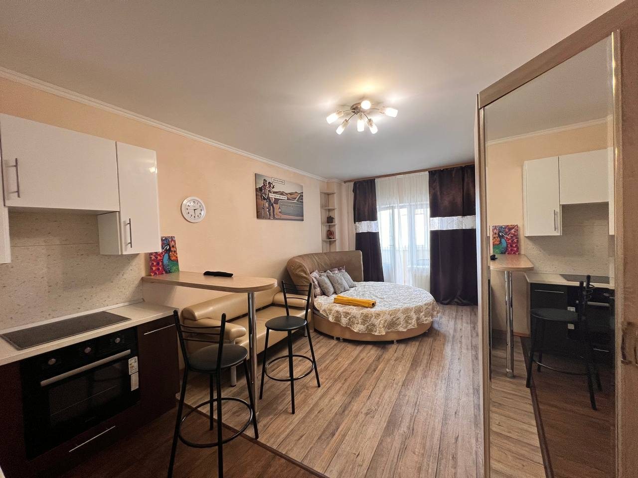 Квартира имеет современный и стильный дизайн, предлагая комфортное проживание. Для гостей доступны: удобное спальное место, диван, телевизор и ванная комната с качественной сантехникой. Апартаменты полностью оборудованы для долгосрочного проживания.
