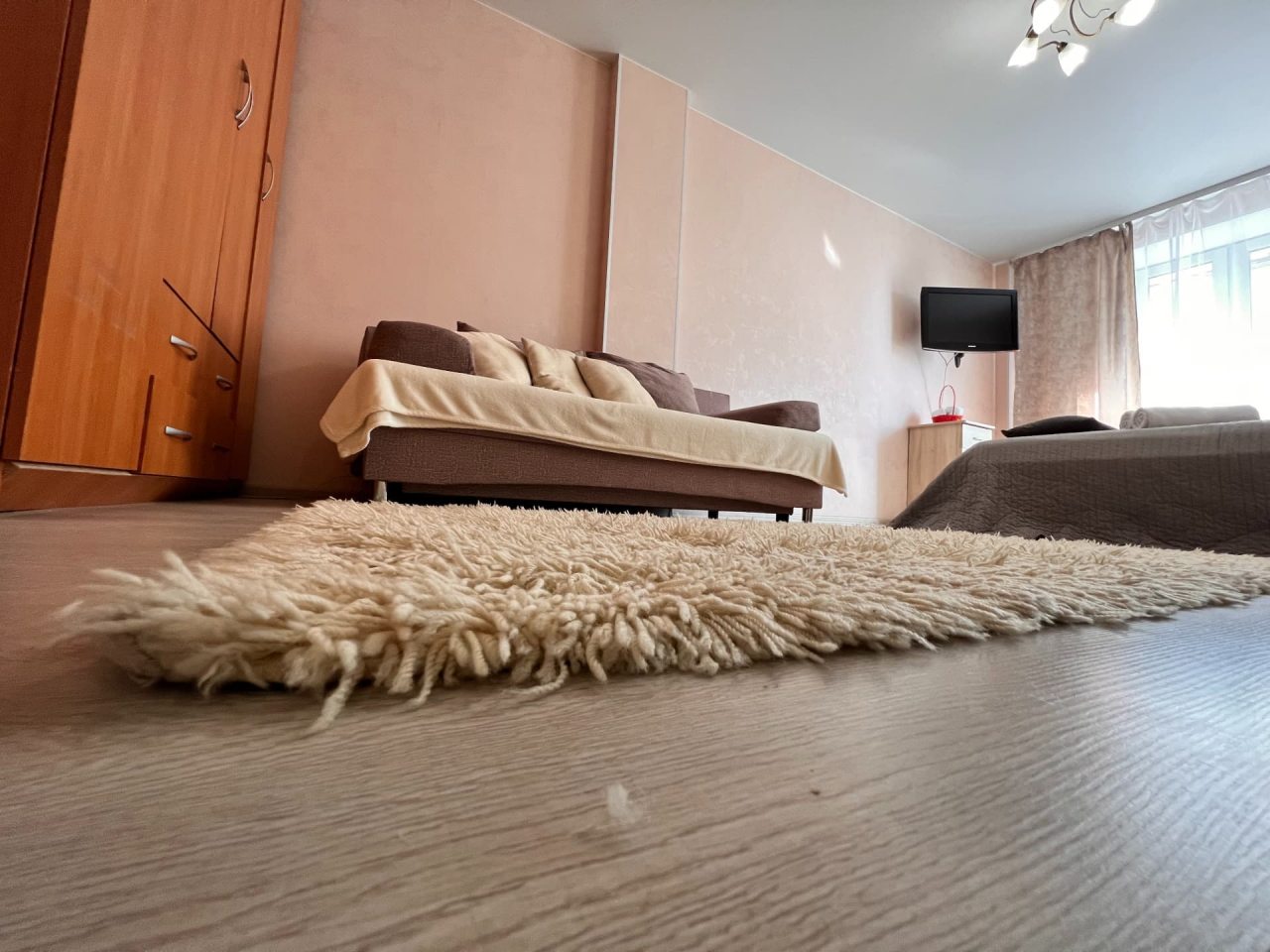 Квартира нас не разочаровала. Неплохое расположение, цена соответствует. Зато не надо зависеть от сотрудников, как в отелях. Магазины рядом были. Остановки неподалеку также располагались. Постельное белье нам дали чистое. оно даже было уже заправлено, что опять-таки не могло не порадовать. В ванной комнате было чисто, не было плесени и ржавчины. Светло, уютно, по-домашнему. Благодарим за возможность комфортабельного отдыха.