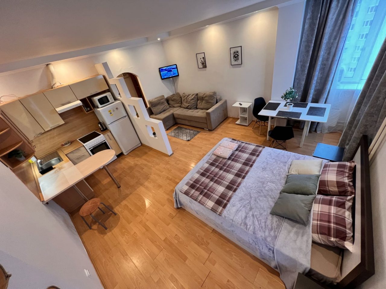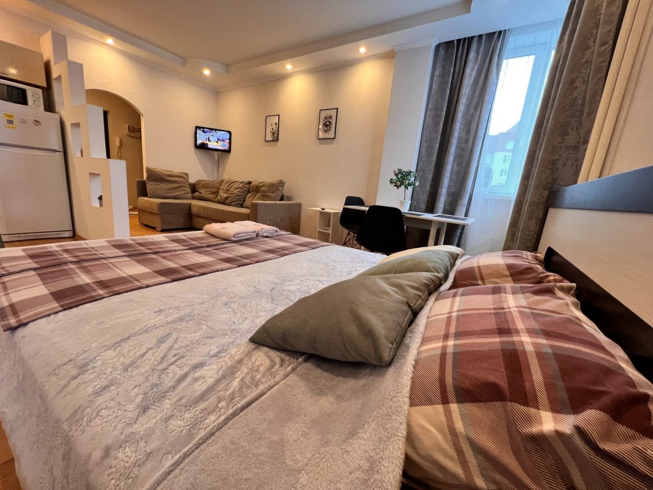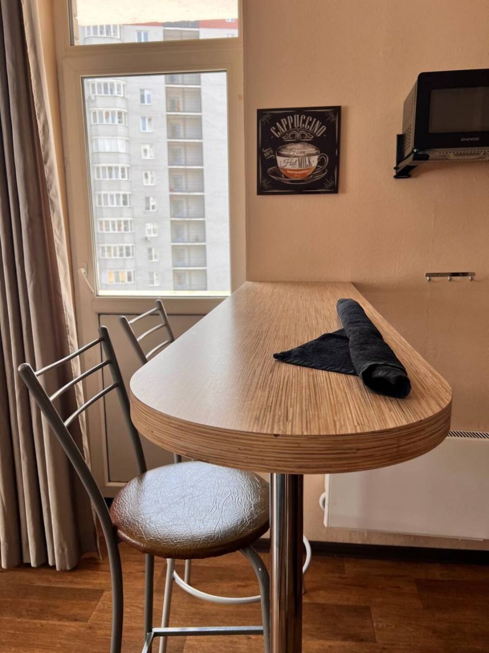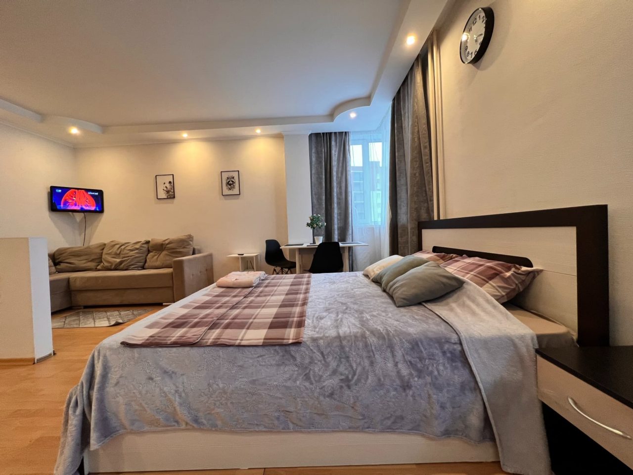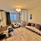 Хорошая студия в центре города, что я и искал. Мне она понравилась сражу же, поэтому долго не думая, решил остановиться здесь. Все есть, удобная кровать, шторы плотные, свет по утрам не мешал. На кухне тоже есть и посуда, и приборы, поэтому готовить было комфортно. Квартира мне понравилась, рекомендую для проживания!