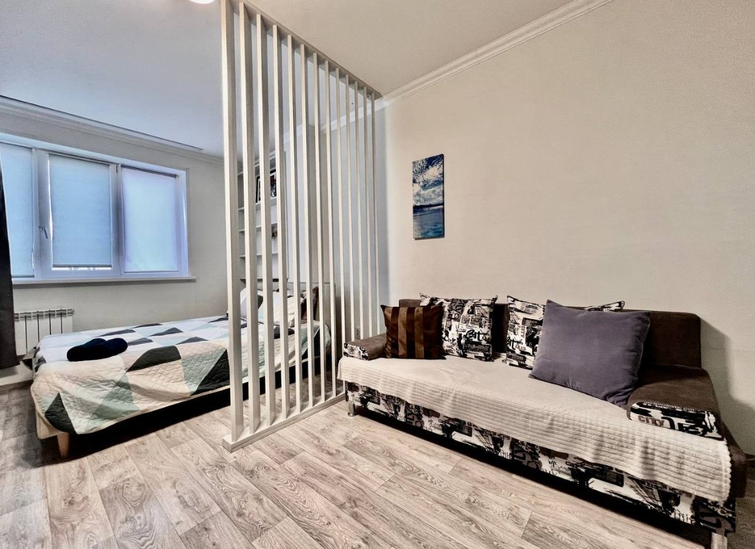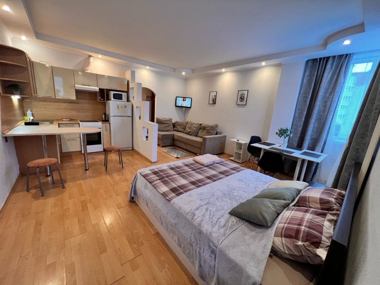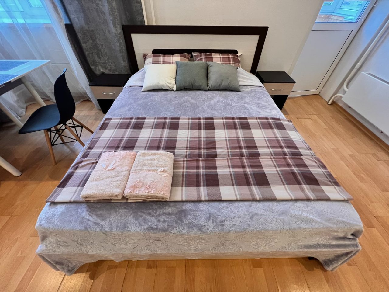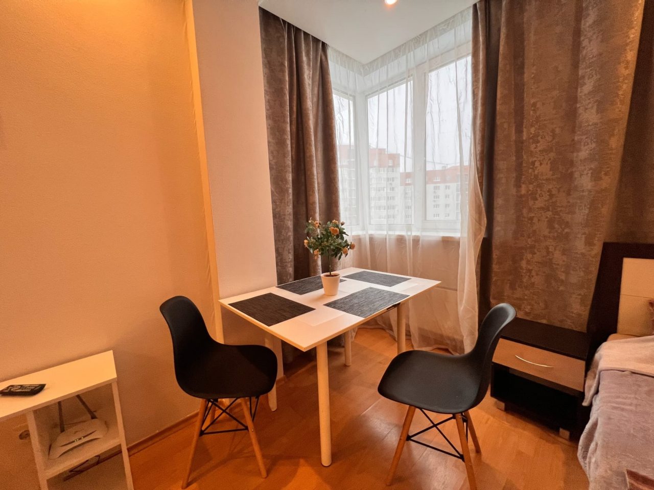 Хорошая студия в центре города, что я и искал. Мне она понравилась сражу же, поэтому долго не думая, решил остановиться здесь. Все есть, удобная кровать, шторы плотные, свет по утрам не мешал. На кухне тоже есть и посуда, и приборы, поэтому готовить было комфортно. Квартира мне понравилась, рекомендую для проживания!