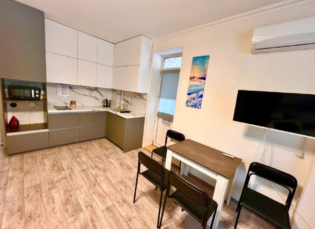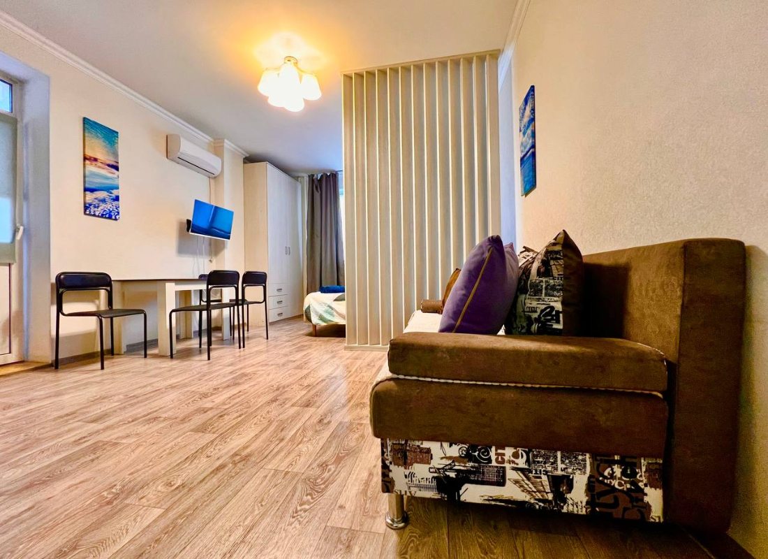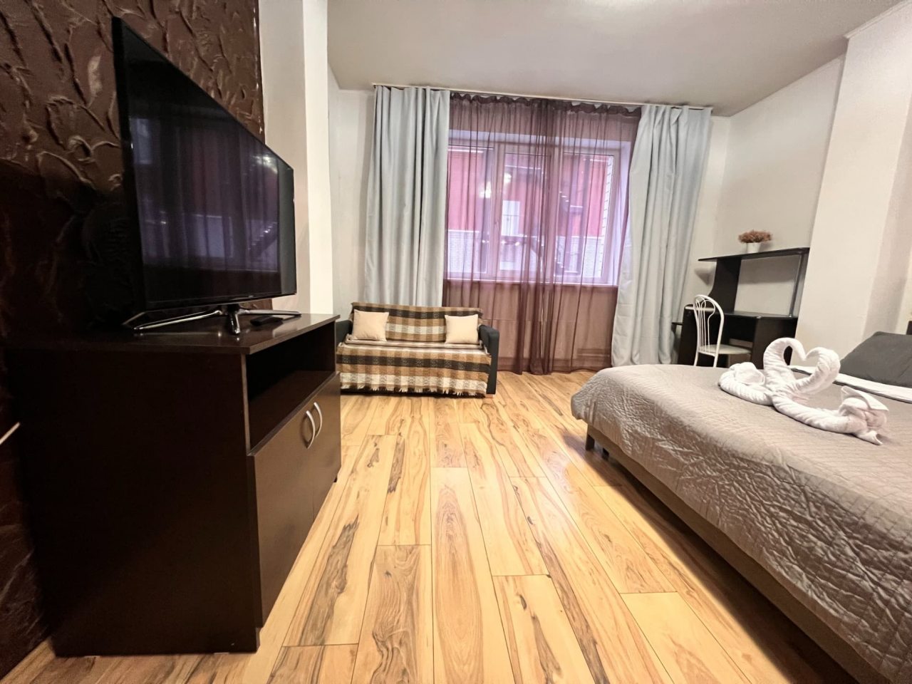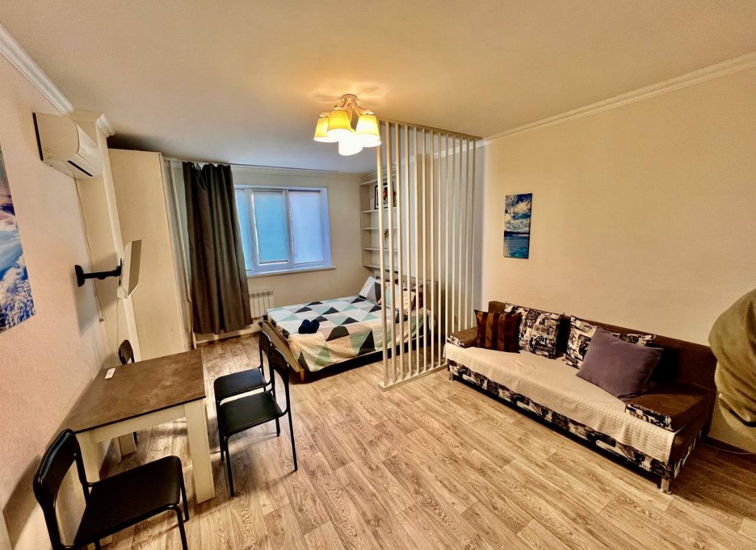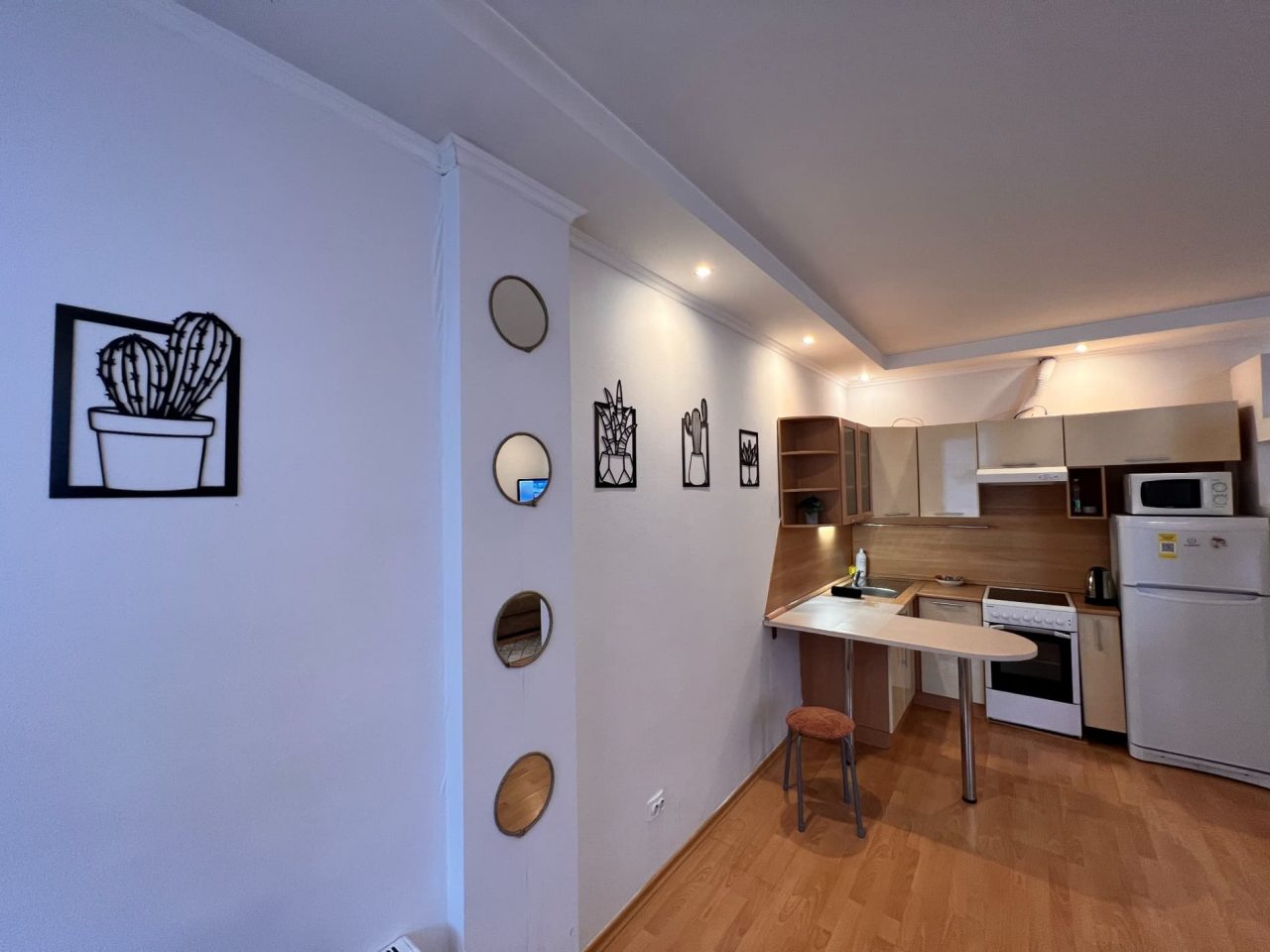 Хорошая студия в центре города, что я и искал. Мне она понравилась сражу же, поэтому долго не думая, решил остановиться здесь. Все есть, удобная кровать, шторы плотные, свет по утрам не мешал. На кухне тоже есть и посуда, и приборы, поэтому готовить было комфортно. Квартира мне понравилась, рекомендую для проживания!