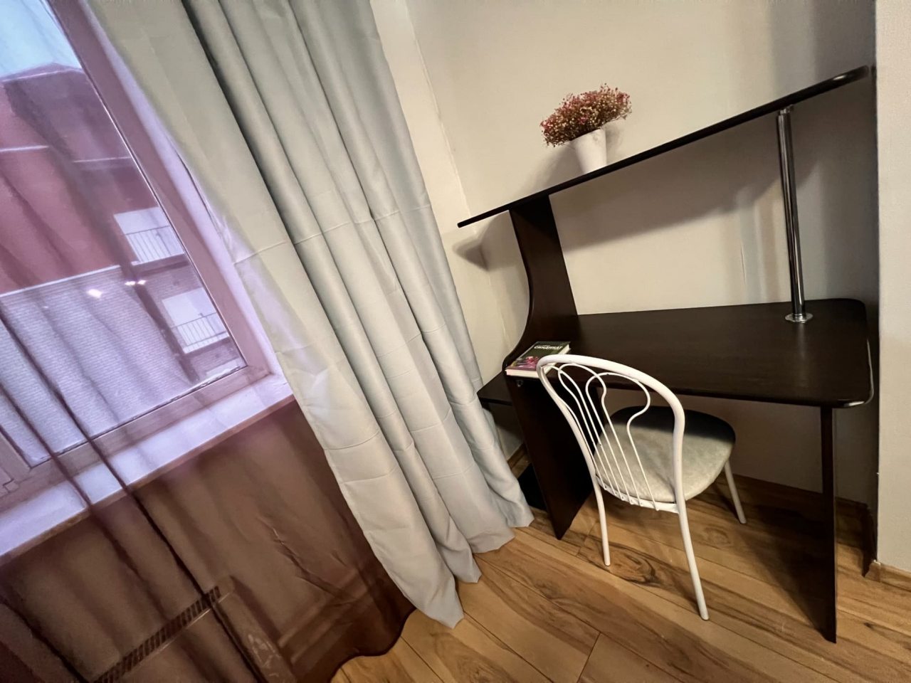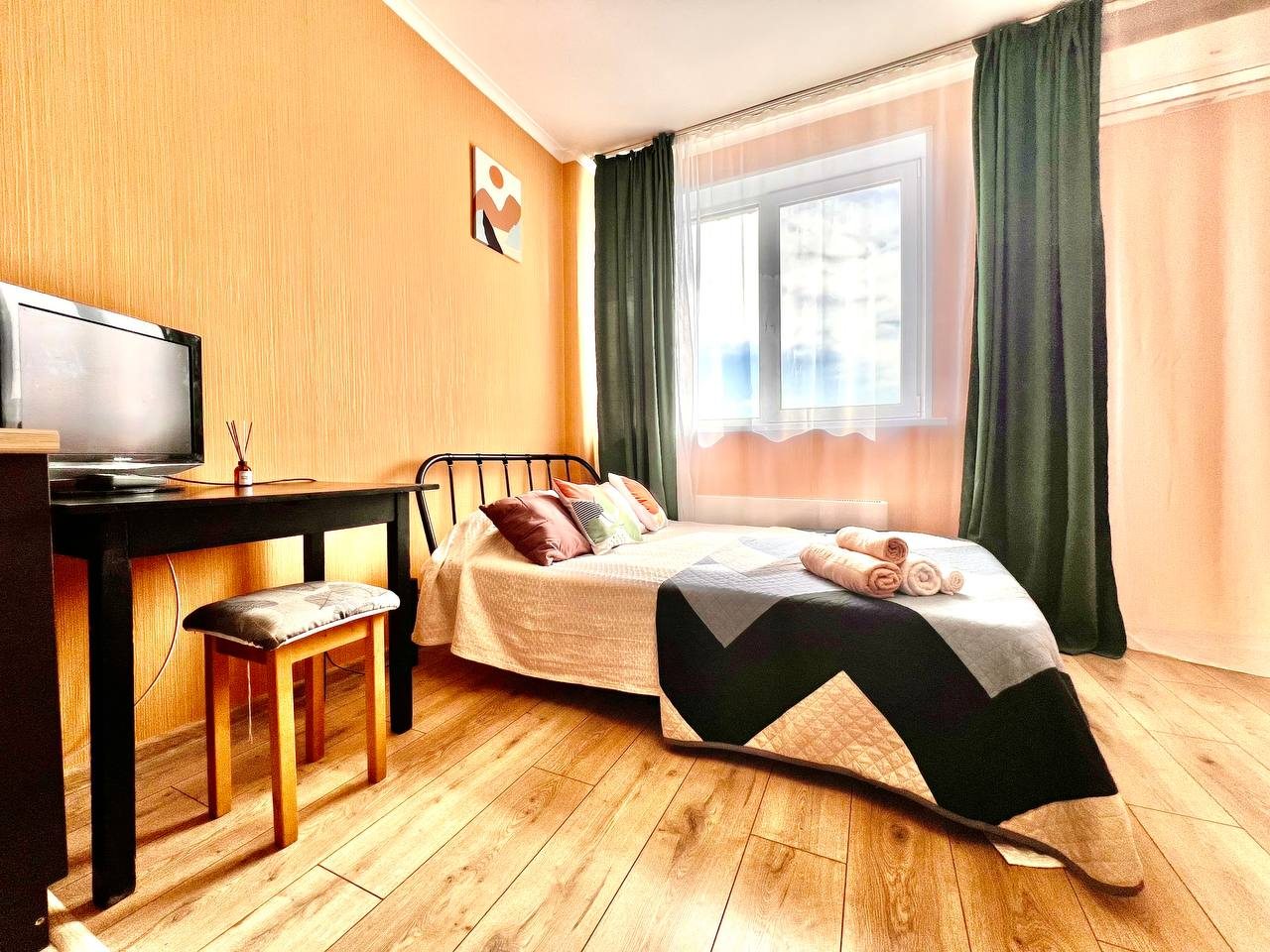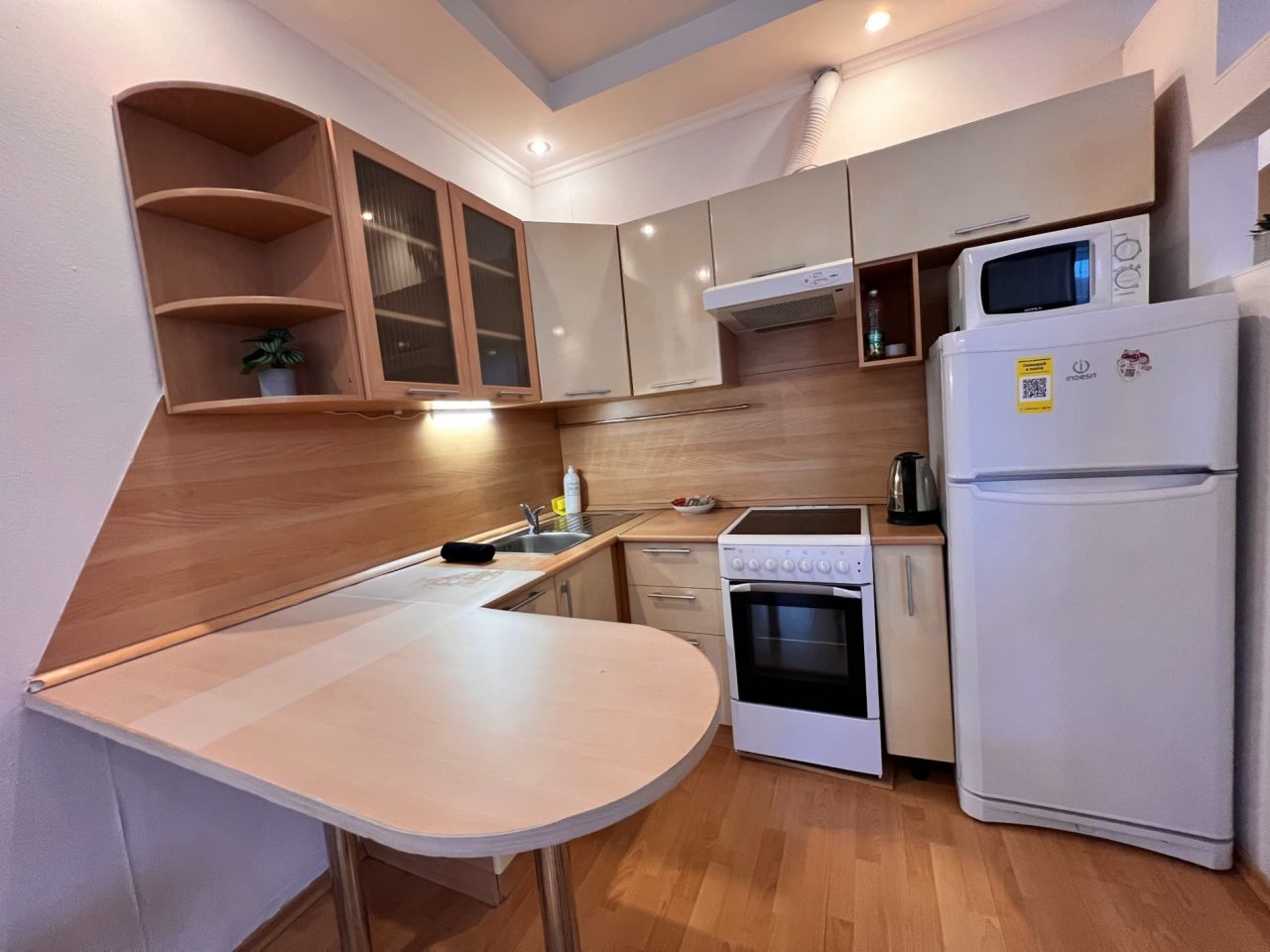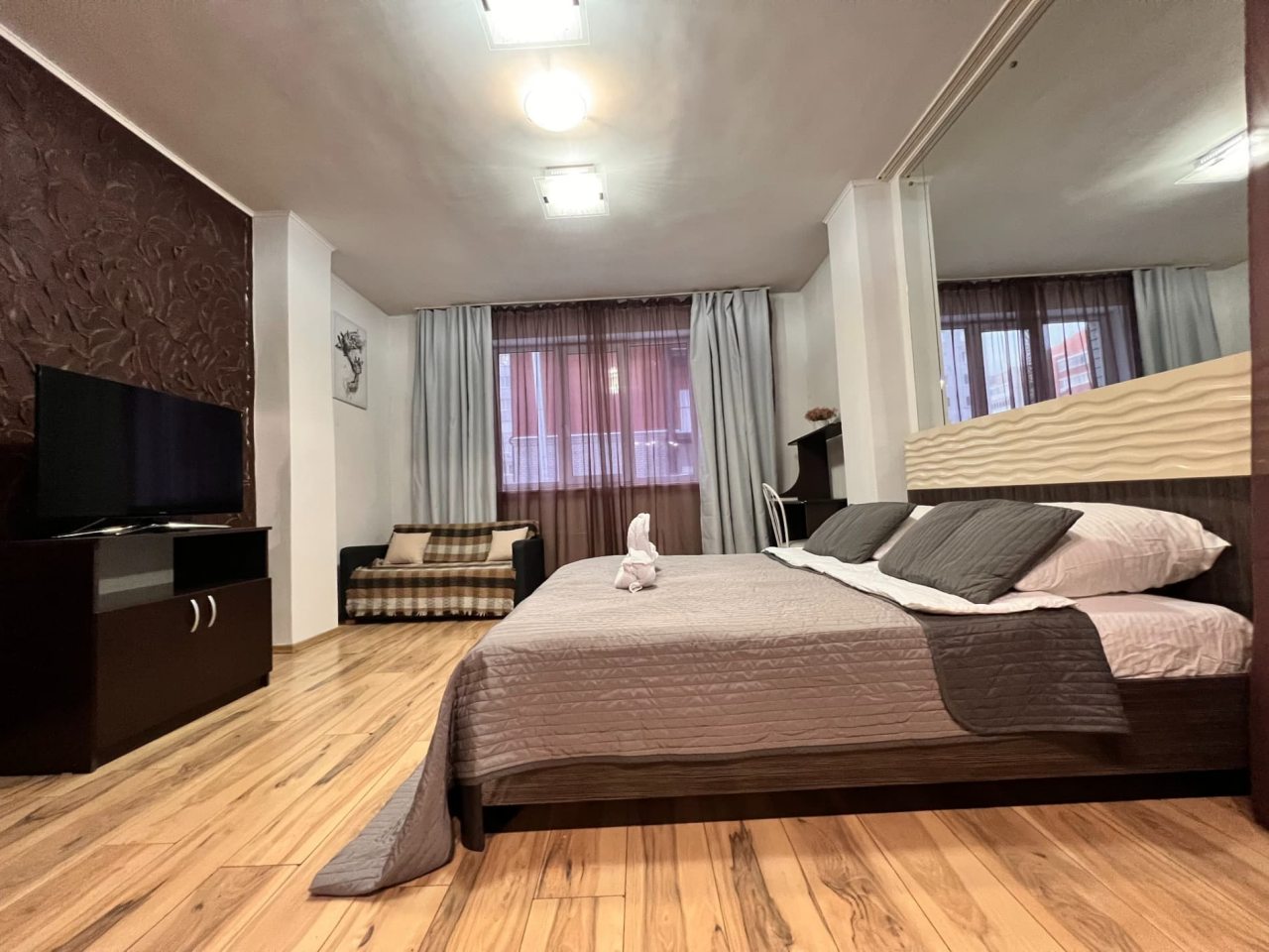 Хорошая студия в центре города, что я и искал. Мне она понравилась сражу же, поэтому долго не думая, решил остановиться здесь. Все есть, удобная кровать, шторы плотные, свет по утрам не мешал. На кухне тоже есть и посуда, и приборы, поэтому готовить было комфортно. Квартира мне понравилась, рекомендую для проживания!