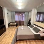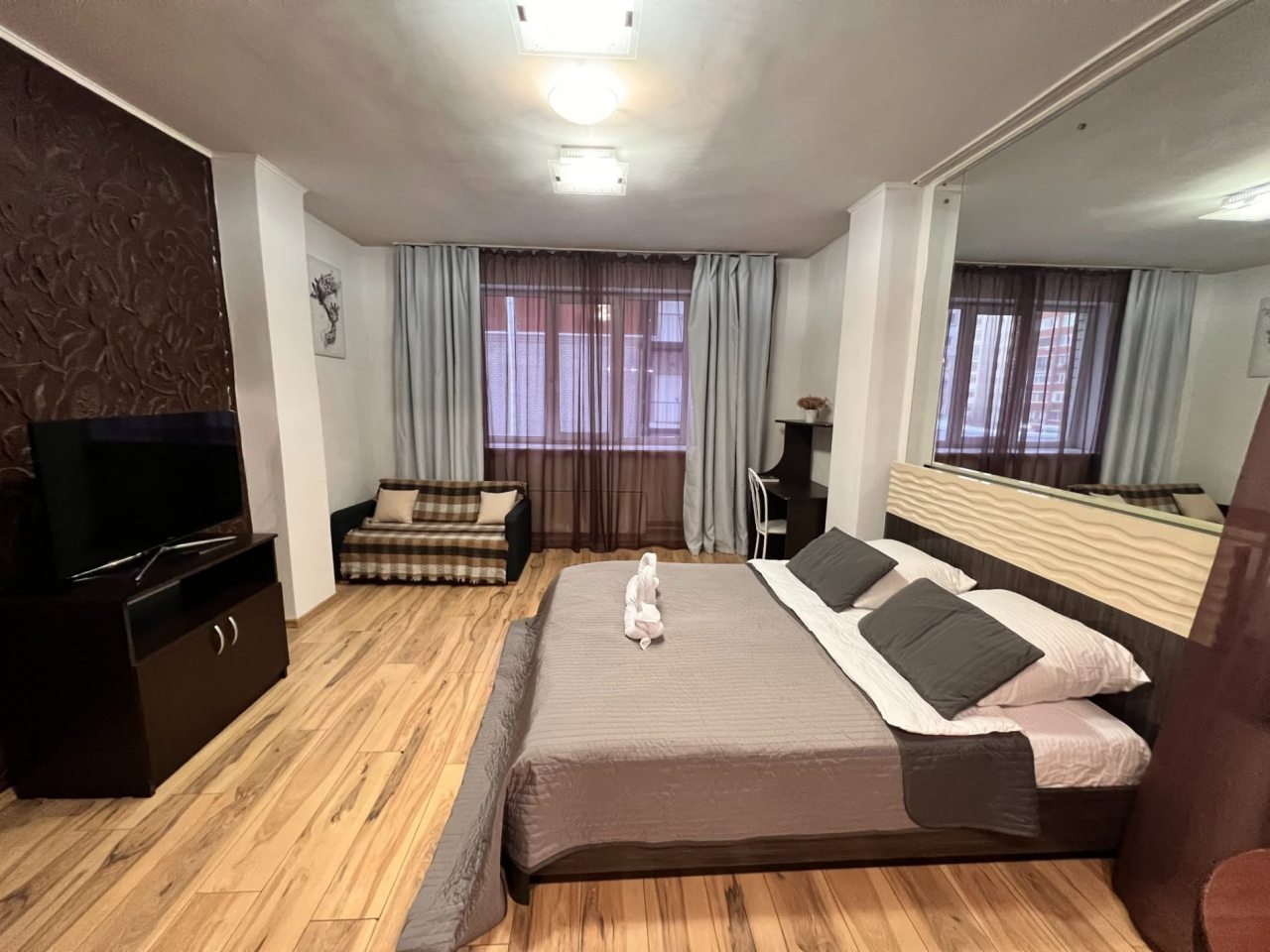 За счет вместимости до четырех человек апартаменты являются прекрасным вариантом для размещения небольшой компанией или семьей. В наличии имеется как двуспальная кровать, так и раскладной диван. Из дополнительных удобств: плотные шторы для комфортного сна, телевизор и сплит-система, а также санузел, укомплектованный различными туалетными принадлежностями, феном и стиральной машиной.