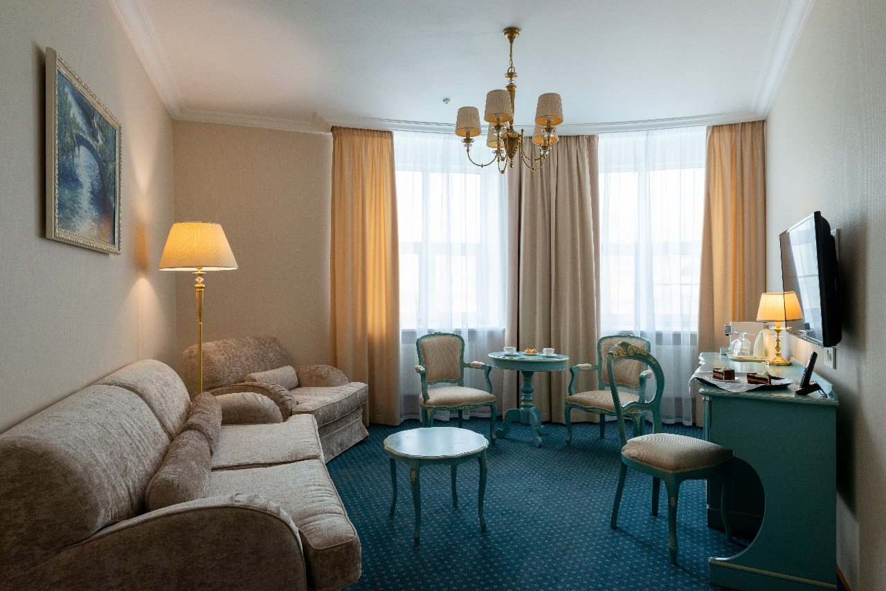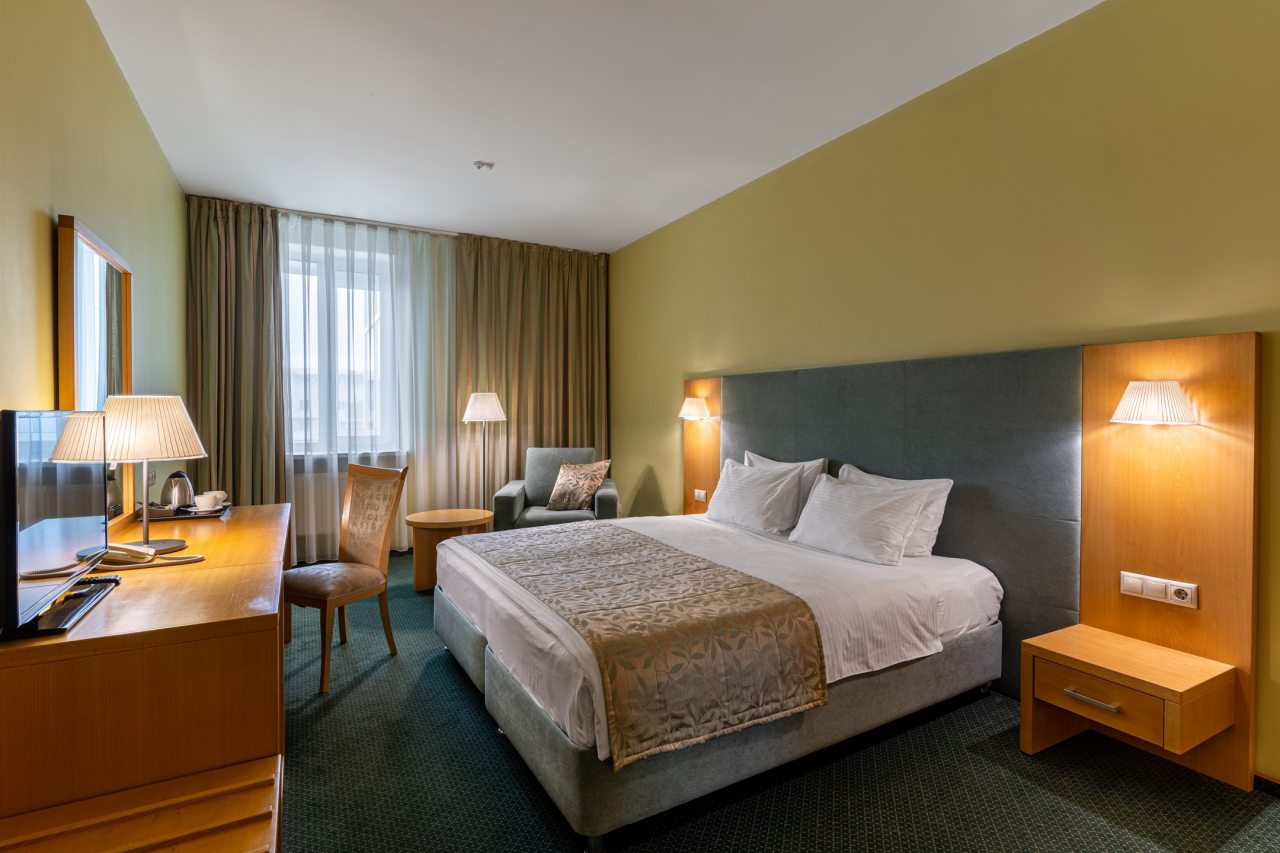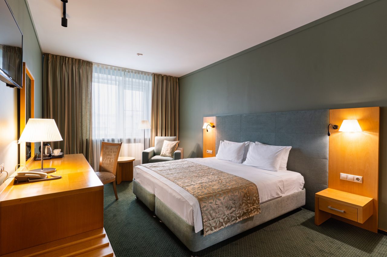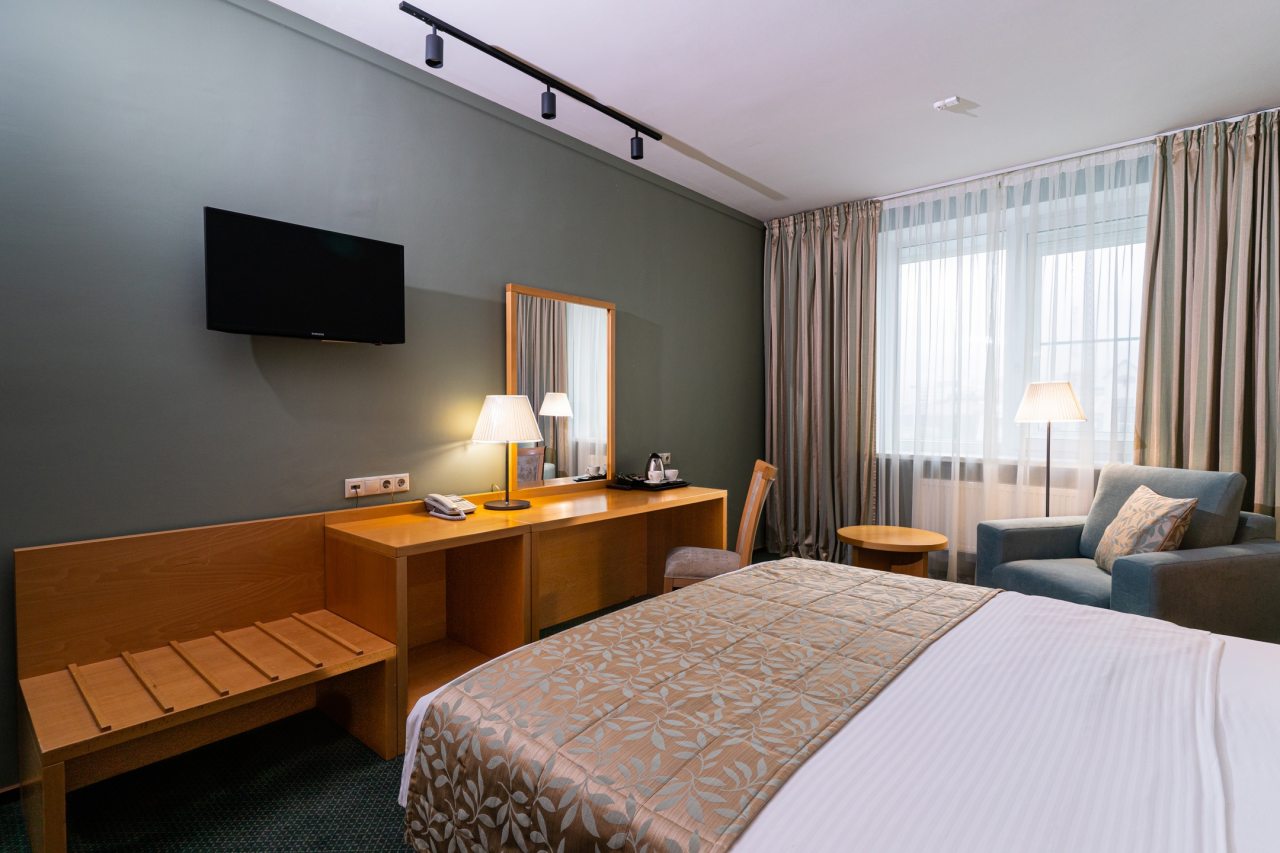 Номерной фонд располагает 87 номерами, которые полностью оборудованы для удобства постояльцев. Каждый из них уникален в своем оформлении, поэтому вы обязательно подберете вариант, который подойдет именном вам. Все варианты размещения оснащены кондиционером, телевизором, функциональной мебелью, сейфом и мини-баром. В ванной комнате находятся гигиенический принадлежности.