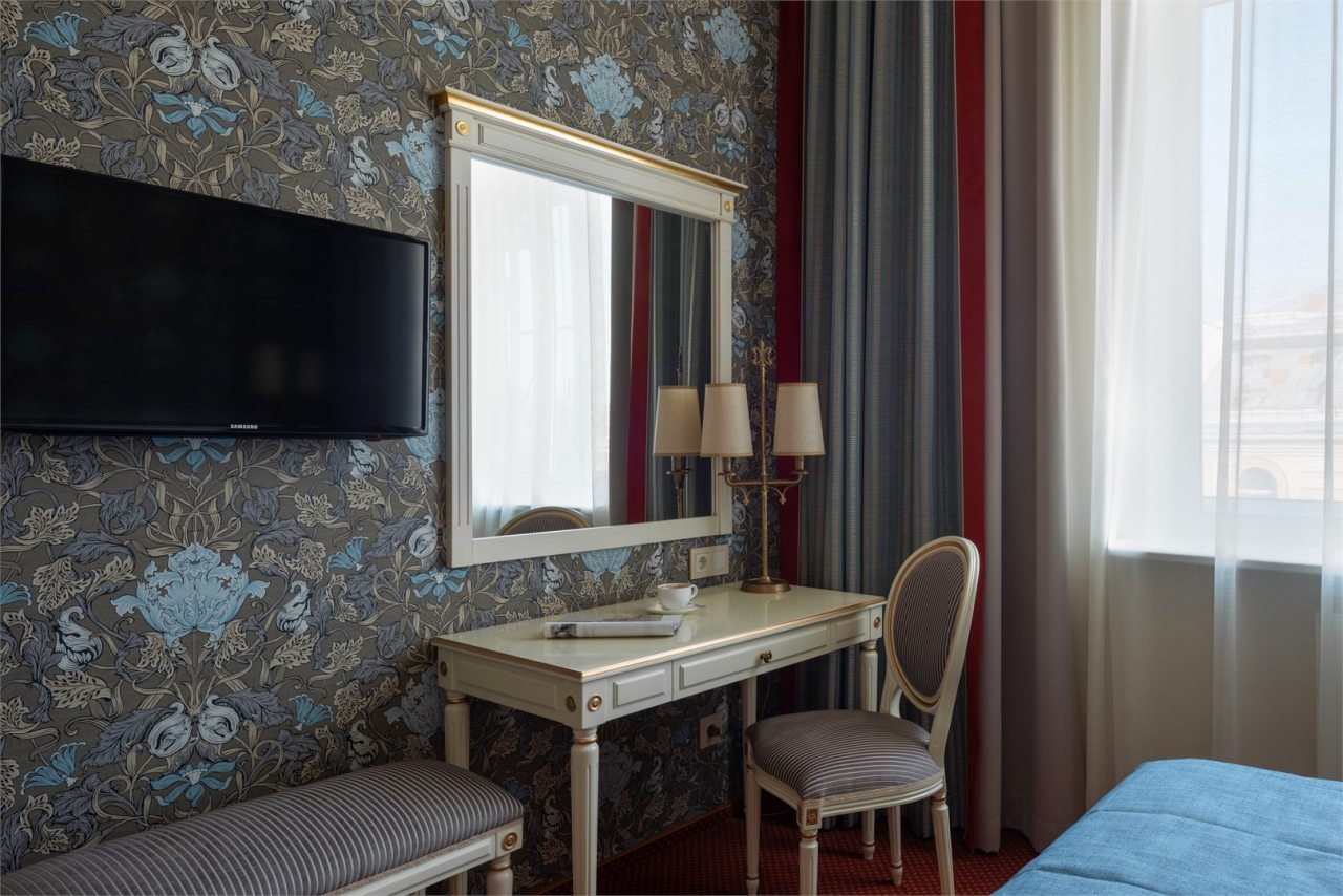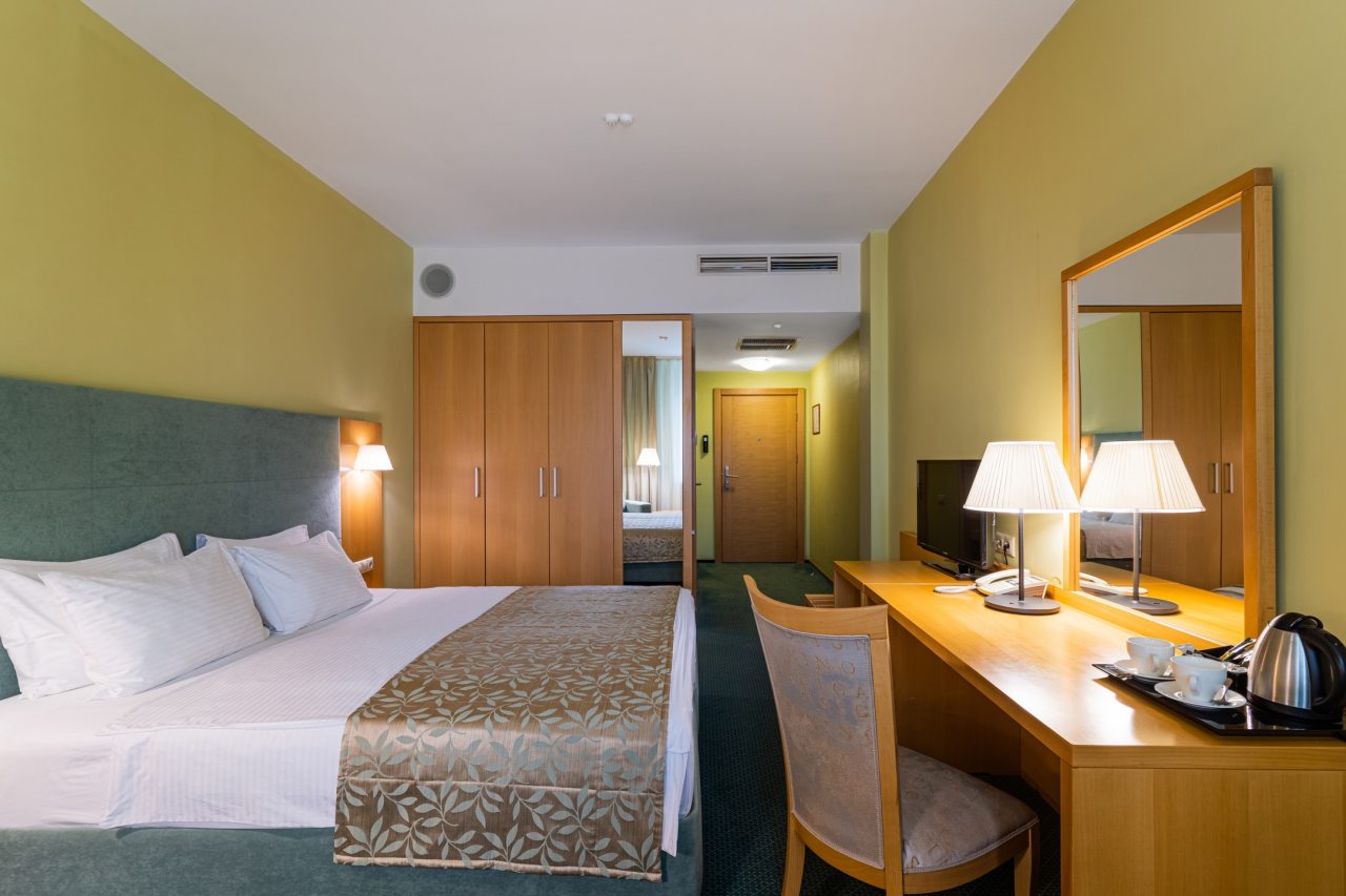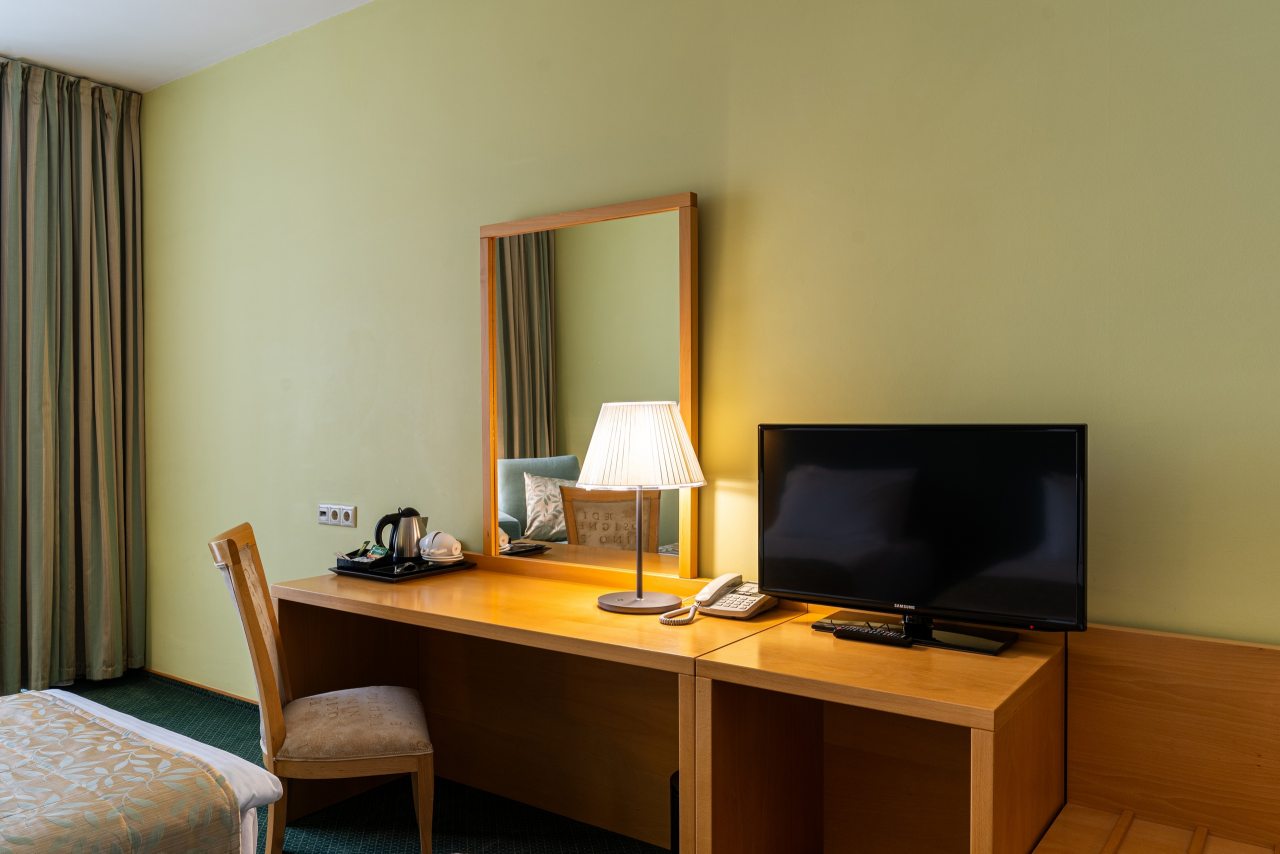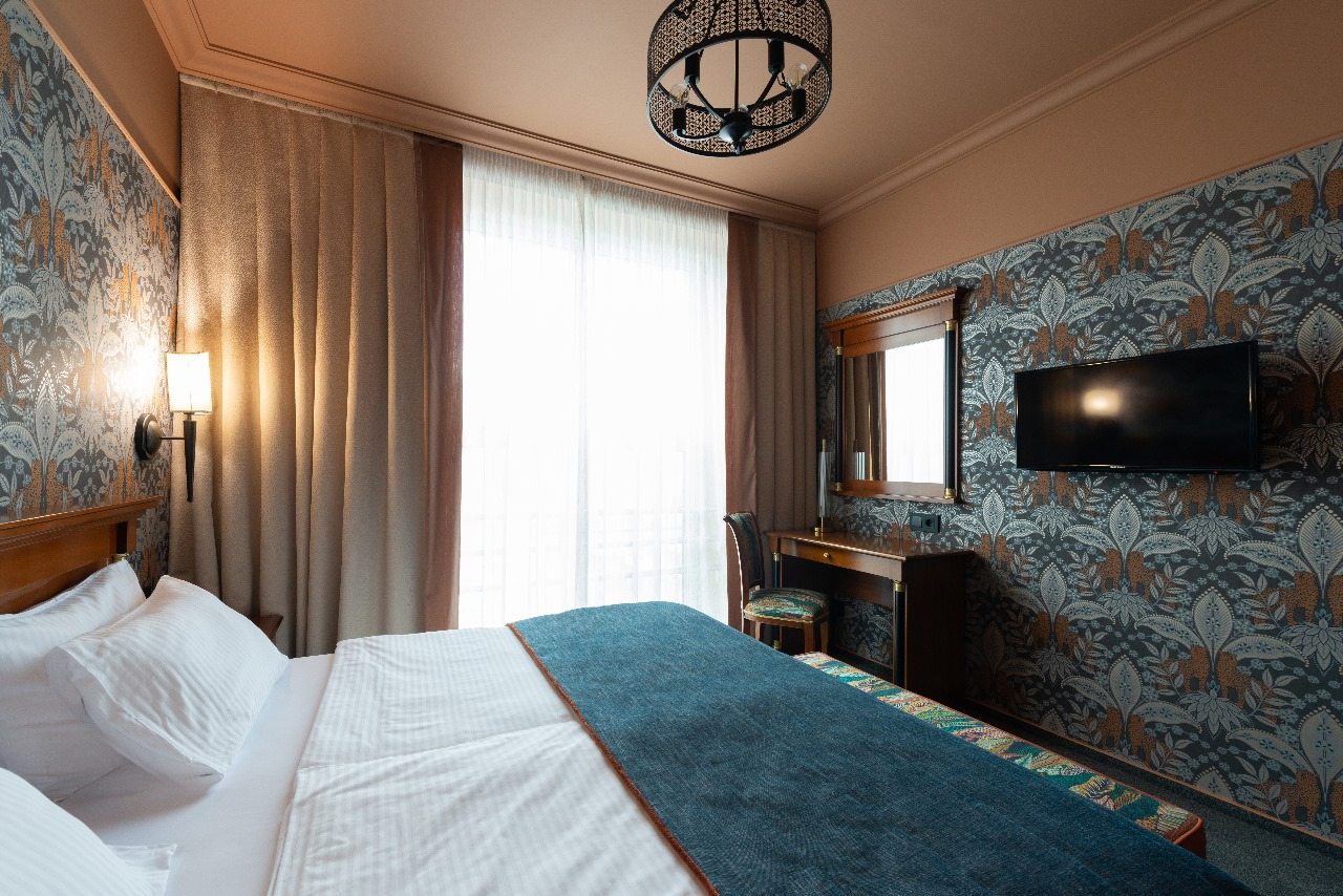 Номерной фонд располагает 87 номерами, которые полностью оборудованы для удобства постояльцев. Каждый из них уникален в своем оформлении, поэтому вы обязательно подберете вариант, который подойдет именном вам. Все варианты размещения оснащены кондиционером, телевизором, функциональной мебелью, сейфом и мини-баром. В ванной комнате находятся гигиенический принадлежности.