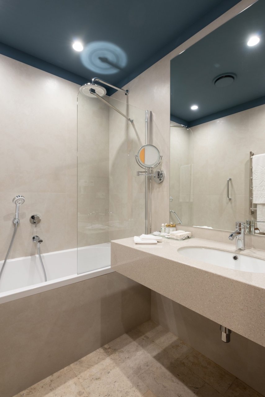 В номере ванна, что очень порадовало, расположение шикарное, номер большой, матрас и подушки удобные. Есть подземная парковка за дополнительную плату с лифтом из парковки, но не большая, лучше договариваться заранее. Отель оставил одни положительные впечатления.