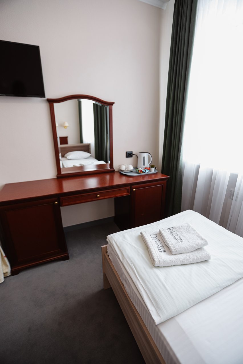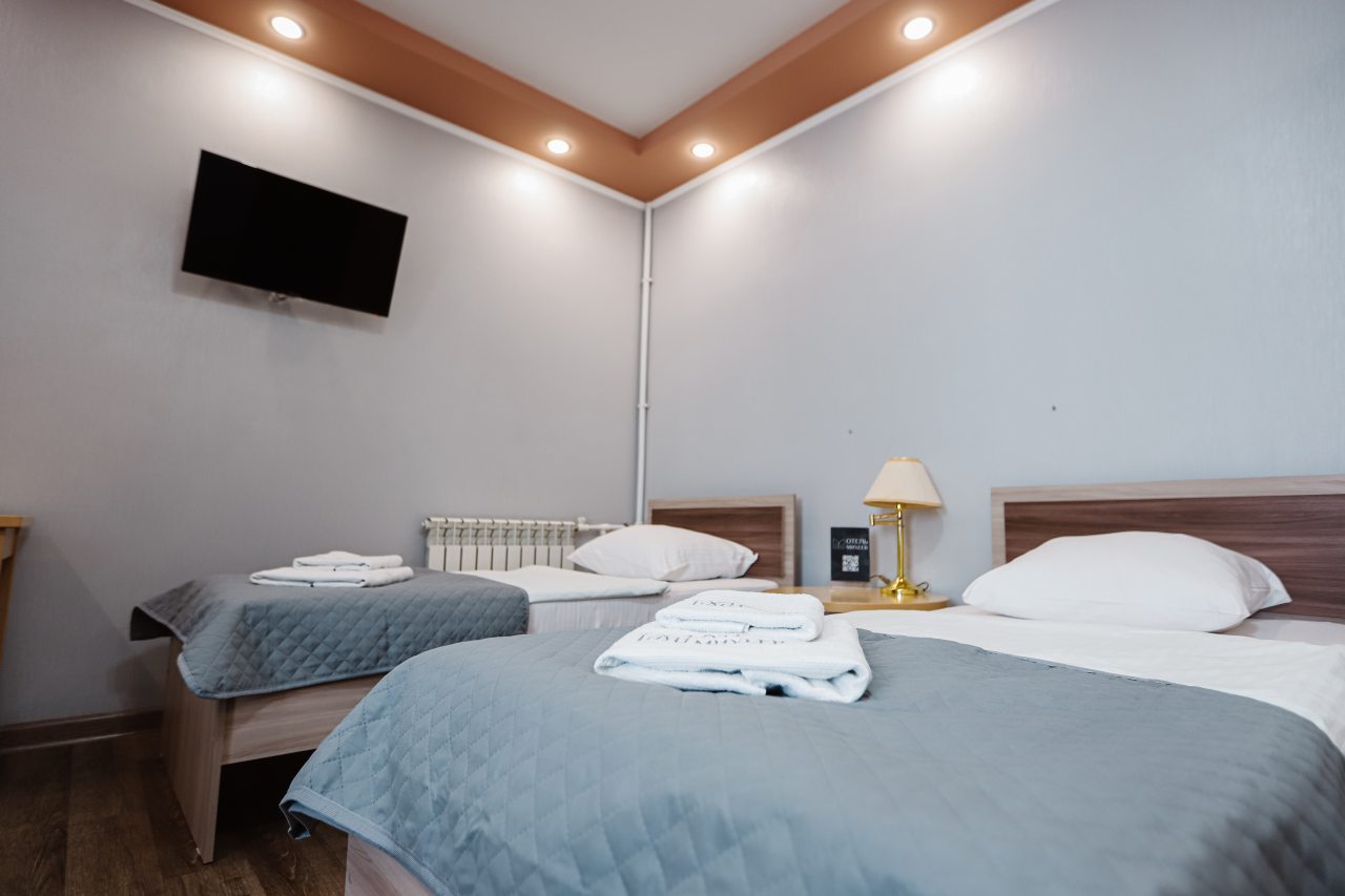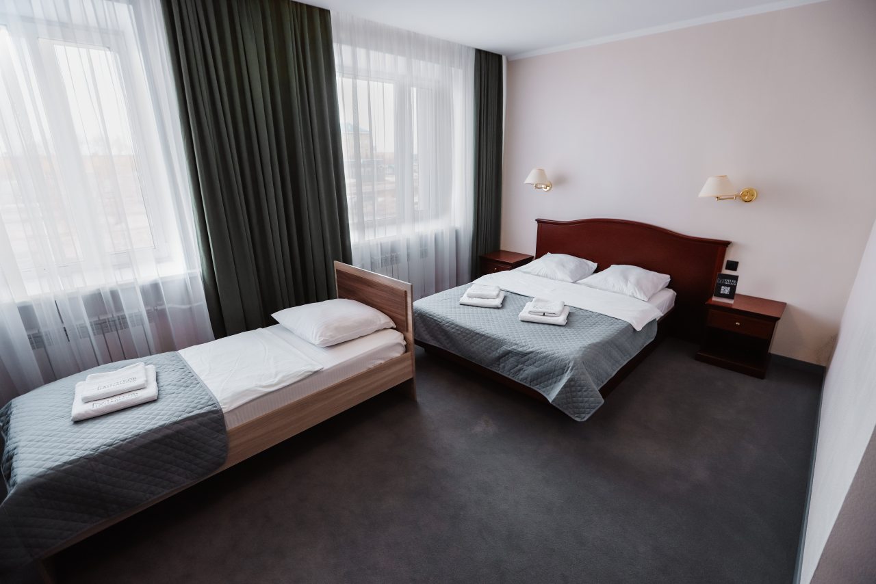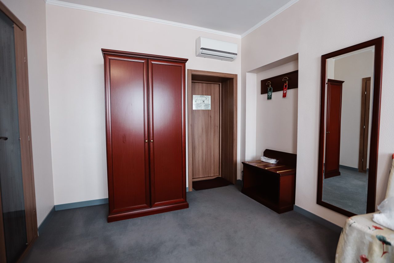 При заезде возник небольшой курьез с номером, но все решилось . На ресепшене администратор приятная девушка, вошла в наше положение и предложила другой номер, за что ей отдельное спасибо. В номерах чисто, тихо, ночью никаких посторонних звуков и шума не было, уборка номера каждый день. Питание очень вкусное, особенно пирожок с капустой)))). Весь персонал вежливый и приветливый. Однозначно советую останавливаться в этом отеле.