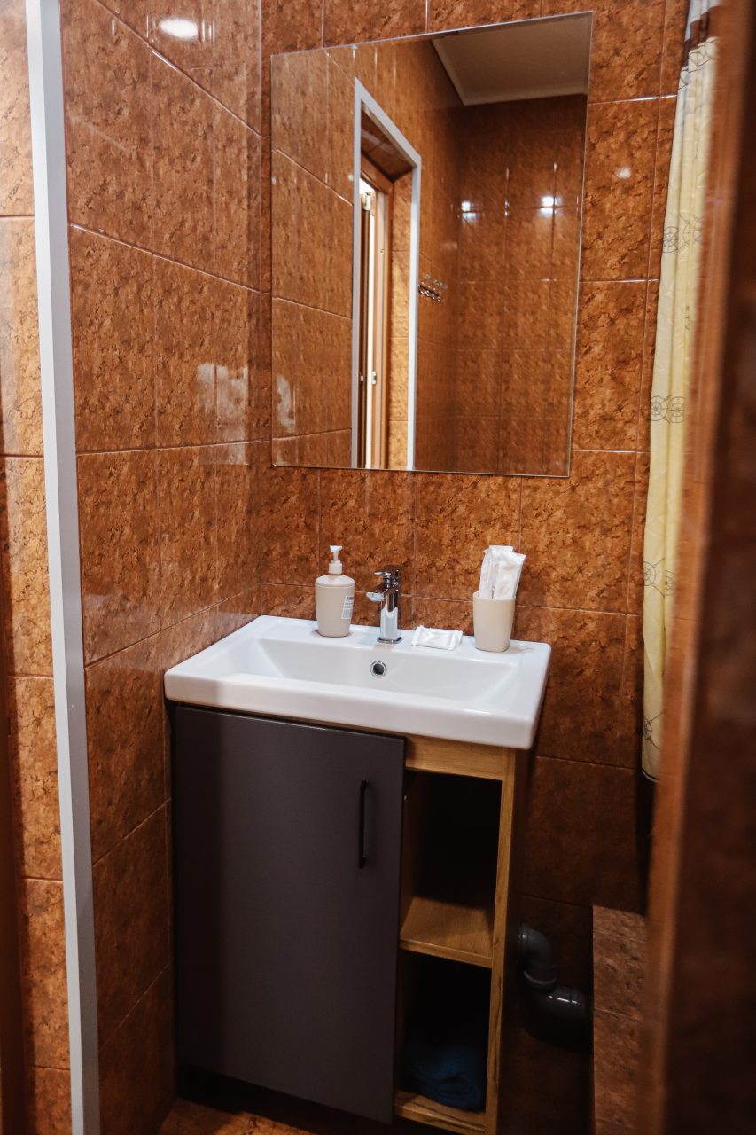 Из недостатков: при заселении настойчиво, прямо требовали оплатить по СБП или переводом на карту. В итоге - заплатил за перевод на кару комиссию. Конечно, не разорился, но не приятно. Вид из окна в нашем номере - стена с нарисованным пейзажем. Хотя, приехали с городом знакомиться, а не в окна смотреть.