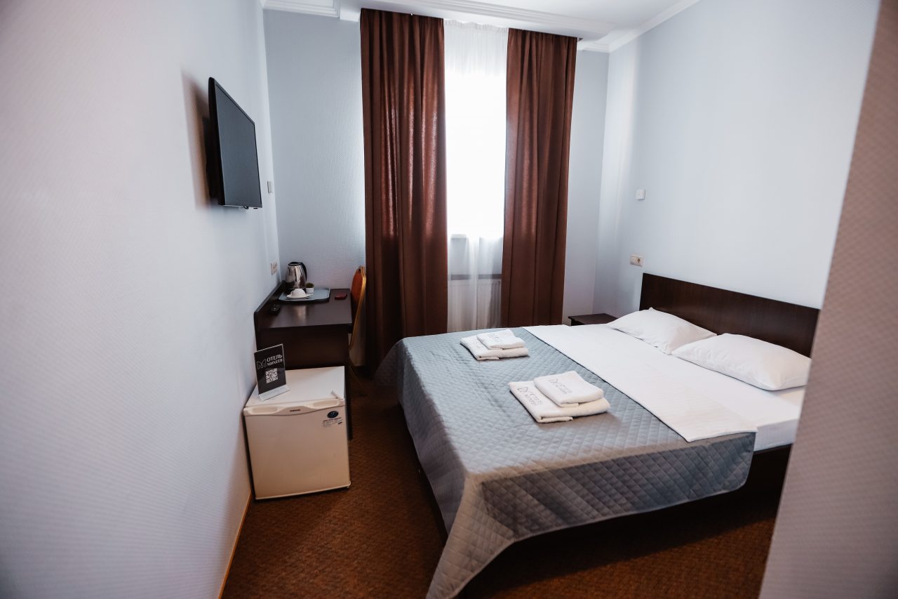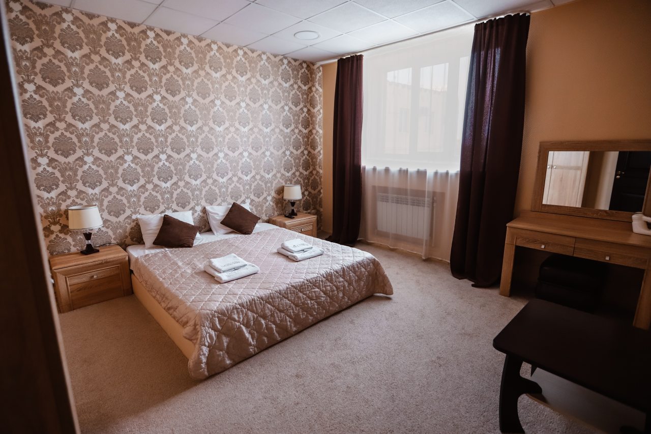 Комфортабельные номера, рассчитанные на 1-4 человек, уютно обставлены и оснащены необходимым, чтобы расслабиться после утомительного дня: есть телевизор, скоростной Wi-Fi, удобные спальные места, санузел.