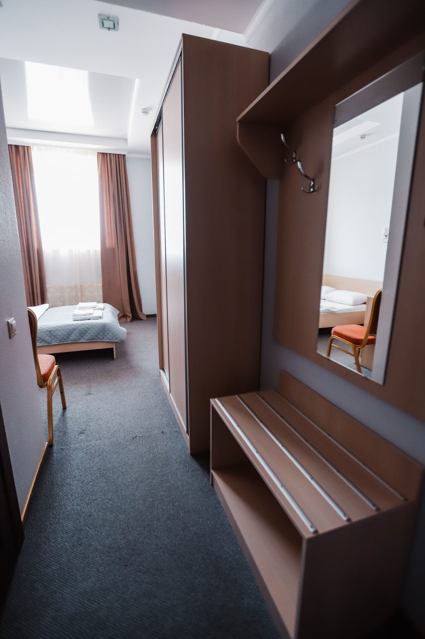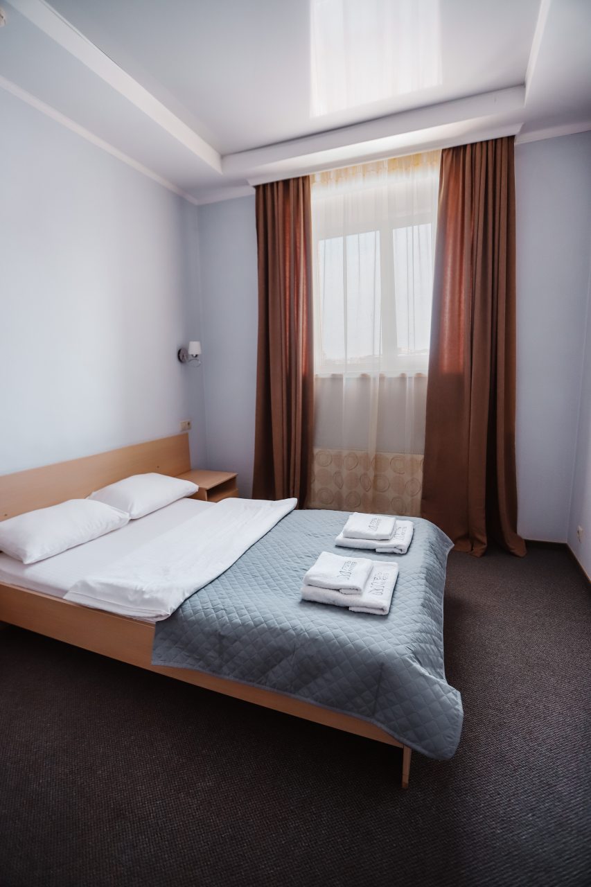 Отель чистый есть шампунь, зубная щётка чистые полотенца, чистое постельное белье. Столовая внизу у нас вышло. Завтрак, Обед, ужин по еде на 3 солянка как вода, каша геркулесовая вкусная но без фруктов с маслом. Кофе нету только из кофе машины за деньги. Чай бесплатно. Отель находится где гаражи, магазин находится на другой остановки рядом только шашлычные. Я шла в магазин минут 10-15 все время прямо идти.