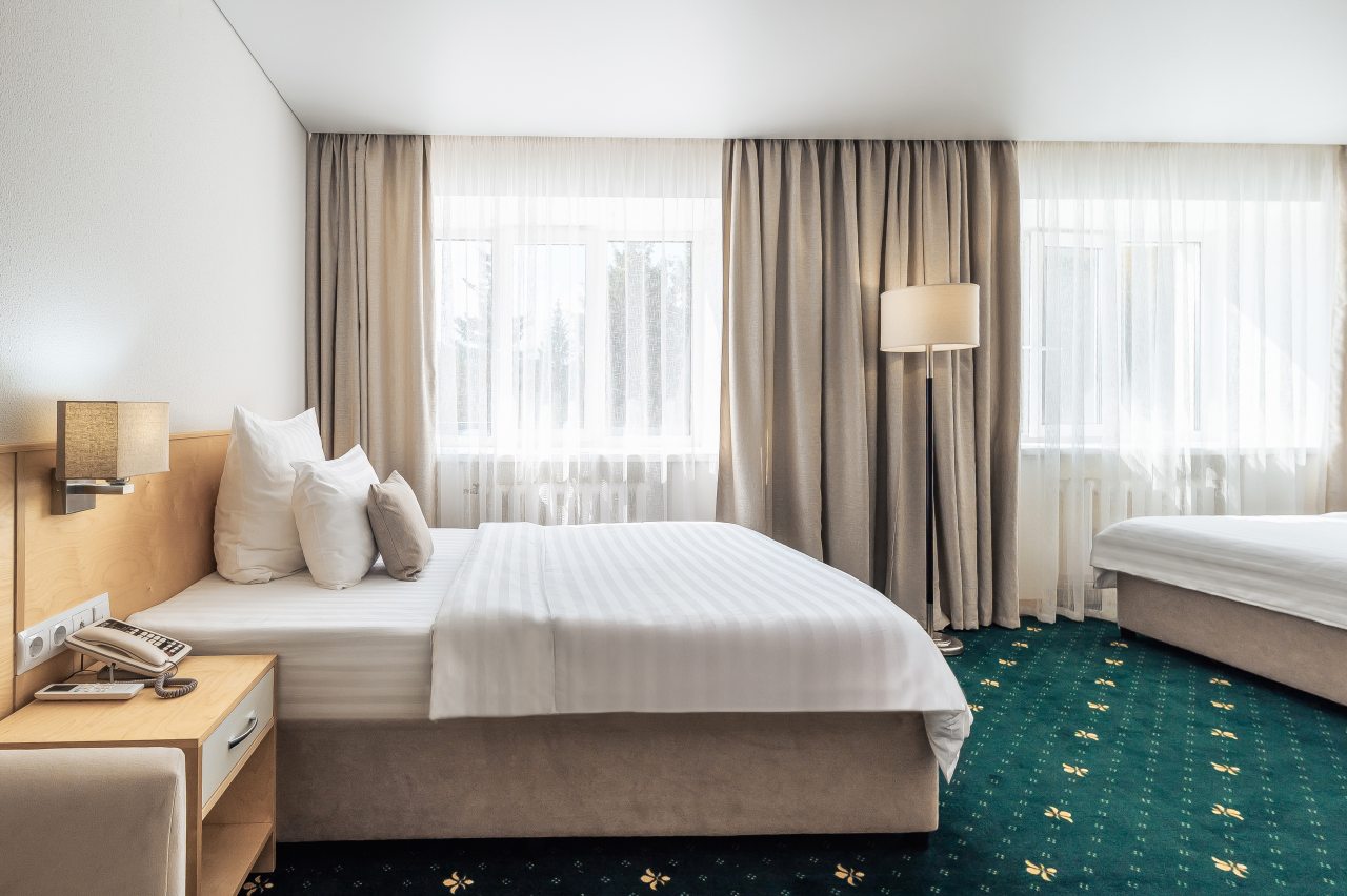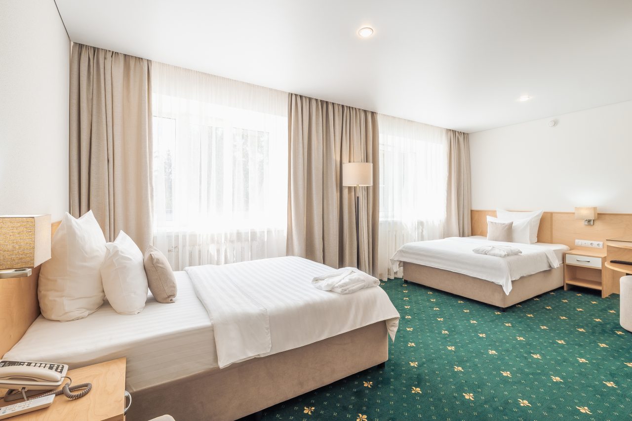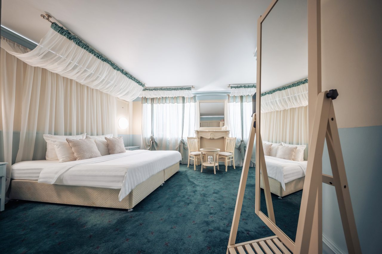 Для размещения представлены номера категории Стандарт и Джуниор Сюит. Все варианты размещения укомплектованы качественной мебелью и современной техникой. Санузел оснащен душевой кабиной, туалетом, раковиной, феном и средствами гигиены.