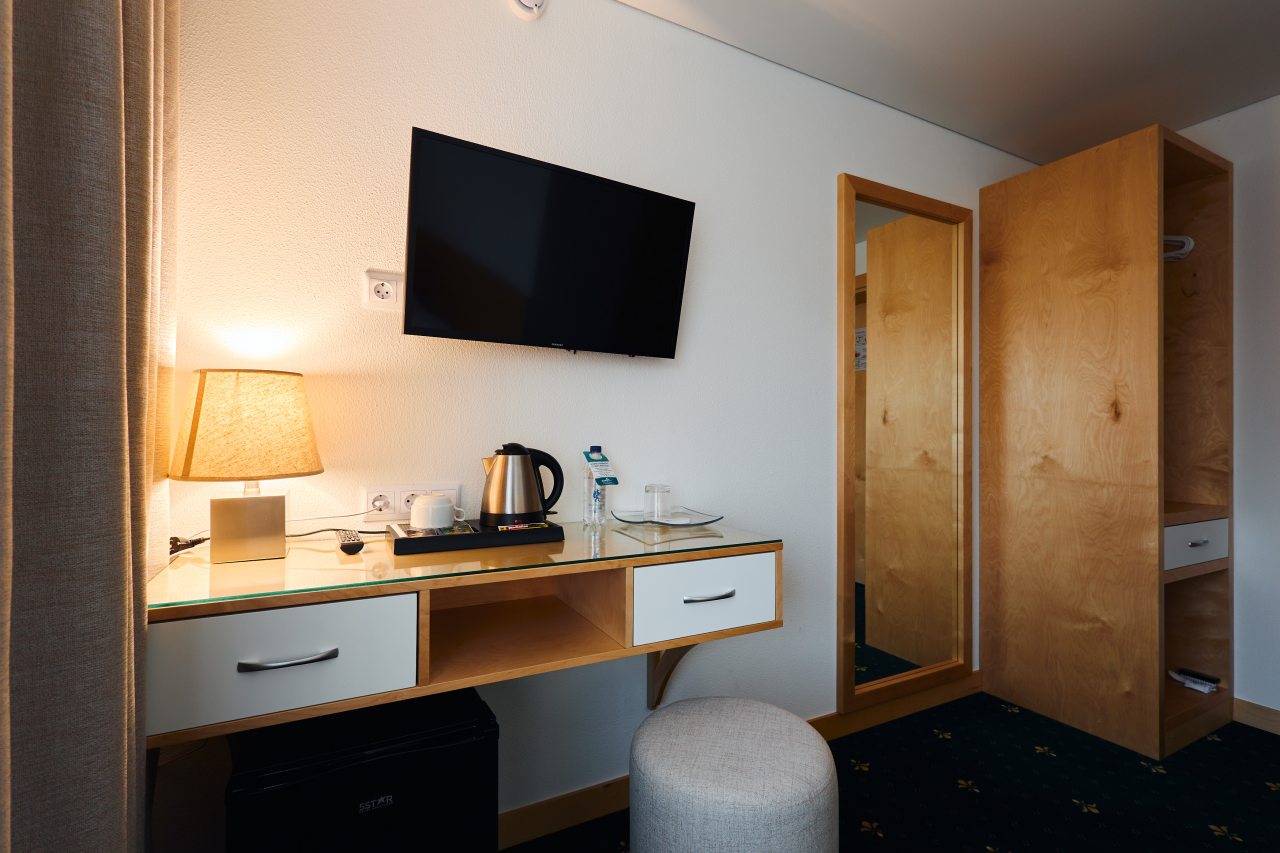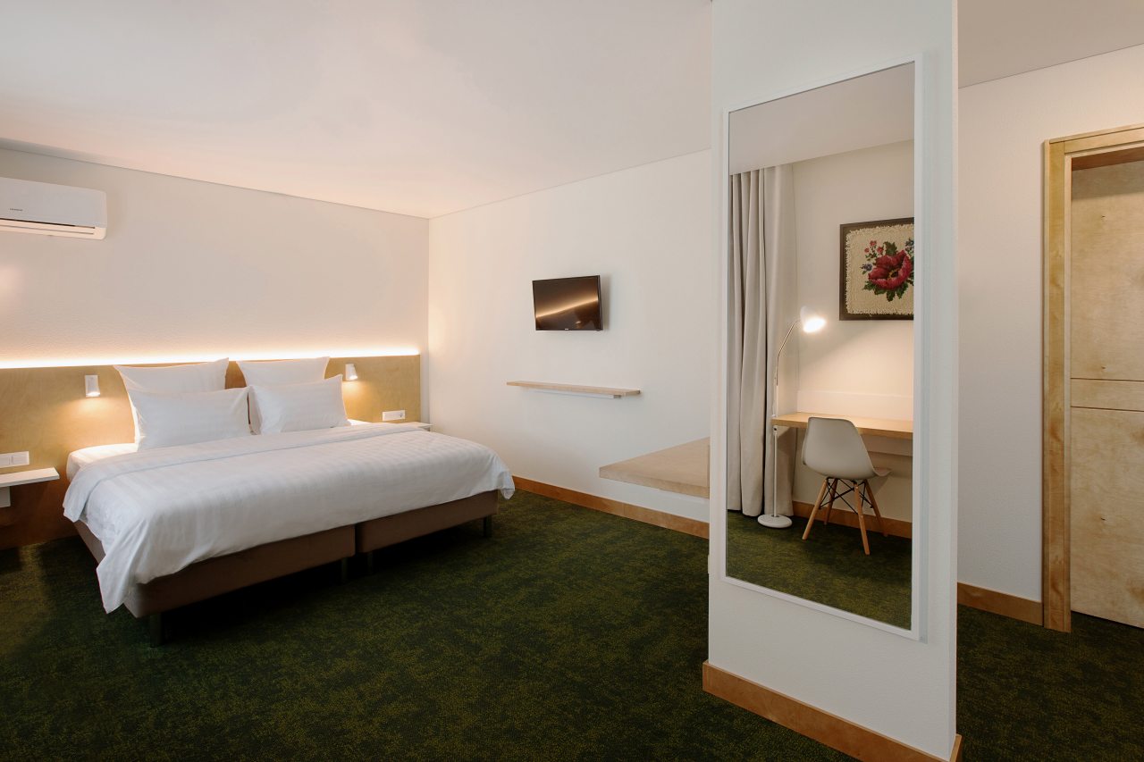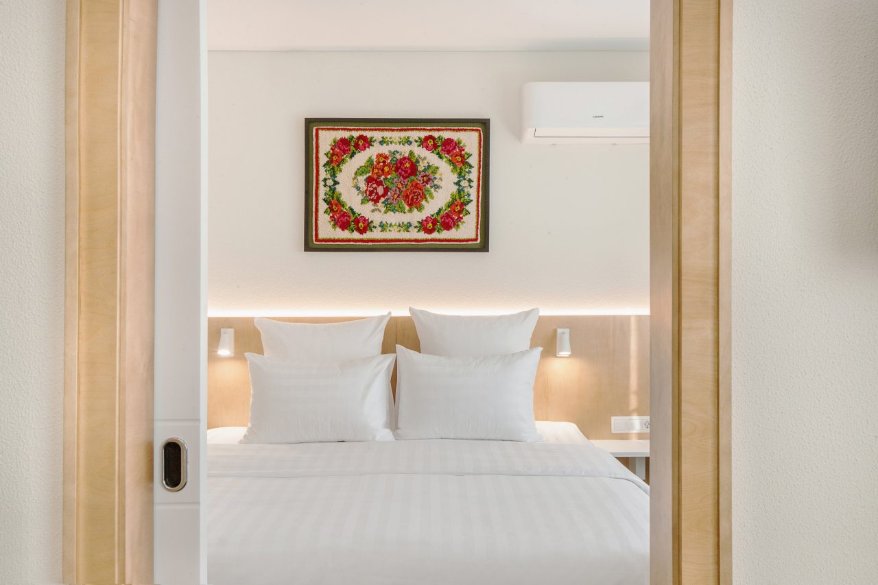 Для размещения представлены номера категории Стандарт и Джуниор Сюит. Все варианты размещения укомплектованы качественной мебелью и современной техникой. Санузел оснащен душевой кабиной, туалетом, раковиной, феном и средствами гигиены.