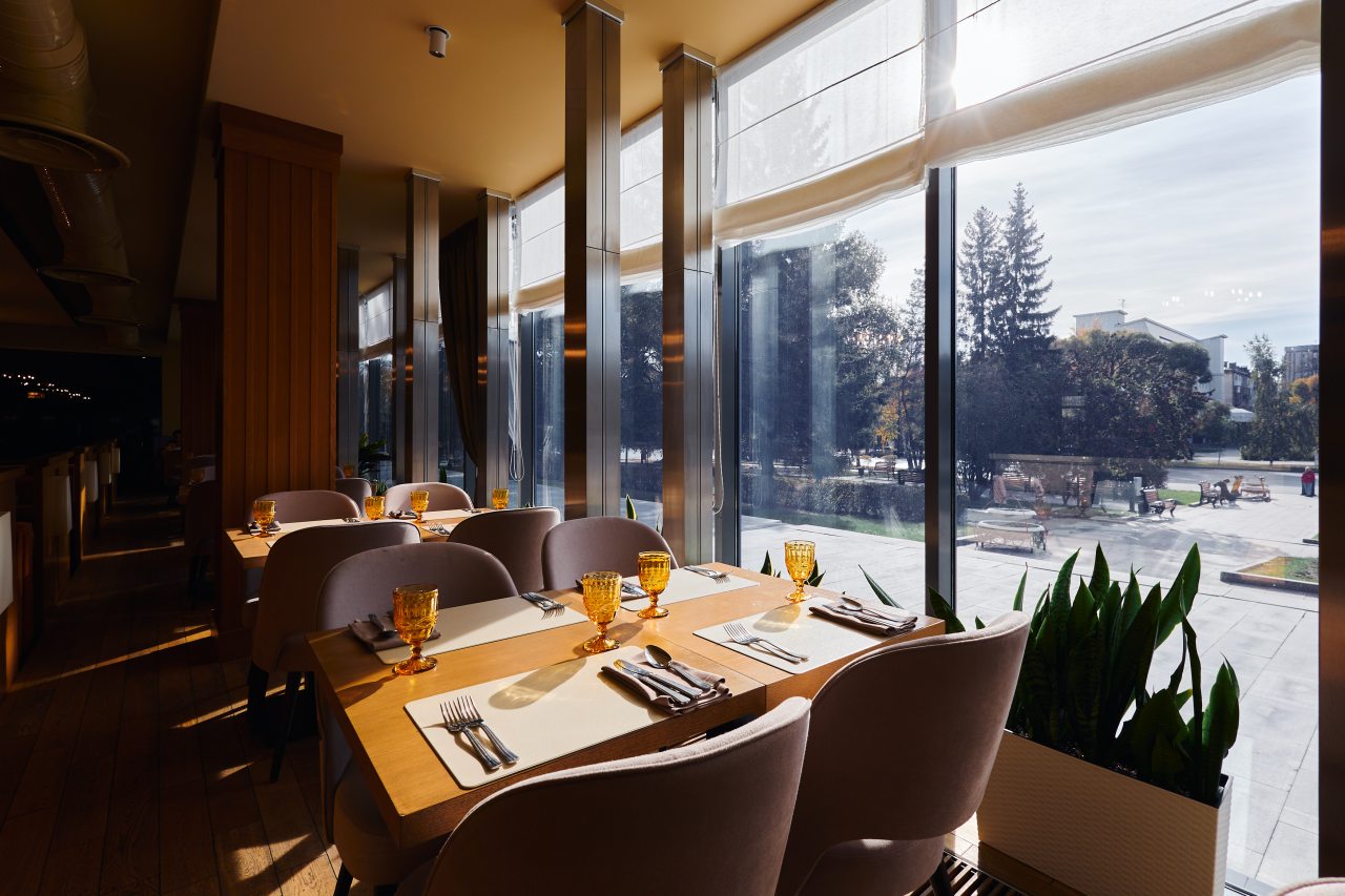 В ресторане можно насладиться живой музыкой, заказать изысканные блюда сибирской кухни. В баре представлен широкий выбор напитков и легких закусок.
