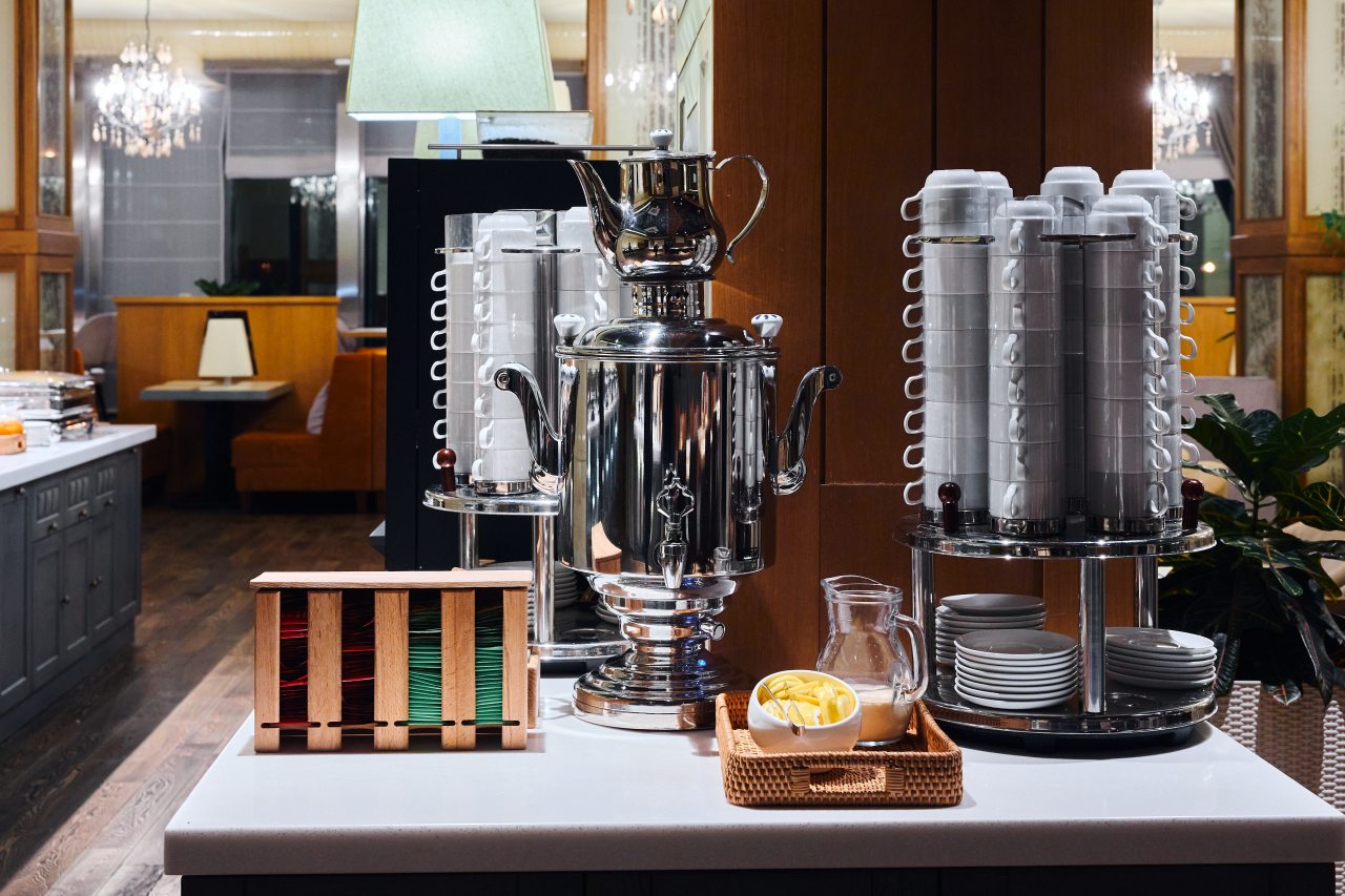 Лобби-бар — место встреч и отдыха: кофе с закусками, сибирские коктейли, информация об услугах и мероприятиях отеля.