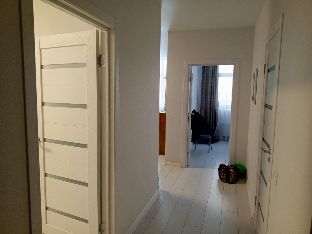 Квартира просторная, есть все необходимое для недлительного проживания. Все в белых тонах, мебель, кровати и тд все в нормальном состоянии. Посуда и утварь для приготовления пищи имеется. В ванной были шампунь, мыло, гель для душа (может от предыдущих жильцов, может от арендодателя, не знаю). Очень понравился вид из окна, доступ к магазинам. Двор чистый, красивый. Место для парковки было на протяжении всего времени нахождения в квартире.