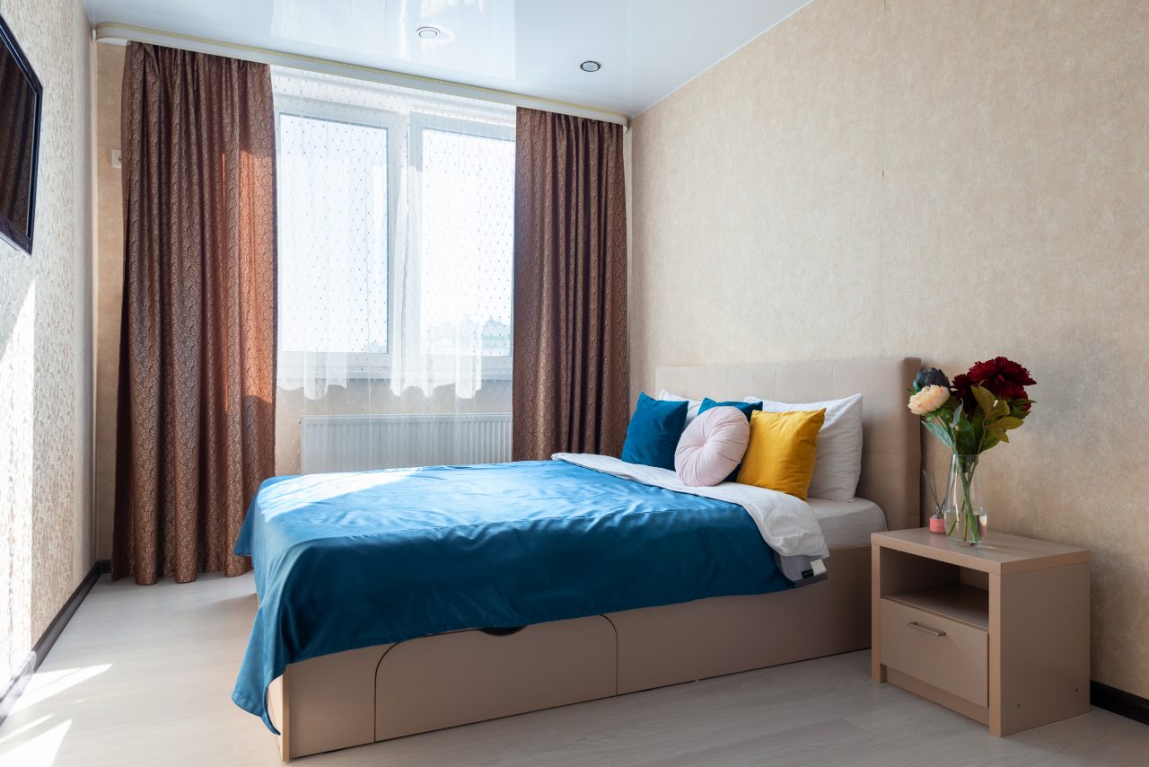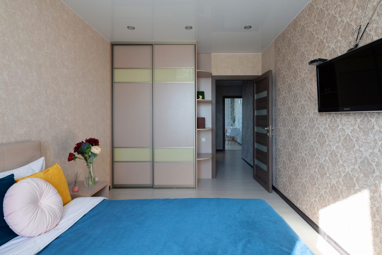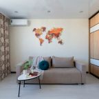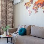 Очень уютная обстановка в гостинице. Представлен номер в виде большой квартиры, которая имеет ванну, туалет, кухню, спальню. Обстановка очень просторная, внутри тихо, сама квартира находится в жилом доме, с соседями не пересекались и они нам не мешали вовсе.