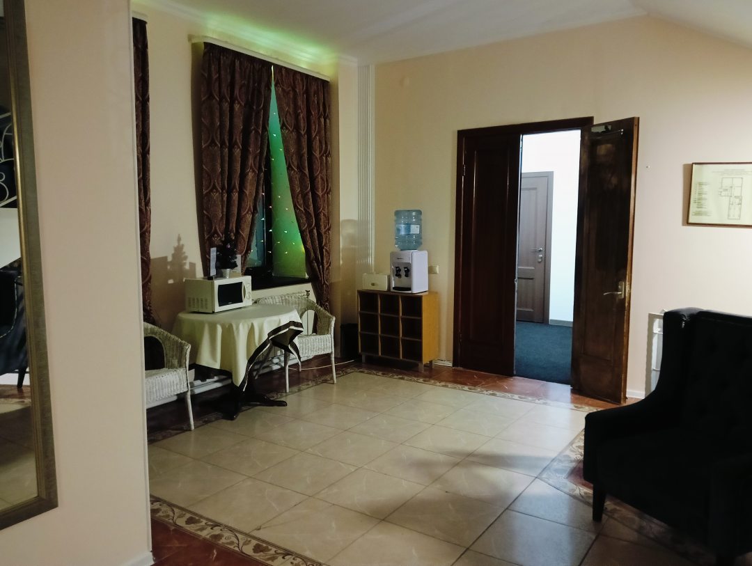 Прекрасная гостиница. С банкетным залом для свадеб, где проходили завтраки. Чисто, опрятно, все аккуратно. На этаже кулер с водой и микроволновка. В номере ковролин, ванна огромная! Номер тоже довольно комфортный и свободный! Все чисто и полы и постель белоснежная, и занавески! Ванна чистая. Полотенца белые чистые были для всех 4ых по 2 полотенца! Телевизор большой, в нг удалось и фильм посмотреть! Территория очень красивая, летом наверно особенно красиво с прудом! Завтраки такие магазинные с 7 утра до 10, но есть что выбрать, сытая была пол дня! Чайная зона есть. Тем более 1 января не найти гостиниц с готовыми завтраками, все отдыхают пару дней! А нам важно выйти из дома сытыми. Нам очень тут понравилось. Я с радостью вернусь сюда, если приеду. Уже порекомендовала всем своим знакомым! На рецепшене очень хорошие женщины, приветливые, добродушные!