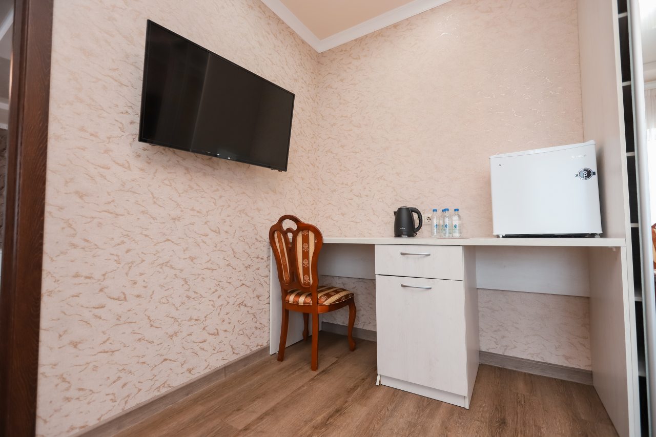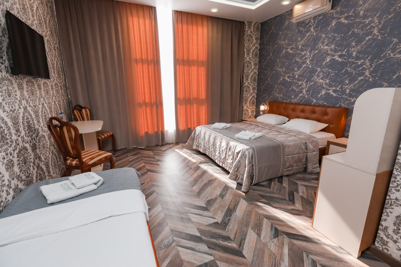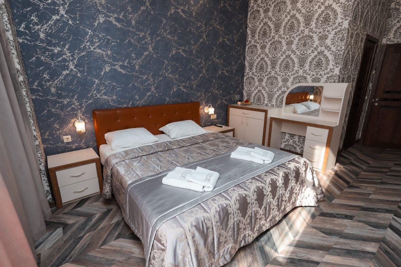 Поскольку в отеле есть 3 категории номеров: «Стандарт», «Премиум» и «Люкс», у вас будет возможность выбрать тот вариант, который подходит именно вам, исходя из ваших предпочтений. В каждом номере установлена комфортабельная мебель и вся необходимая электроника, присутствует собственный санузел с душем. Наличие кондиционера зависит от выбранного вами номера.