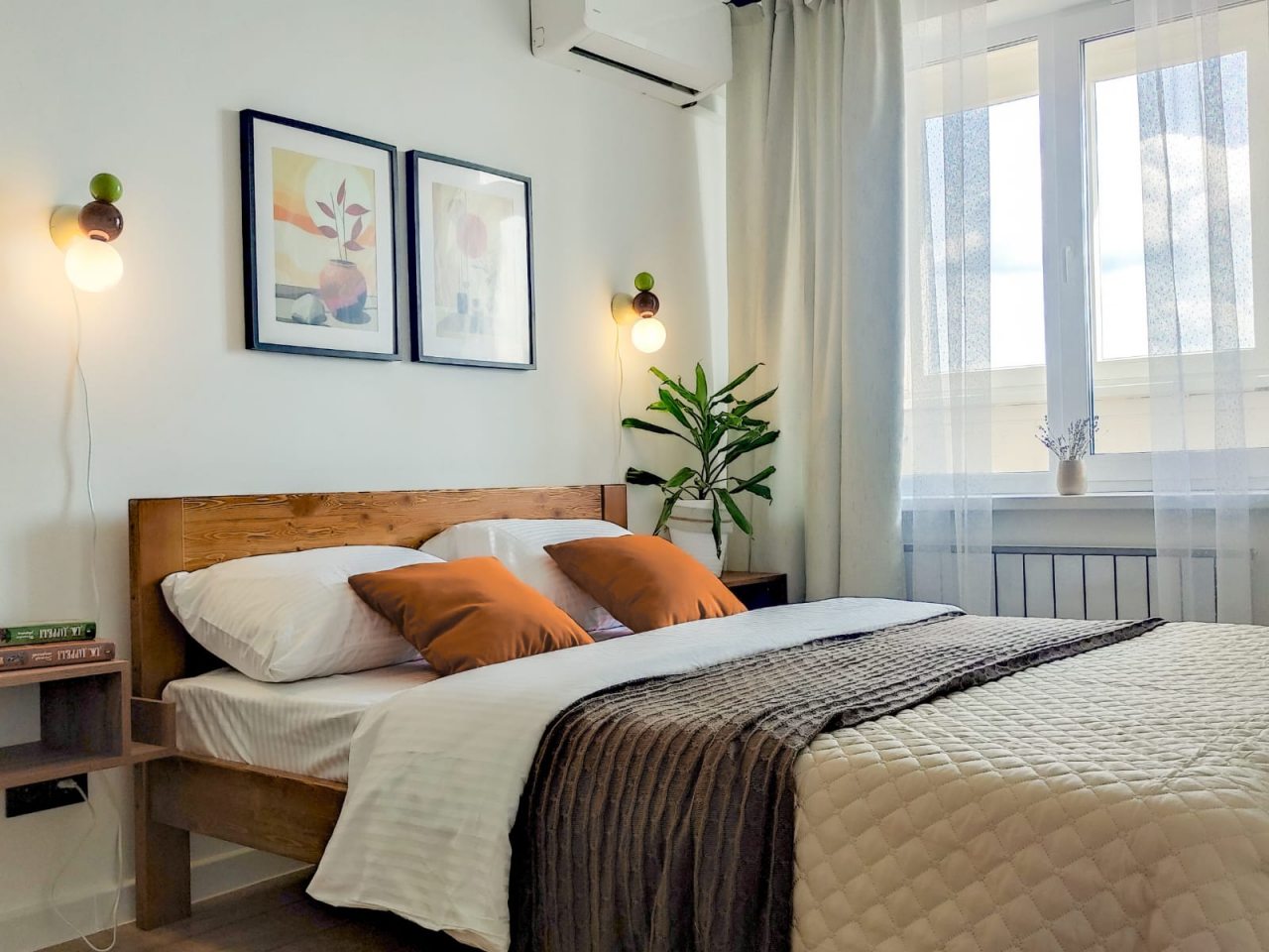 «Классный Домик. 1-комнатные с видом на город и облака» — это светлые и современные апартаменты, которые расположились в Уфе, недалеко от торгового центра «Акварин».