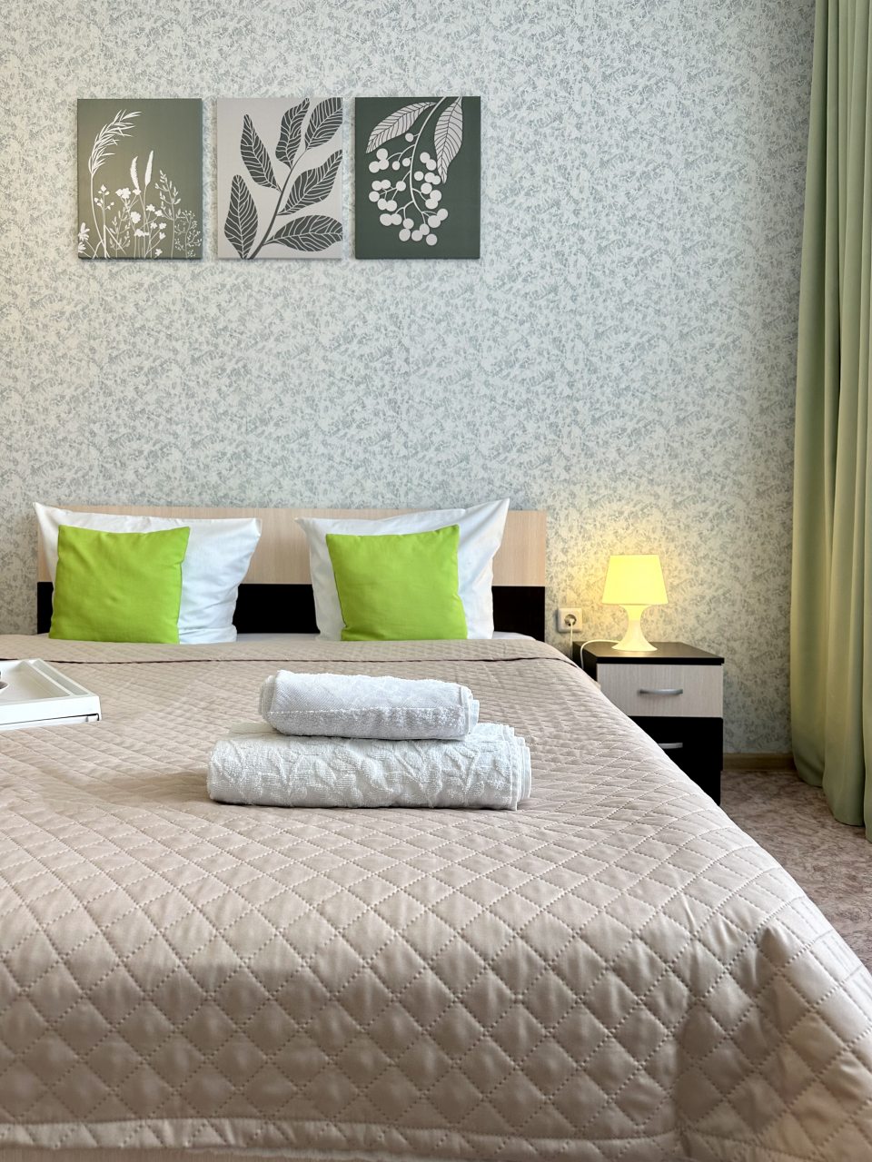 Потрясающий вид из окна — особенно на закате, просто не хотелось уходить. Поездка была романтическая, и атмосфера квартиры идеально подошла для этого. Чисто, стильно, без лишнего — интерьер как с обложки. Кондиционер спасал от жары, а плотные шторы позволяли выспаться в тишине. Район новый, ухоженный, даже вечером гулять было приятно. Заселение заняло пару минут, всё четко и понятно.